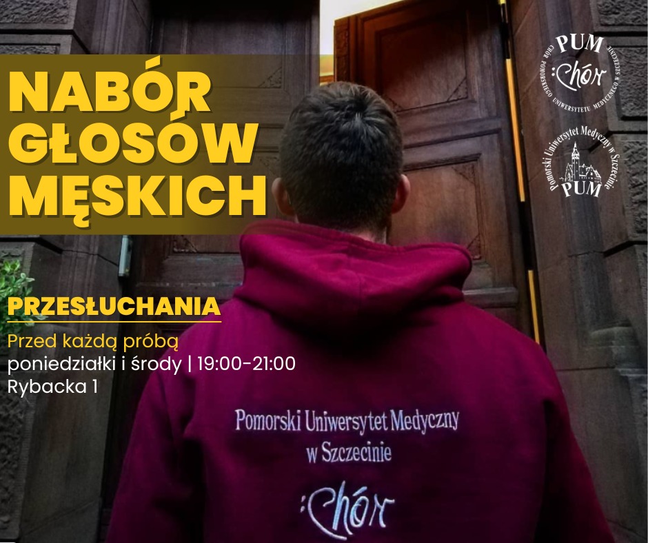 Chór Pomorskiego Uniwersytetu Medycznego w Szczecinie zaprasza wszystkich chętnych panów, którzy chcieliby zacząć nową przygodę z muzyką. Chór PUM to zespół składający się ze studentów, absolwentów, pracowników i przyjaciół Pomorskiego Uniwersytetu Medycznego w Szczecinie.