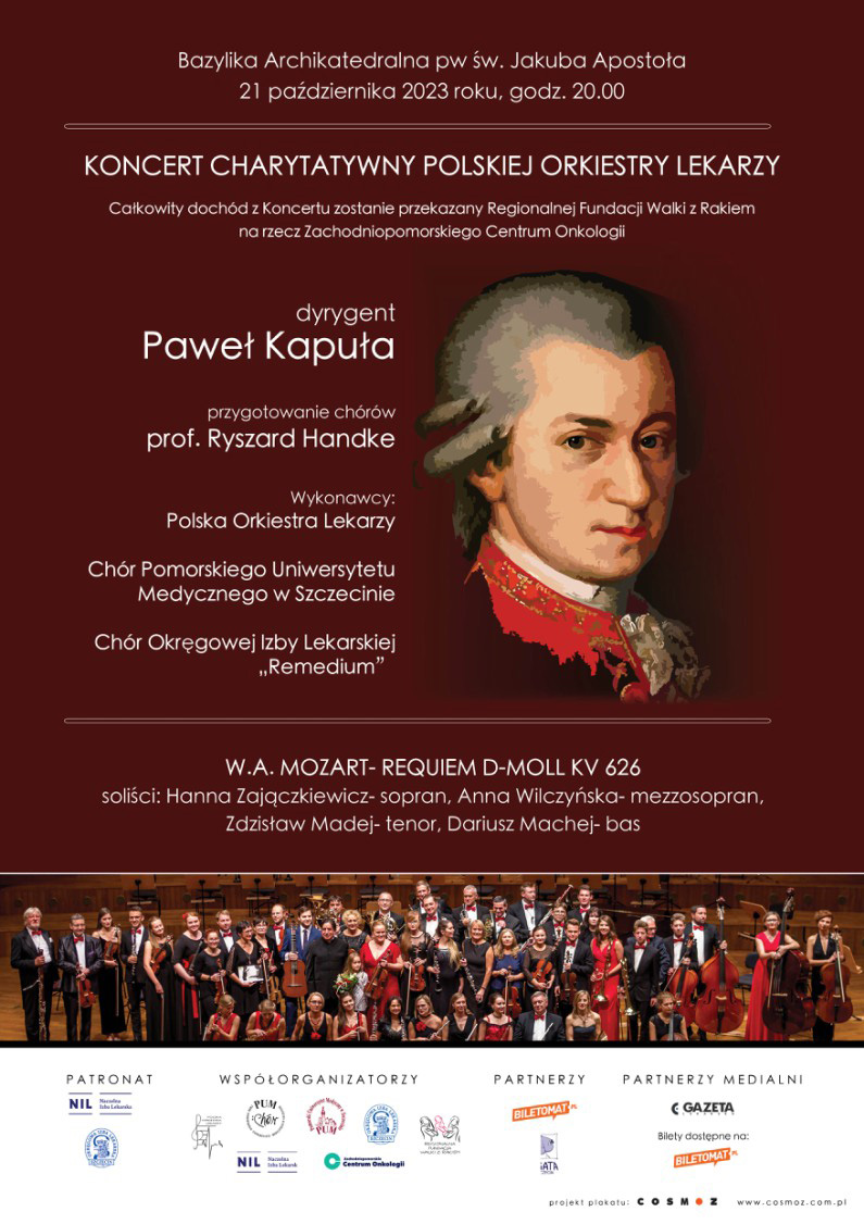 Chór PUM wystąpi wspólnie z Chórem Okręgowej Izby Lekarskie "Remedium" i Polską Orkiestrą Lekarzy. W repertuarze jedno z najpopularniejszych dzieł Mozarta "Requiem d-moll (KV 626)".