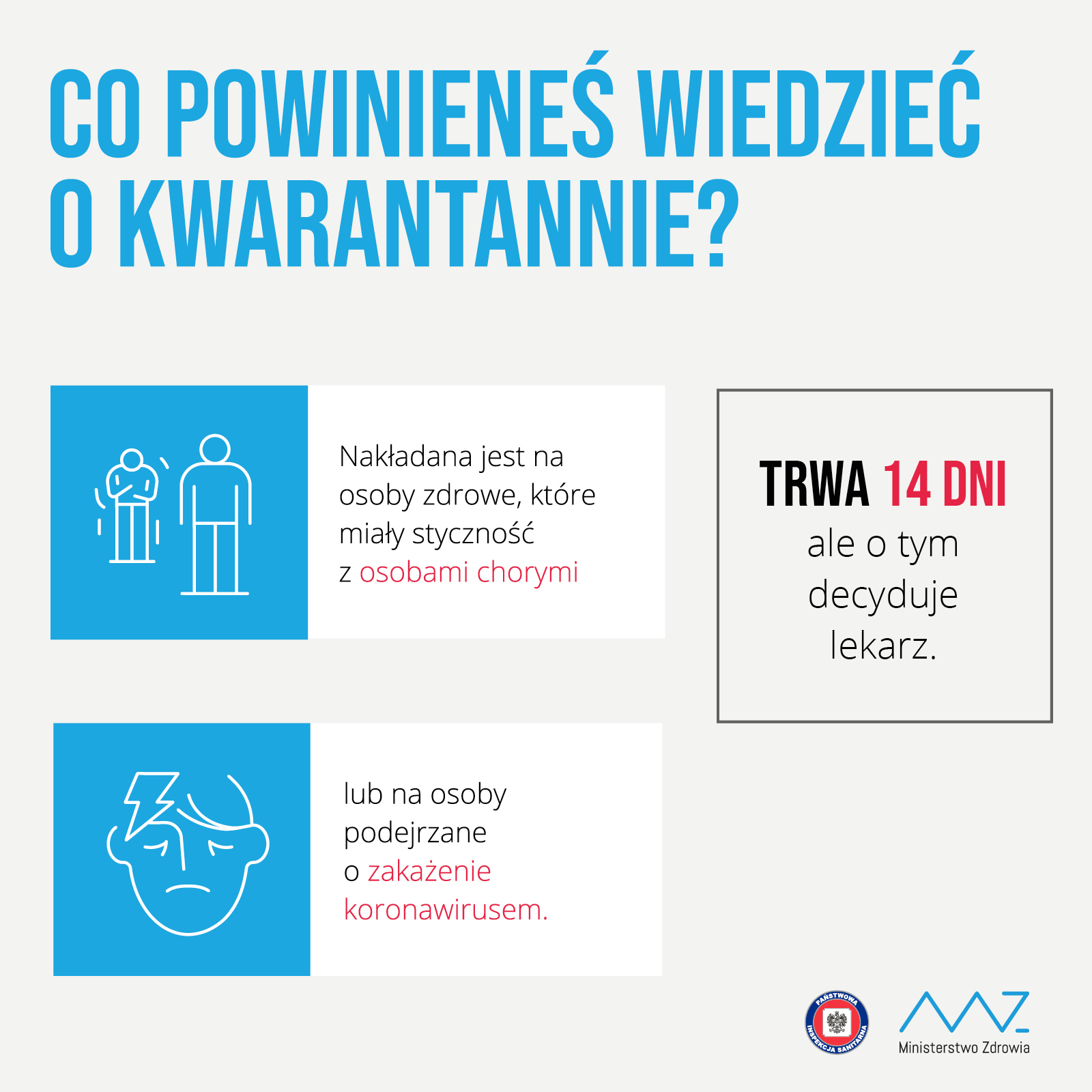 Teraz do przeciwdziałania zarażeniu koronawirusem dochodzi ODPOWIEDZIALNOŚĆ W PRZYPADKU ZALECENIA KWARANTANNY. Prosimy o niebagatelizowanie jej. Apelujemy o edukowanie dzieci, młodzieży i seniorów. Namawiamy do zapamiętania podstawowych informacji, by wiedzieć co można a czego nie można podczas kwarantanny robić.