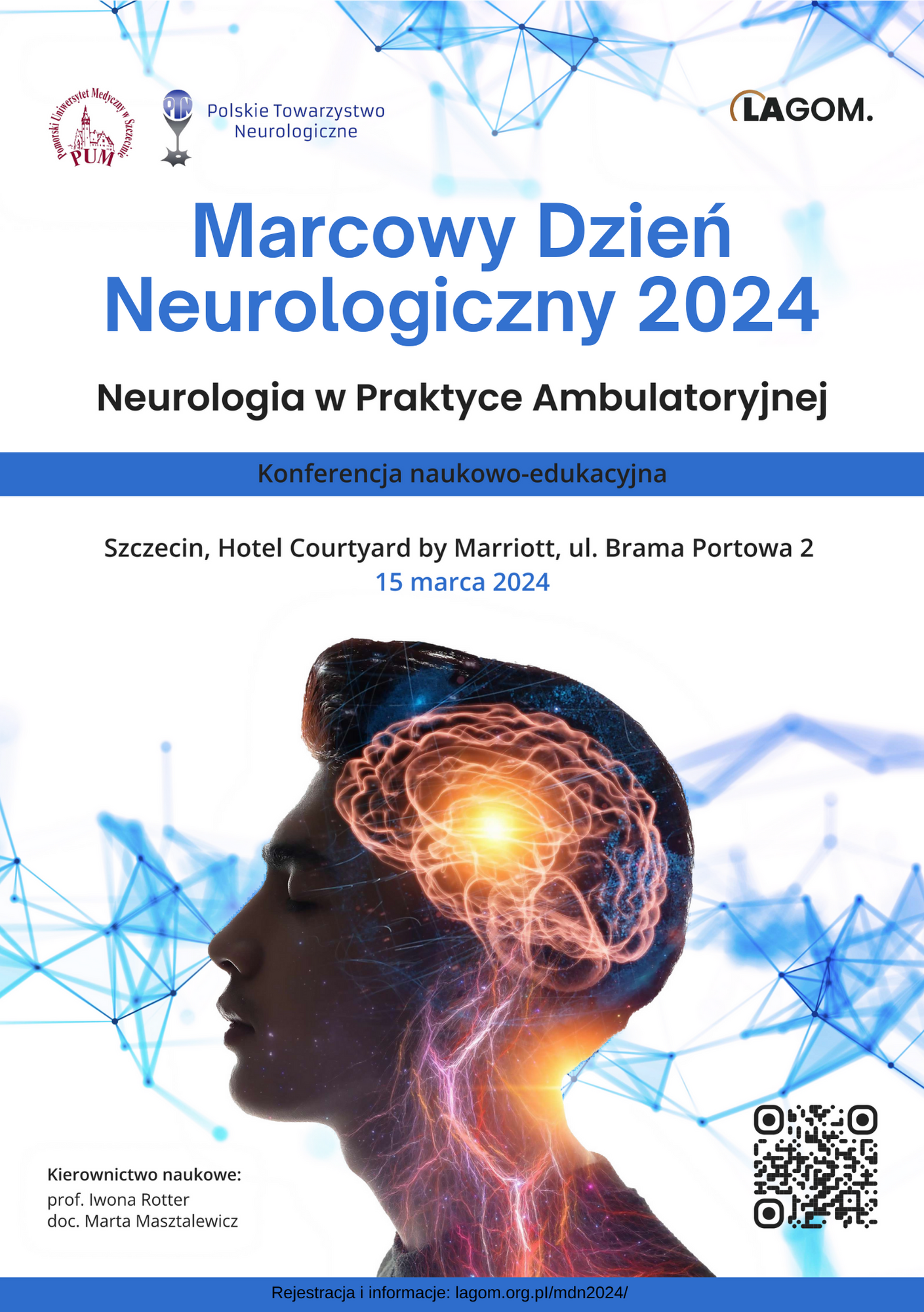 Z ogromną przyjemnością pragniemy zaprosić do udziału w drugiej edycji konferencji pt. „Marcowy Dzień Neurologiczny 2024 - Neurologia w praktyce ambulatoryjnej”, która odbędzie się 15 marca 2024 r. w Szczecinie w hotelu Courtyard by Marriott.
