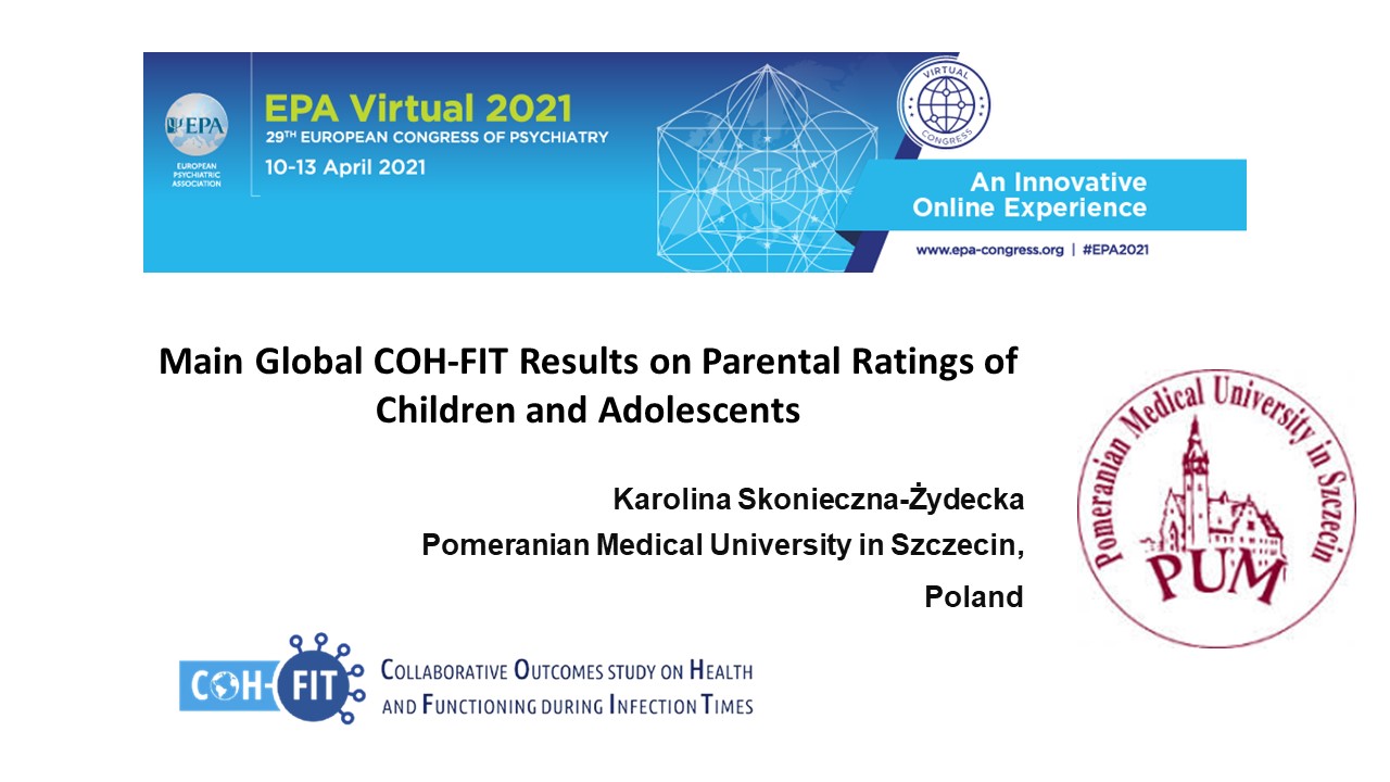 Na konferencji Europejskiego Towarzystwa Psychiatrycznego, polski lider międzynarodowego projektu Coh-FIT, zaprezentowała dwa wykłady. Pierwszy omawiał ocenę zdrowia psychicznego dzieci przez ich rodziców, drugi – zdrowie psychiczne pracowników służby zdrowia w Polsce.