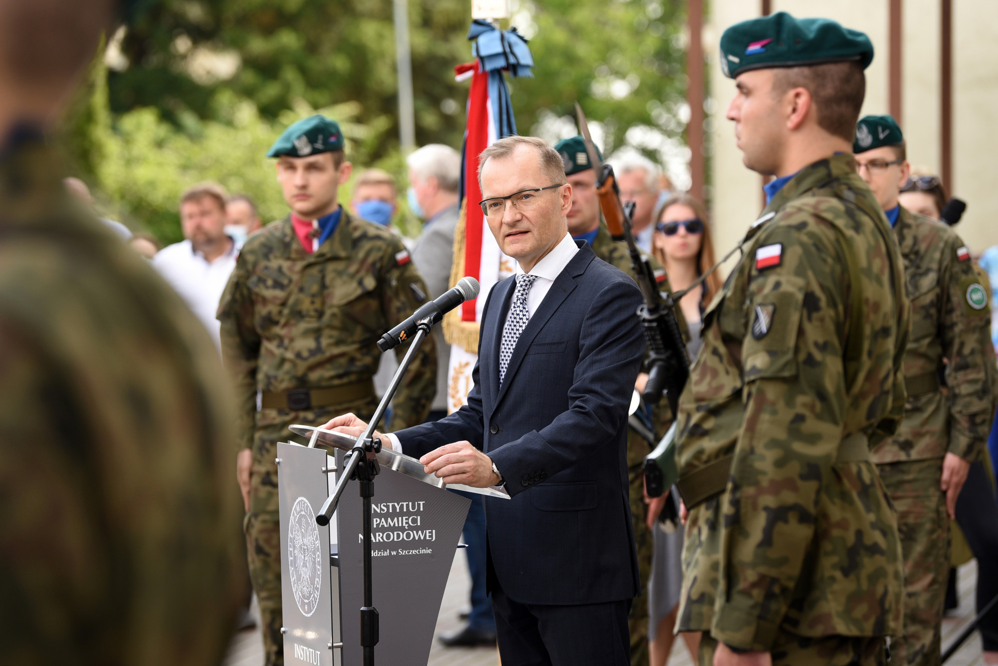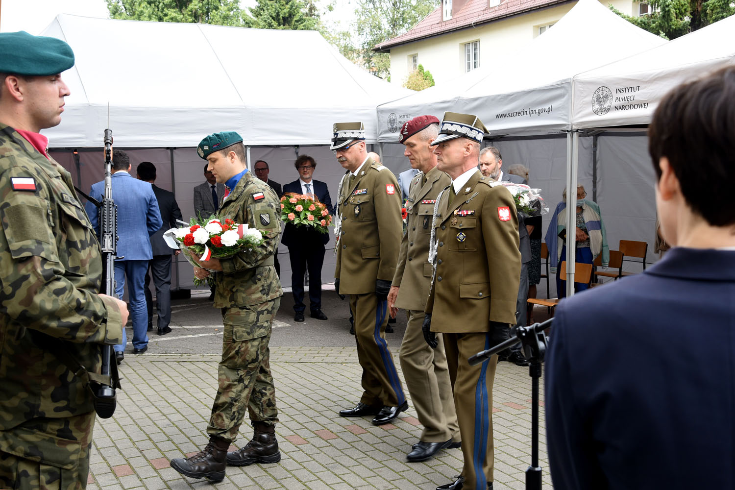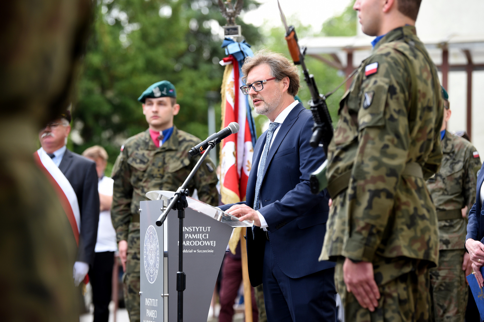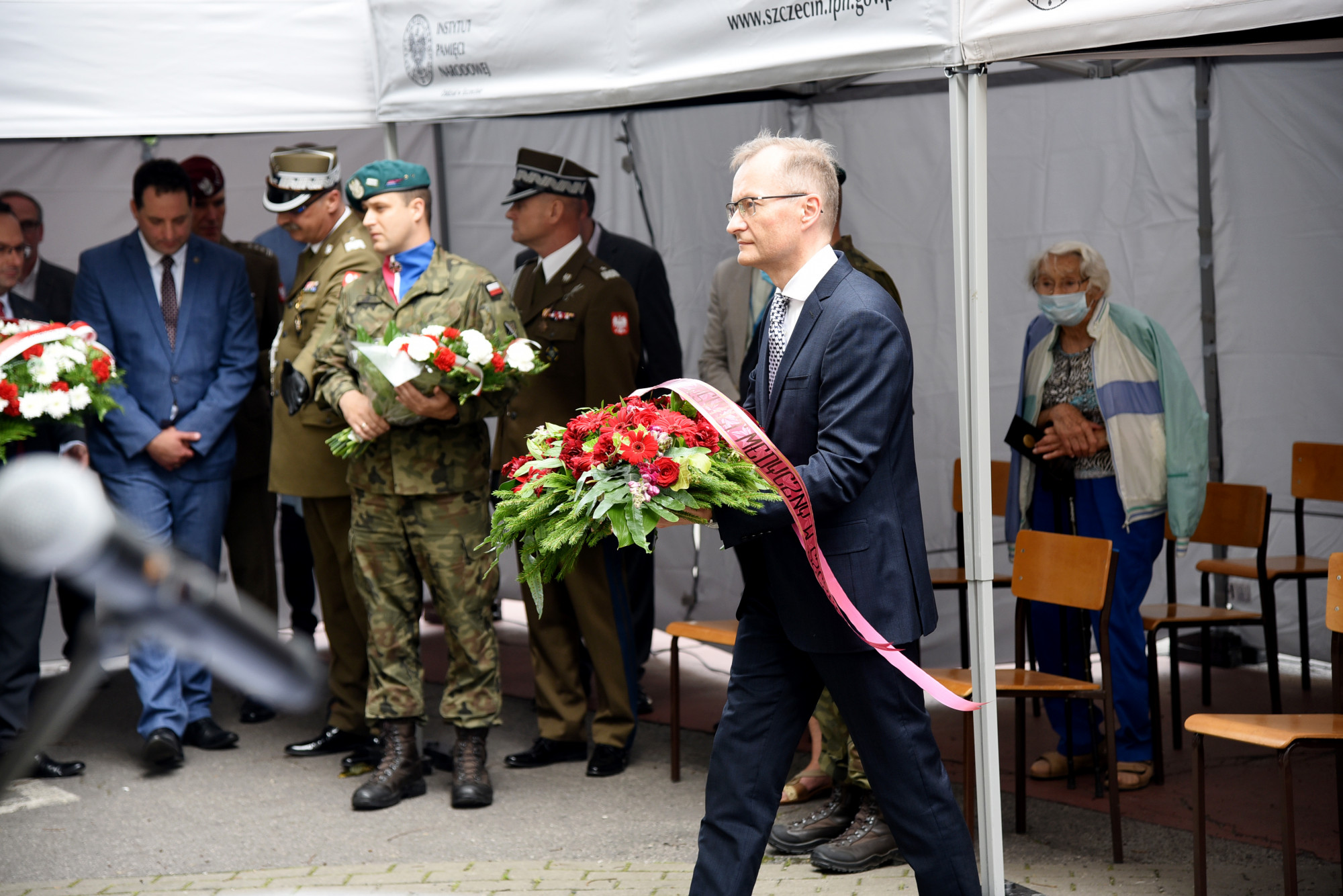 W asyście wojskowej i pocztu sztandarowego PUM, wczoraj uroczyście odsłonili tablicę pamiątkową płk. prof. Tadeusza Sokołowskiego, patrona Samodzielnego Publicznego Szpitala Klinicznego Nr 1 Pomorskiego Uniwersytetu Medycznego w Szczecinie - dyrektor IPN O/Szczecin Paweł Skubisz, Generał brygady Jacek Ostrowski, Zastępca Dowódcy - Szef Sztabu 12. Szczecińskiej dywizji Zmechanizowanej oraz rektor PUM prof. Bogusław Machaliński i dyrektor szpitala dr Konrad Jarosz.