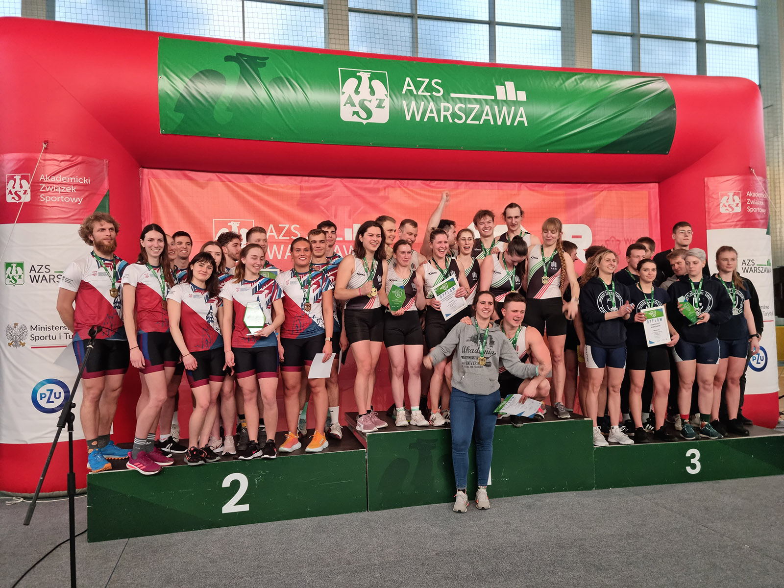 Natomiast w Warszawie odbyły się dwie imprezy, w których wzięła udział sekcja wioślarska PUM pod opieką trenera Jana Jelca. W sobotę rozegrany został pierwszy w historii Puchar AZS Osad Wioślarskich. Czteroosobowe osady ścigały się na łącznym dystansie 2000 m, każdy z zawodników pokonał średnio 500 m. W rywalizacji osad męskich Osada PUM (Jeremi Żamojcin, Michał Gut, Oliwer Huzarski, Piotr Lisowski) zajęła 1. miejsce, wyprzedzając Uniwersytet Warszawski i Akademię Górniczo Hutniczą z Krakowa. W rywalizacji osad żeńskich Osada PUM (Barbara Ufnalska, Annika Hoem, Gabriela Stępień, Julia Siemińska) zajęła 3. miejsce. Po rywalizacji osad mieszanych (PUM na 6. miejscu) w klasyfikacji drużynowej reprezentacja naszej uczelni zajęła 2. miejsce i zdobyła pierwszy Puchar AZS! W niedzielę odbyły się Akademickie Mistrzostwa Polski w ergometrze wioślarskim. Studenci z całej Polski ścigali się na dystansie 1000 m. PUM w klasyfikacji kobiet i mężczyzn zajął bardzo wysokie 8. miejsce na 40 startujących uczelni. Najlepiej sklasyfikowani wioślarze z PUM-u to Filip Bałazy (7. miejsce w wadze lekkiej mężczyzn), Maria Sachaj - Żamojcin (17. miejsce w wadze lekkiej kobiet) oraz Barbara Ufnalska (17. miejsce w wadze open kobiet).