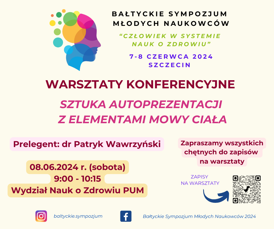 8 czerwca 2024 r. - Warsztaty konferencyjne "Sztuka autoprezentacji z elementami mowy ciała" (Wydział Nauk o Zdrowiu PUM ul. Żołnierska 48, Szczecin)