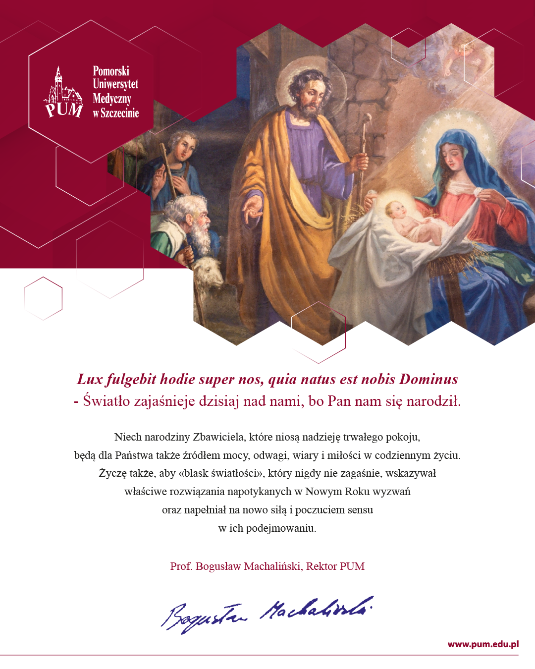 Przyjmijcie Państwo z rąk JM Rektora Pomorskiego Uniwersytetu Medycznego w Szczecinie prof. Bogusława Machalińskiego najserdeczniejsze życzenia świąteczne i pomyślności na nadchodzący 2023 rok.