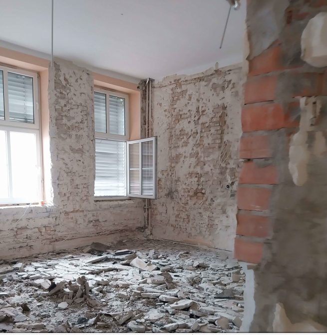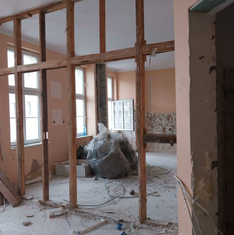 b) częściowe roboty demontażowe instalacji elektrycznej, instalacji sanitarnej i wentylacyjnej,