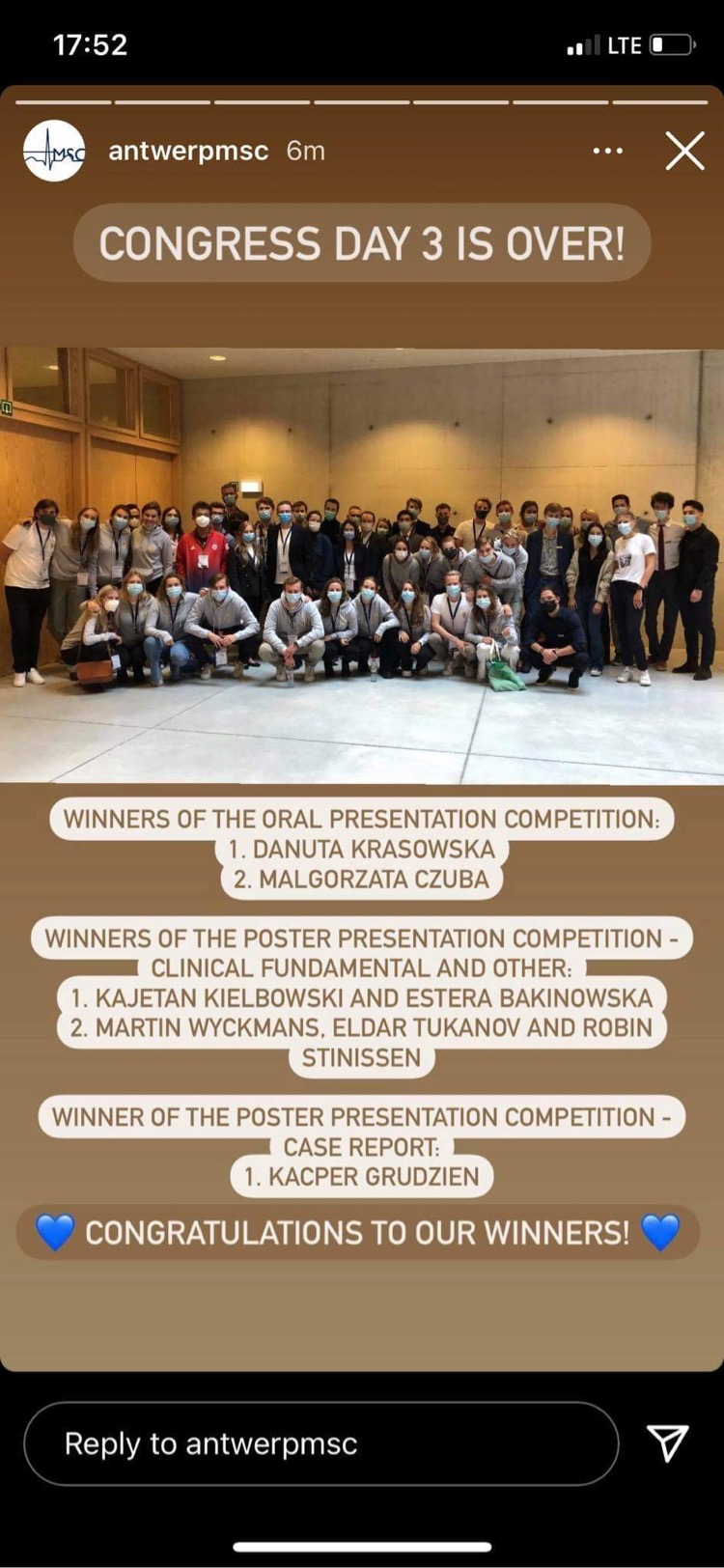 - Każde wystąpienie konferencyjne jest poprzedzone godzinami przygotowań, dyskusji i stresu, ale zawsze na koniec zdobywa się cenne doświadczenie i zwiększa pewność siebie. – dodaje Estera Bakinowska – Udział w konferencji w Antwerpii pozwolił nam poznać nowych ludzi, wymienić się pomysłami i poszerzyć horyzonty.