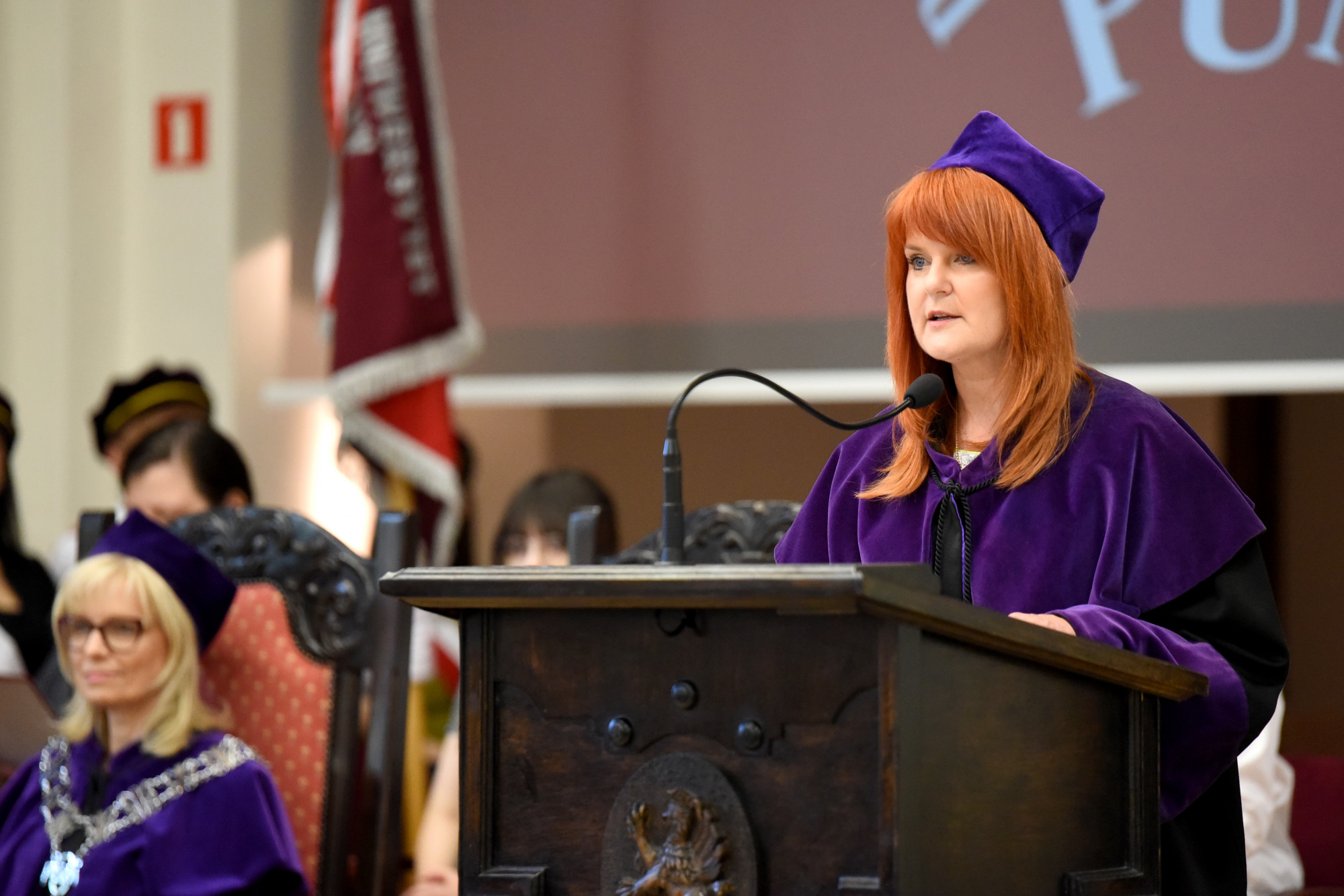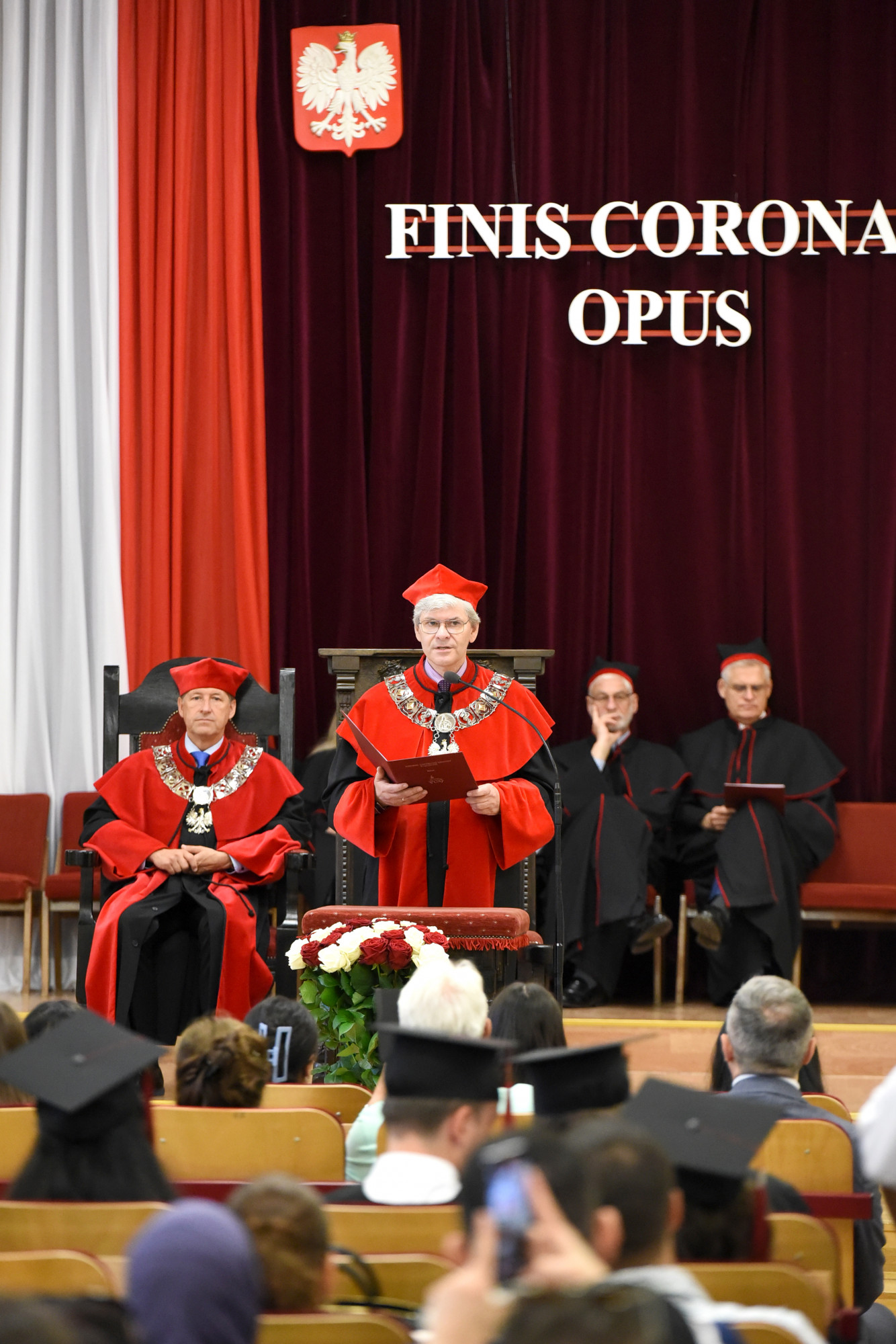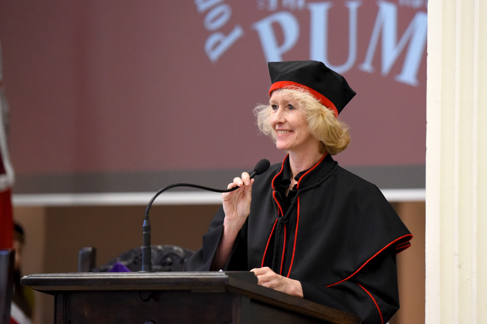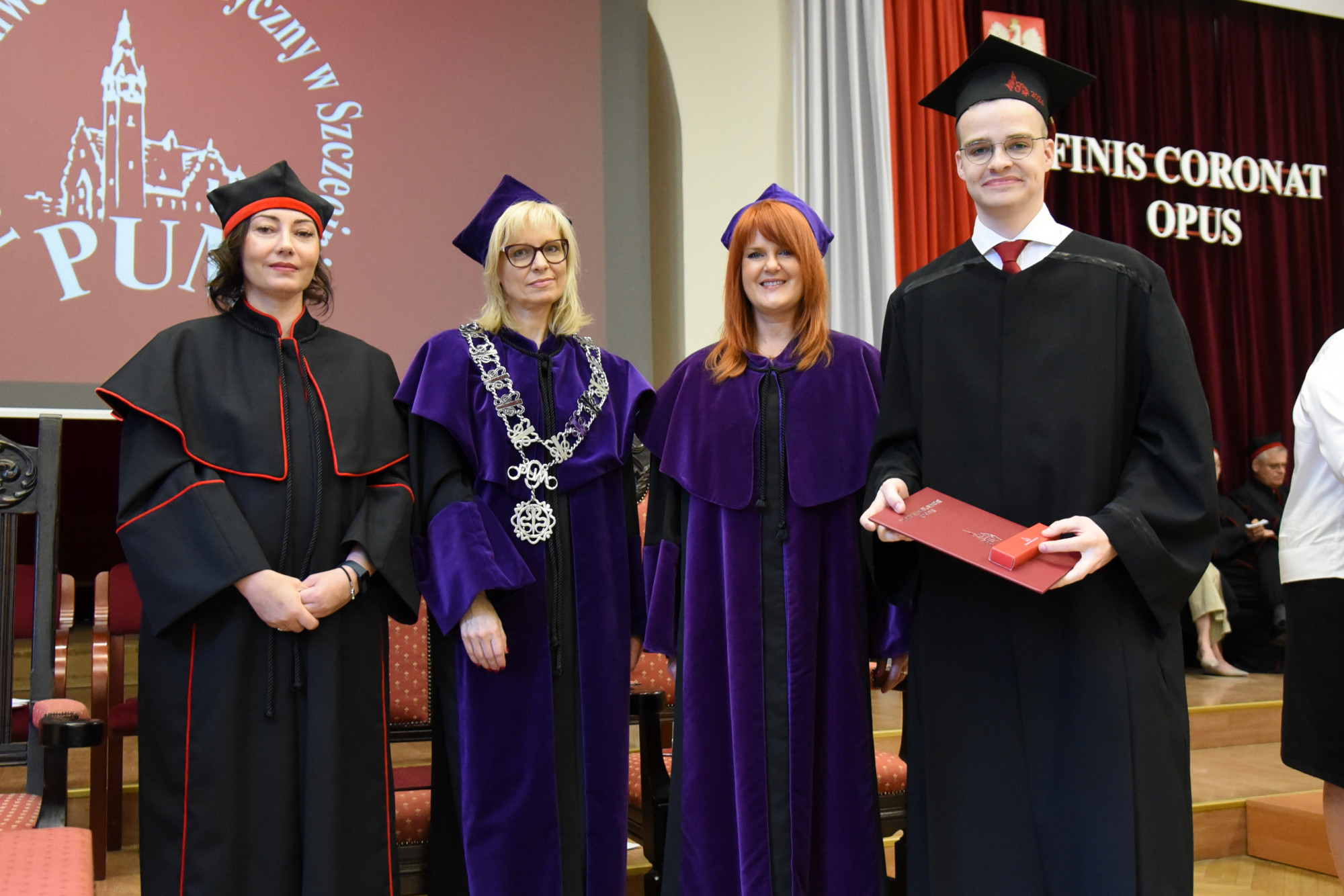 Gospodarzem uroczystości była prodziekan Wydziału Medycyny i Stomatologii prof. PUM dr hab. n. med. Aleksandra Gawlikowska-Sroka, która powitała władze uczelni, przybyłych gości, absolwentów i ich bliskich oraz kadrę dydaktyczną PUM.