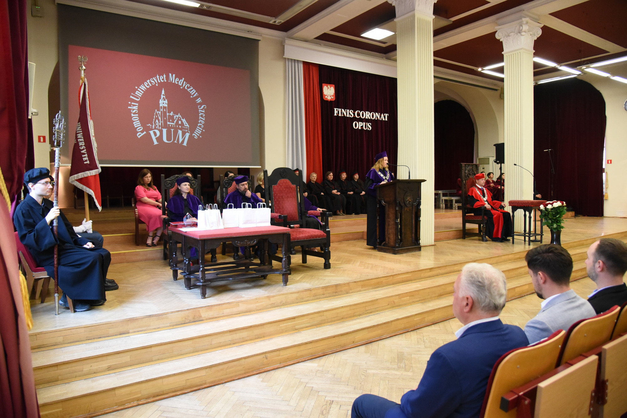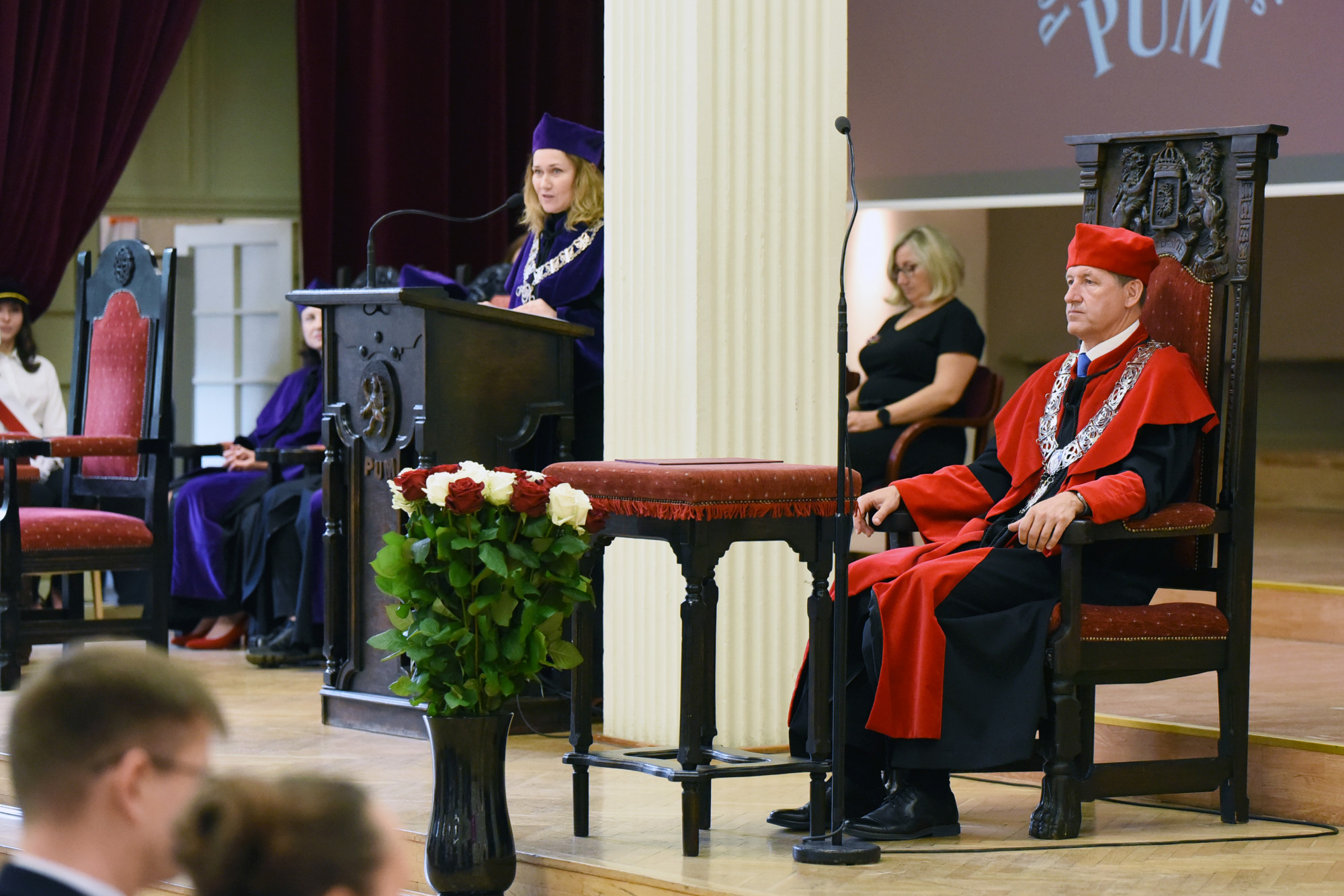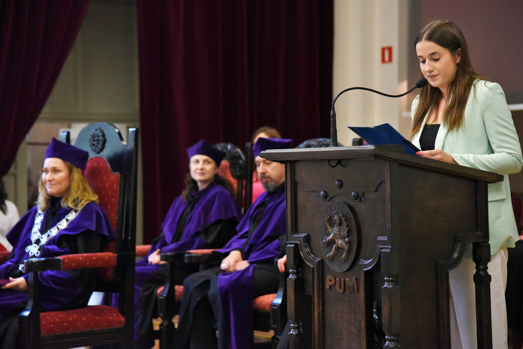 Ceremonię Absolutorium uświetniły ważne i wzruszające słowa przemawiających – rektora elekta, prof. dr. hab. n. med. Leszka Domańskiego oraz dziekan WFBMiML, prof. dr hab. n. zdr. Izabeli Gutowskiej. Odczytany został również list gratulacyjny od JM Rektora PUM, prof. dr. hab. n. med. Bogusława Machalińskiego.