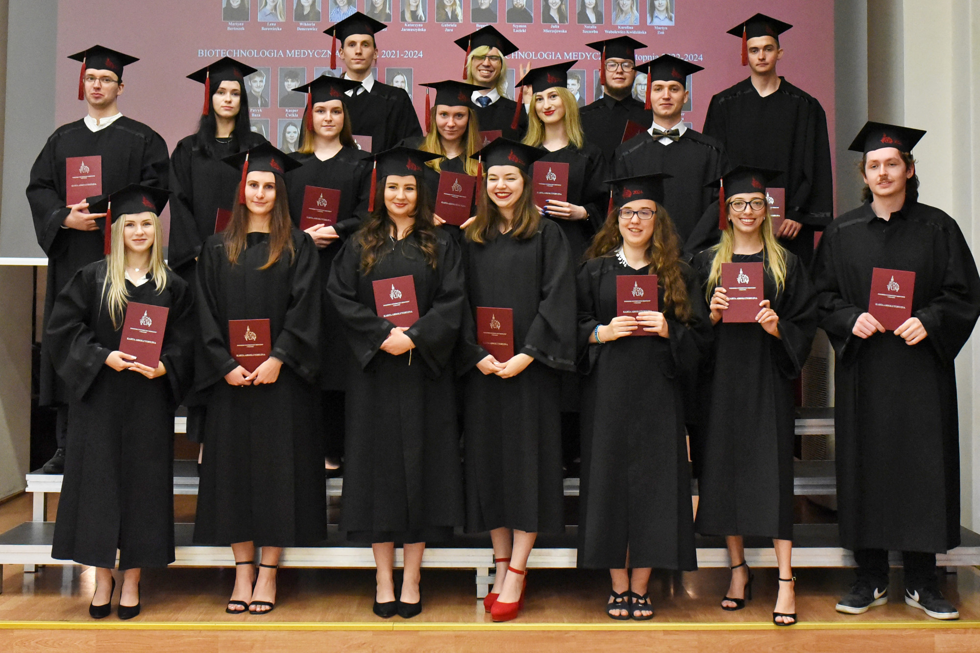 28 czerwca 2024 r. w Auli Rektoratu Pomorskiego Uniwersytetu Medycznego w Szczecinie odbyło się absolutorium kierunku analityka medyczna (studia jednolite magiterskie) oraz biotechnologia medyczna (studia I i II stopnia). Karty absolutoryjne wręczyła dziekan Wydziału Farmacji, Biotechnologii Medycznej i Medycyny Laboratoryjnej PUM prof. dr hab. n. zdr. Izabela Gutowska wraz z prodziekan, prof. dr hab. n. med. Danutą Kosik-Bogacką.