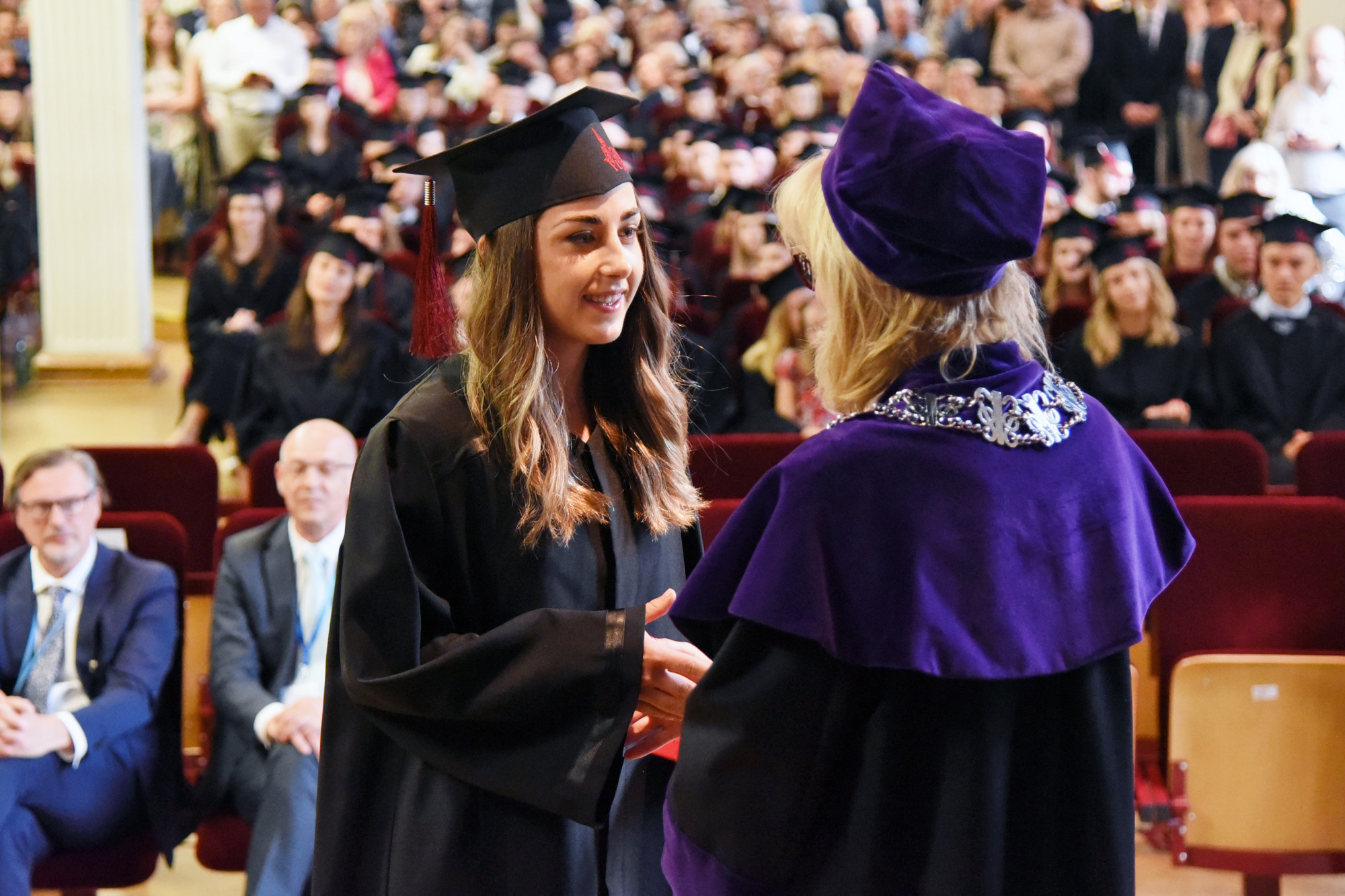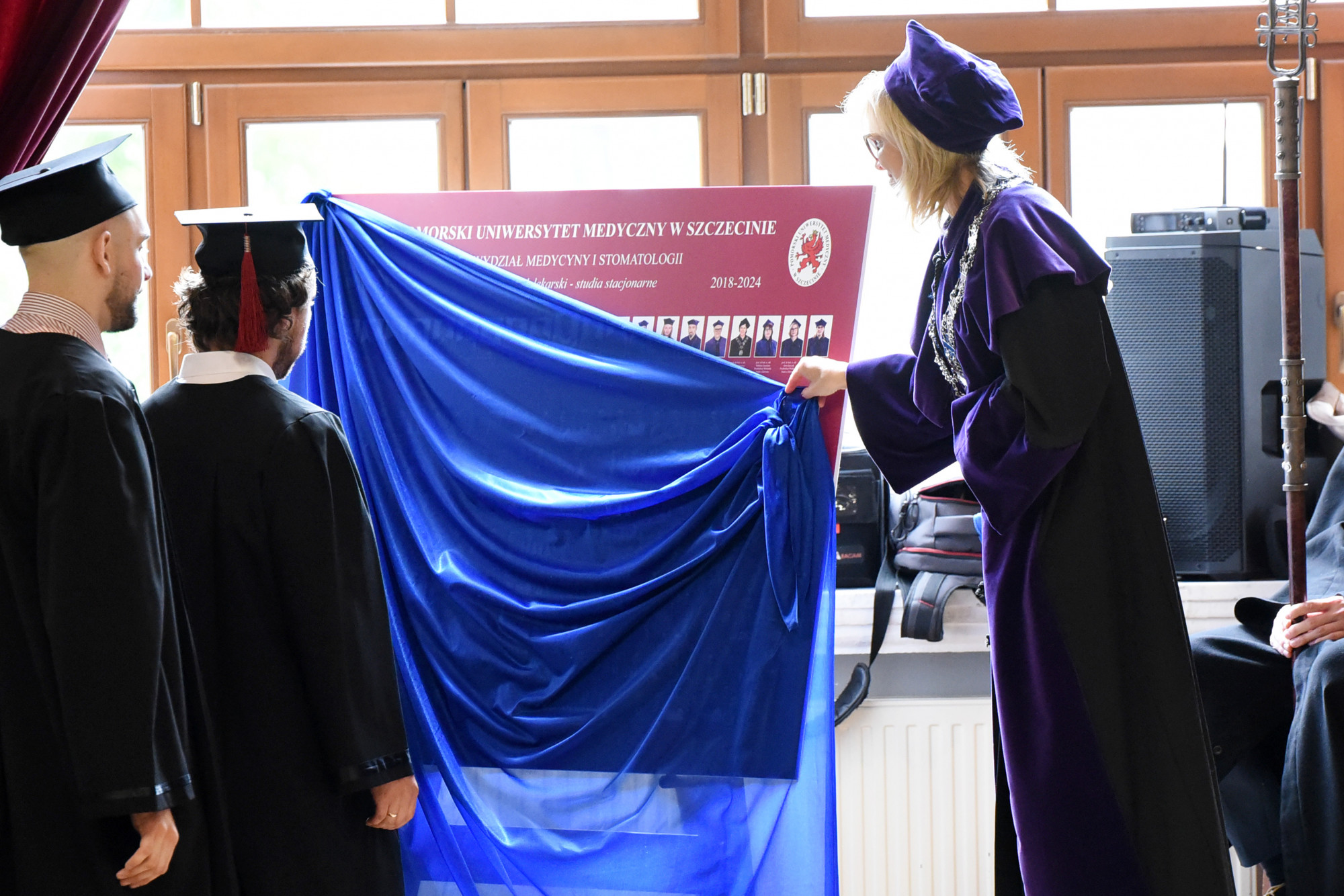 Ceremonię prowadziła dziekan Wydziału Medycyny i Stomatologii PUM, prof. dr hab. n. med. Edyta Paczkowska, która powitała gospodarzy, gości, absolwentów, ich bliskich oraz kadrę dydaktyczną PUM. Wręczyła dwustu dwudziestu dwóm absolwentom karty absolutoryjne. Reprezentując Magnificencję Rektora Pomorskiego Uniwersytetu Medycznego w Szczecinie, prof. Bogusława Machalińskiego, wystąpiła prof. Aneta Cymbaluk-Płoska, prorektor ds. dydaktyki.