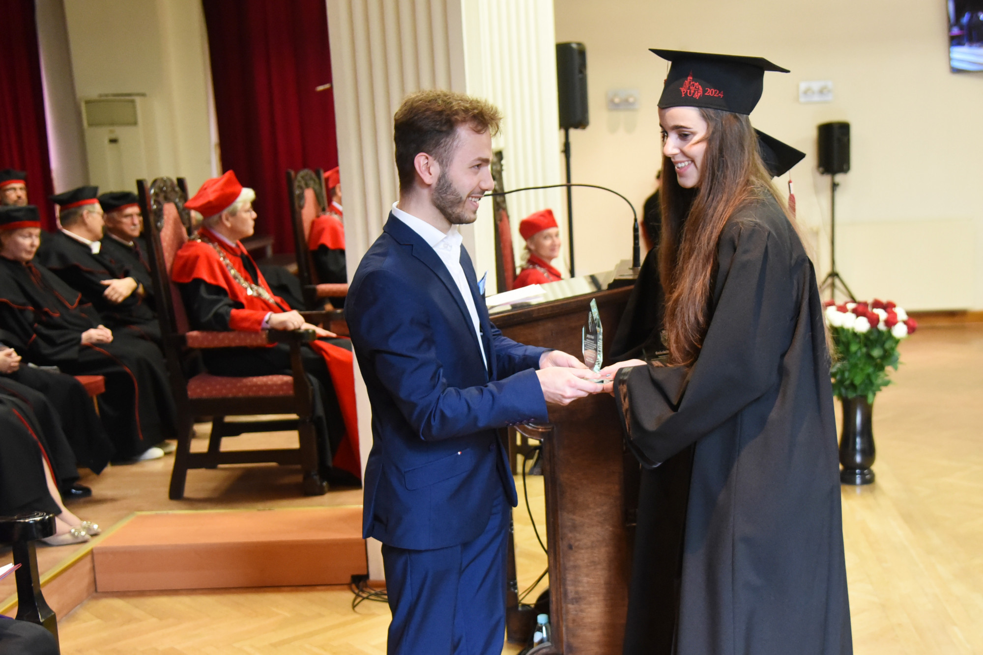 W tym wyjątkowym dniu wzruszające słowa do absolwentów i ich rodzin skierowali przedstawiciel Parlamentu Studentów, Tomasz Michowski, oraz Prezes Okręgowej Izby Lekarskiej w Szczecinie, dr n. med. Michał Bulsa. Prorektor ds. promocji i współpracy regionalnej, prof. Dariusz Chlubek, serdecznie zaprosił absolwentów do Alumni Club. Na zakończenie, prof. Aneta Cymbaluk-Płoska wygłosiła ważne słowa skierowane do tegorocznych absolwentów.
