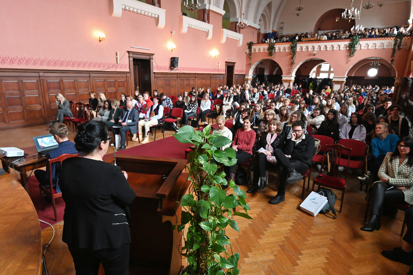 Wykład związany z tematyką konferencji wygłosiła prof. dr hab. Ewa Stachowska, kierownik Katedry i Zakładu Żywienia Człowieka i Metabolomiki PUM – Kiedy w jelitach „jest dobrze” dobrze jest w mózgu. Na temat perspektywy dalszego kształcenia na kierunkach medycznych wypowiadała się dziekan Wydziału Nauk o Zdrowiu PUM prof. dr. hab. Beata Karakiewicz, opisując prowadzone na WNoZ kierunki studiów. Członkowie Zespołu Pieśni i Tańca Pomorza Zachodniego PUM w strojach ludowych promowali zespół i zachęcali do wstąpienia w jego szeregi, budząc powszechne zainteresowanie i podziw dla wspaniałych strojów. Na życzenie młodzieży odbył się krótki pokaz tańca wraz z nauką podstawowych kroków. Zgromadzona publiczność nagrodziła sowitymi brawami wystąpienia przedstawicieli PUM.