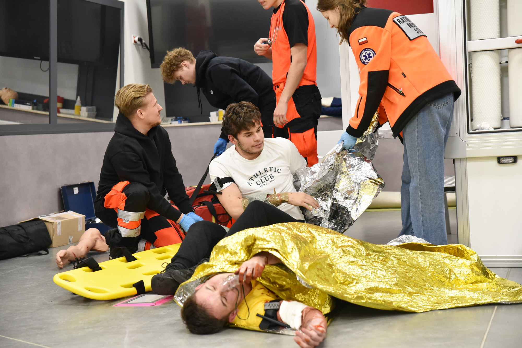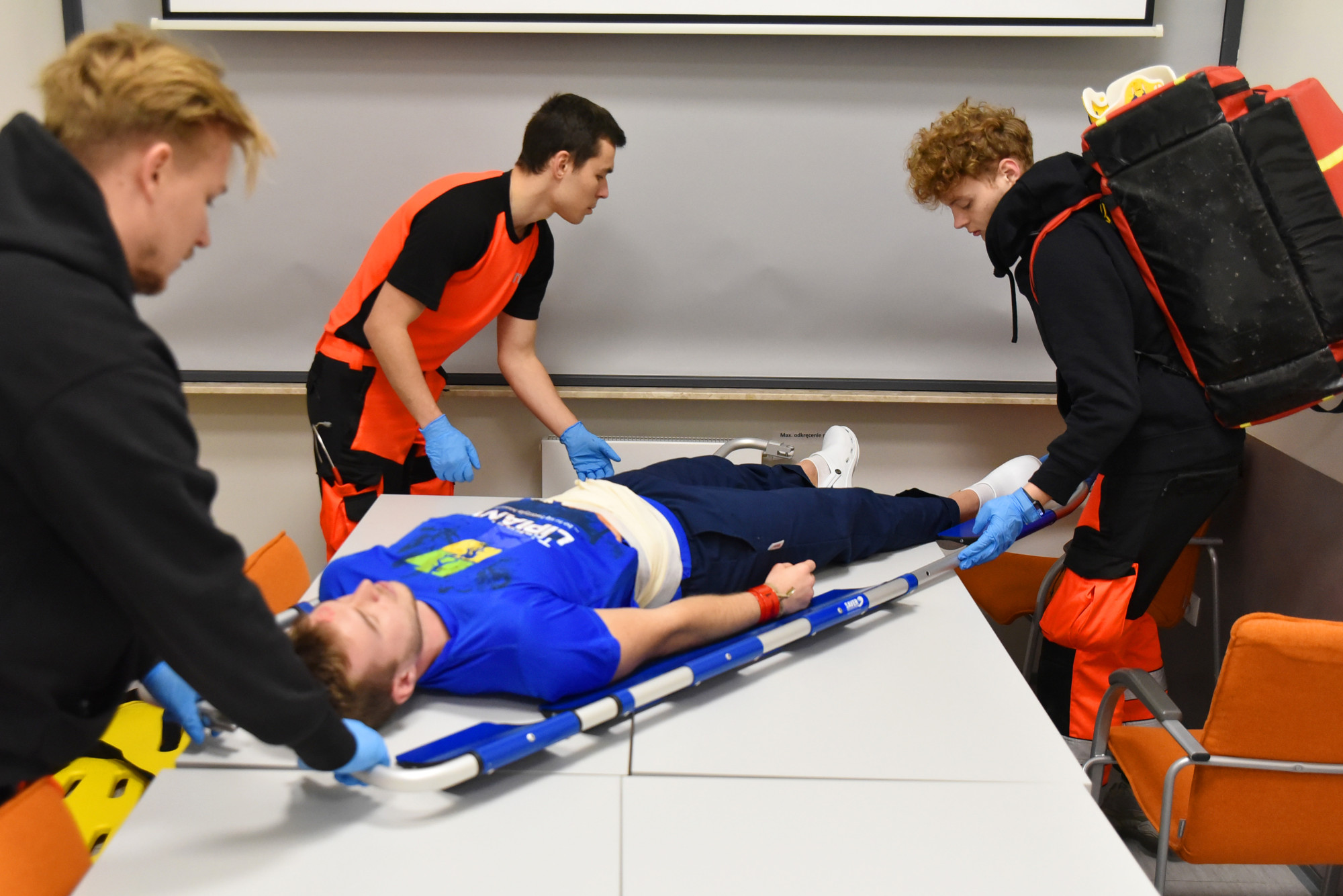 Studenci III roku kierunku ratownictwo medyczne wcielili się w role Zespołów Ratownictwa Medycznego, przeprowadzając triage, wdrażając medyczne czynności ratunkowe oraz podejmując decyzje medyczne w warunkach ograniczonych zasobów.