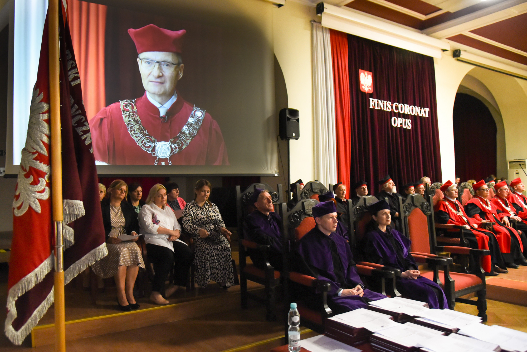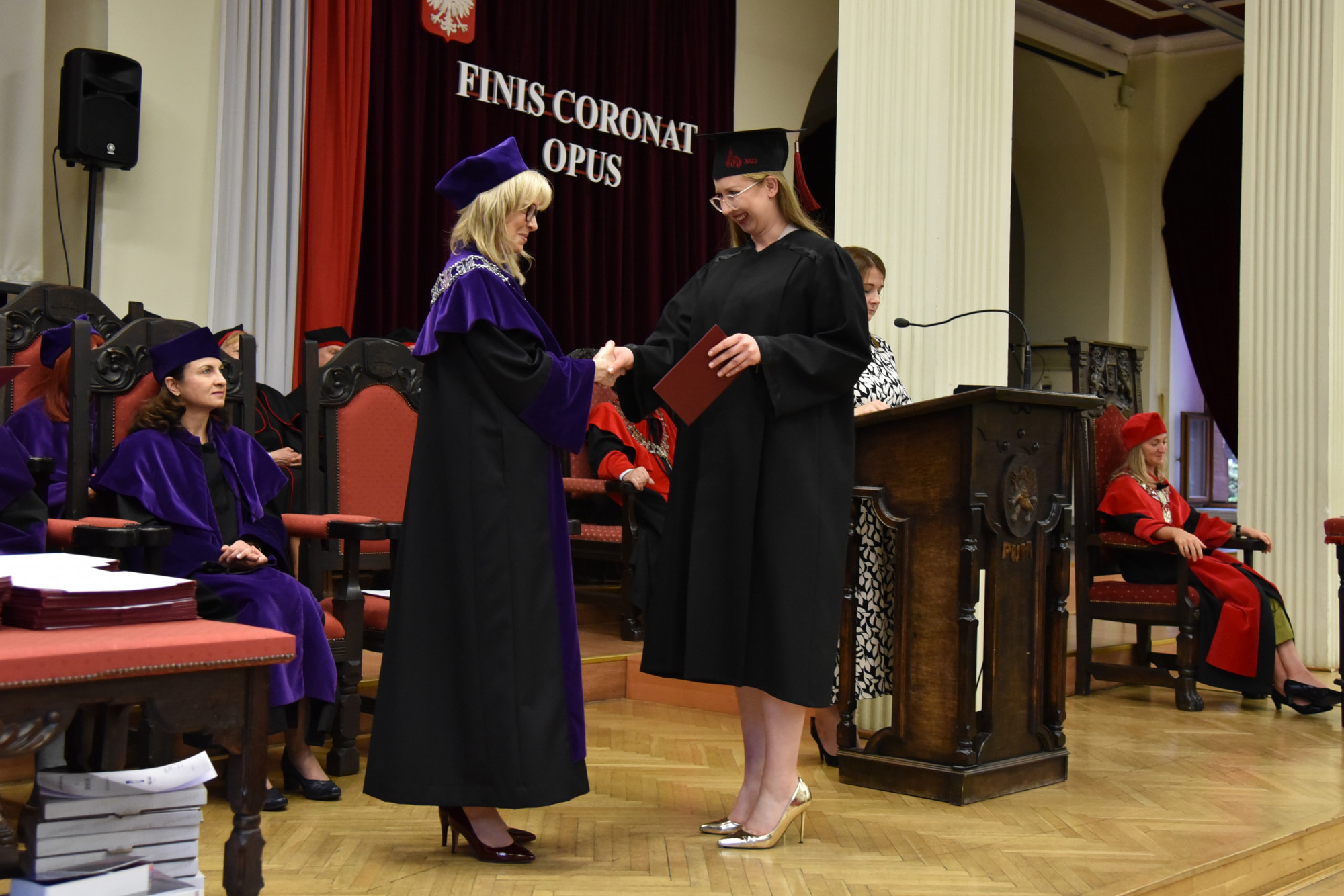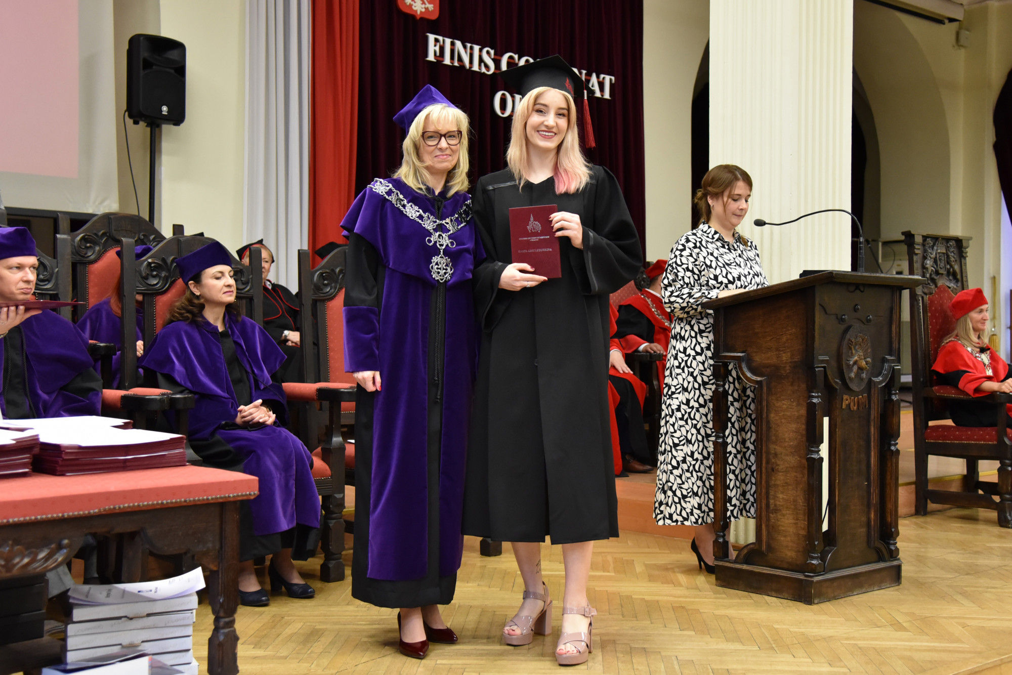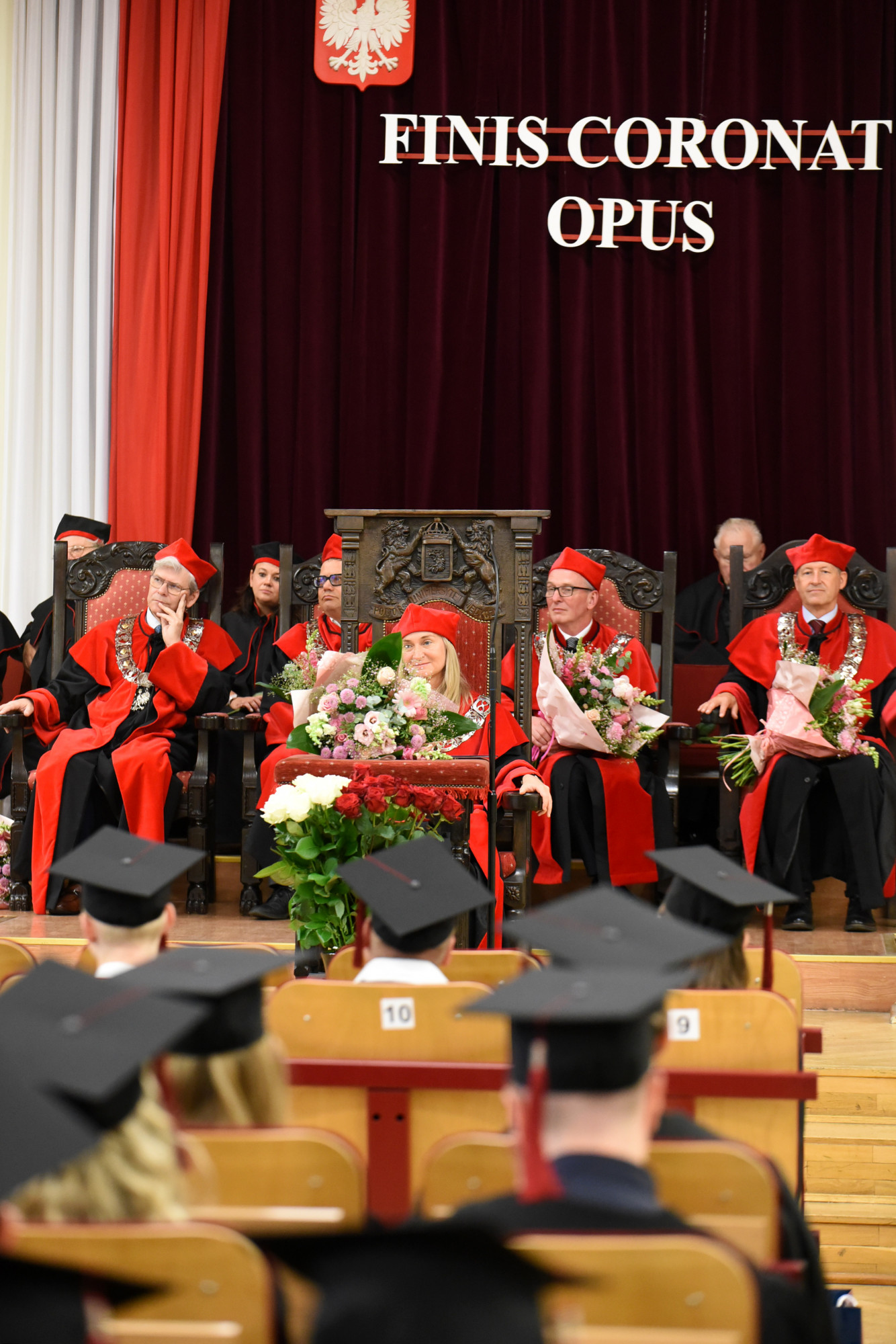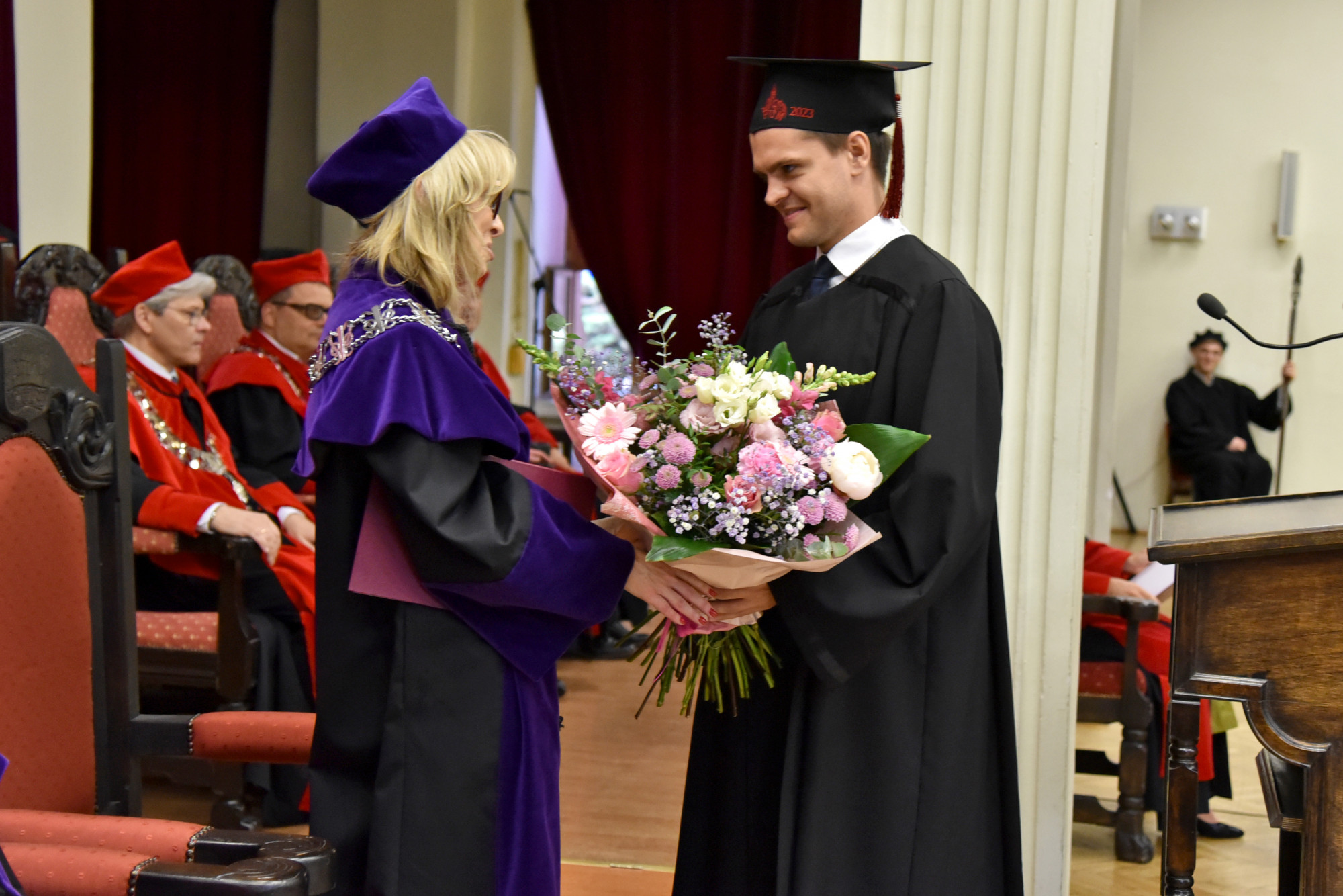 Funkcję mistrza ceremonii pełniła dziekan Wydziału Medycyny i Stomatologii PUM dr hab. Edyta Paczkowska, która przywitała gospodarzy, przybyłych gości, absolwentów i ich bliskich oraz kadrę dydaktyczną PUM. Magnificencję Rektora Pomorskiego Uniwersytetu Medycznego prof. Bogusława Machalińskiego reprezentowała prof. Aneta Cymbaluk-Płoska, prorektor ds. dydaktyki.