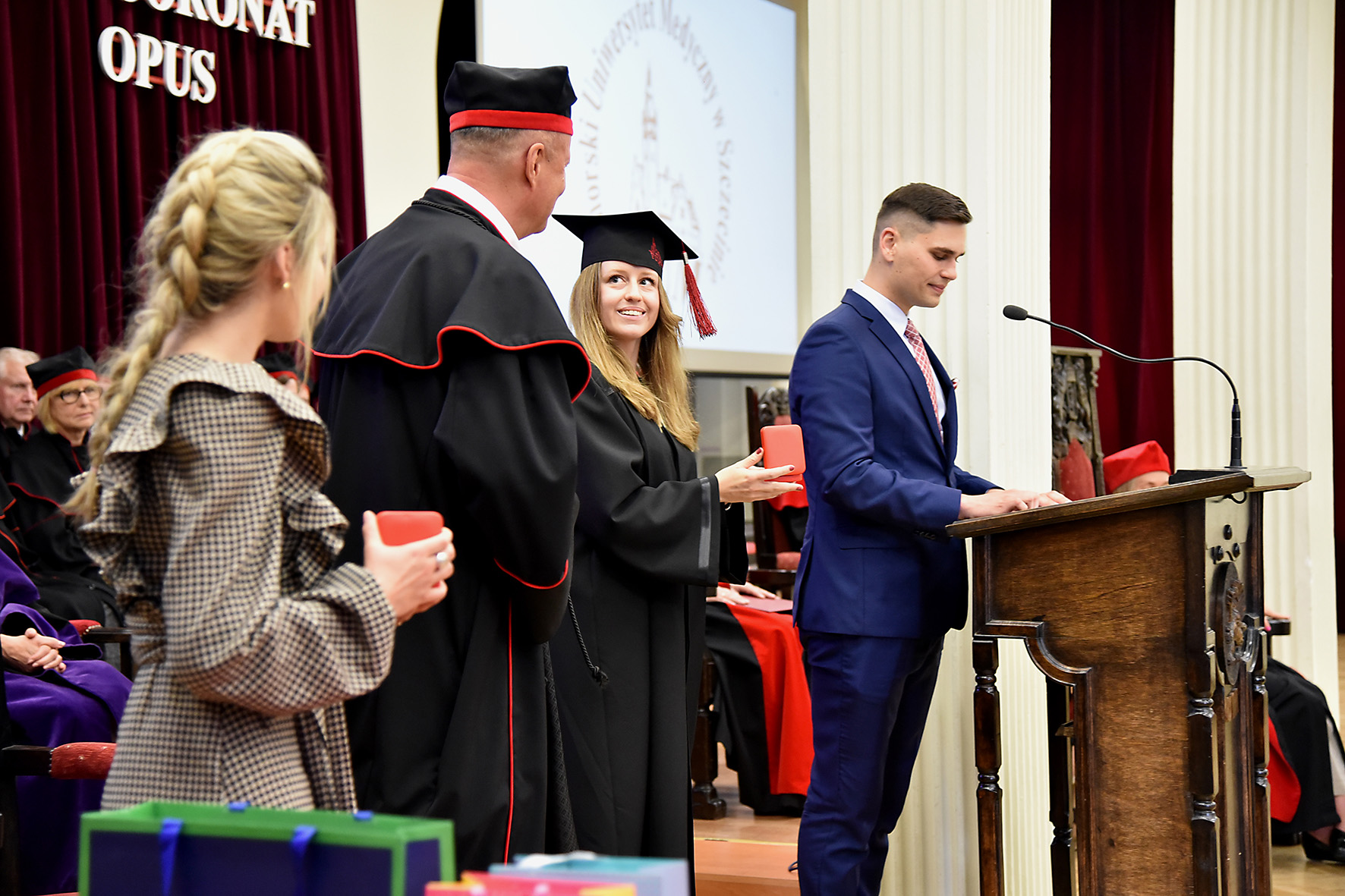Podczas uroczystości Absolwenci złożyli przyrzeczenie lekarskie, otrzymali karty absolutoryjne oraz wyróżnienia. Dziekan WMiS dr hab. Edyta Paczkowska wręczyła nagrody studentom, którzy uzyskali wysoką średnią z ocen. Prof. Jerzy Sieńko uhonorował aktywnych członków Studenckiego Towarzystwa Naukowego, a mgr Jan Jelec ze Studium Wychowania Fizycznego i Sportu wręczył pamiątki za osiągnięcia sportowe.