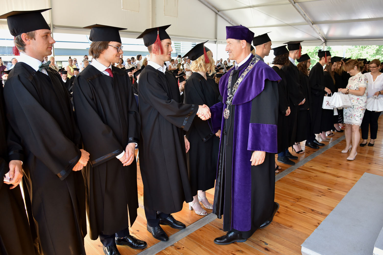 Podczas uroczystości absolwenci odebrali Karty Absolutoryjne i liczne wyróżnienia za odciągnięcia naukowe i nie tylko. Dziekan prof. Domański wręczył nagrody najlepszym studentom, którzy uzyskali średnią powyżej 4,5 pkt., prof. Jerzy Sieńko uhonorował aktywnych członków Studenckiego Towarzystwa Naukowego, mgr Jan Jelec ze Studium WFiS wręczył pamiątki za osiągnięcia sportowe.
