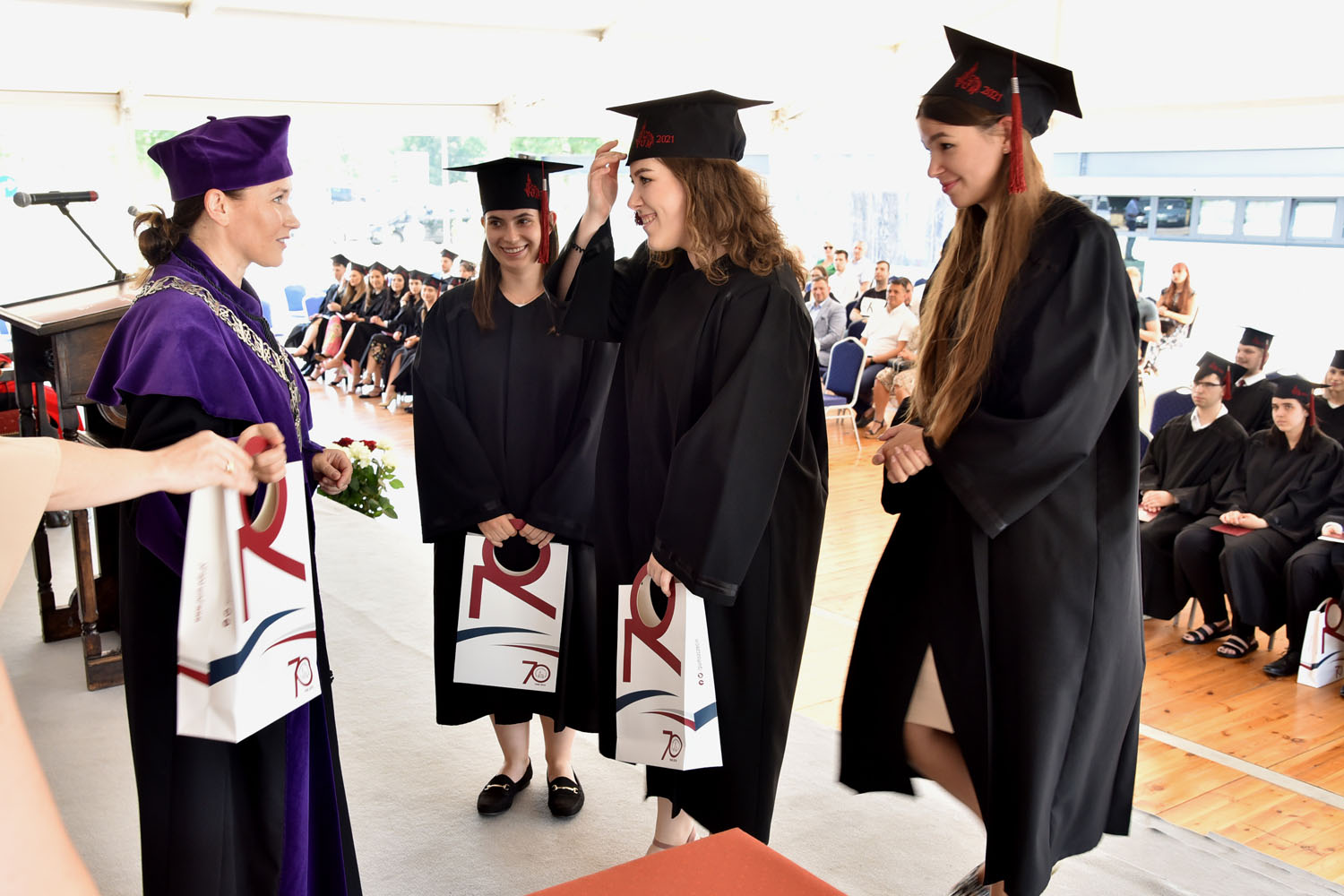 Mistrz ceremonii prof. Izabela Gutowska, dziekan Wydziału Farmacji, Biotechnologii Medycznej i Medycyny Laboratoryjnej PUM rozpoczęła ceremonię od powitania Prorektor dr Anety Cymbaluk-Płoskiej oraz Prorektora prof. Dariusza Chlubka, absolwentów, ich kadrę dydaktyczną, a także rodziny i przyjaciół.