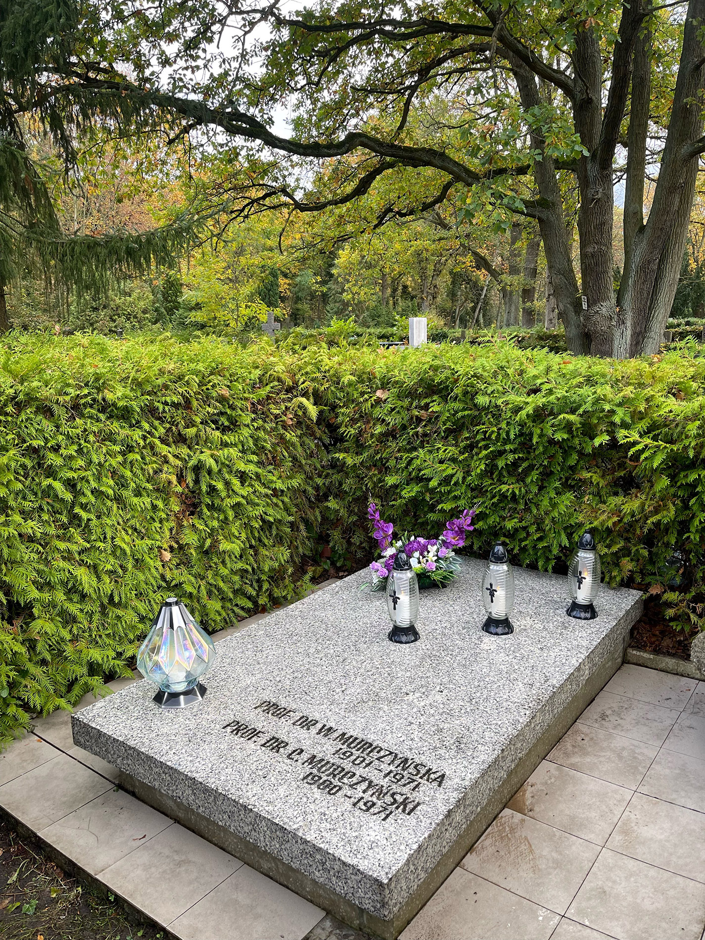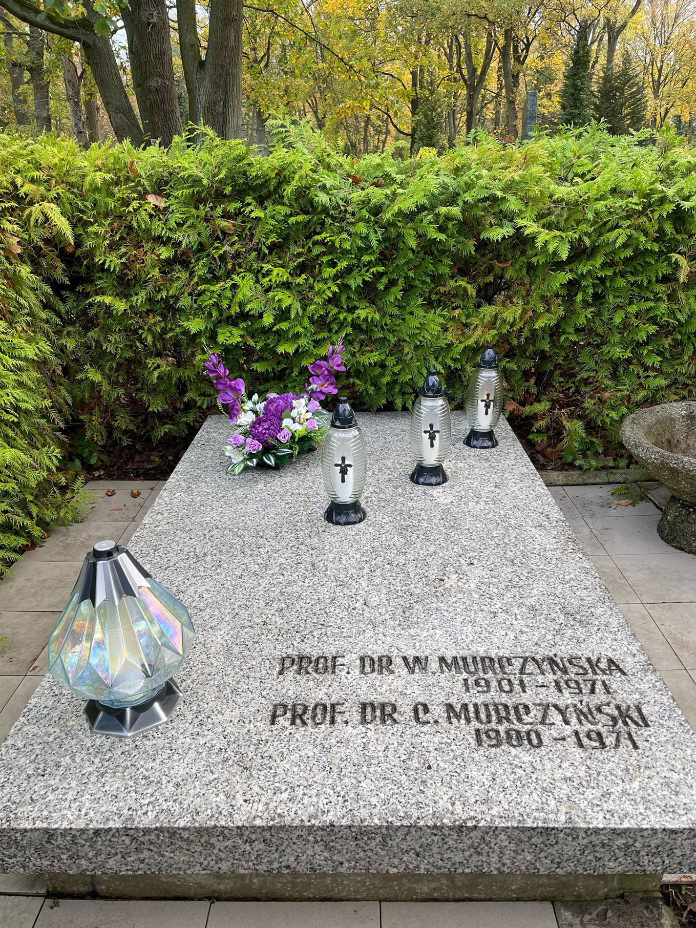 Jednak w takich przypadkach pieczę nad niezaopiekowanymi miejscami pochówku byłych pracowników Pomorskiej Akademii Medycznej oraz obecnego Pomorskiego Uniwersytetu Medycznego w Szczecinie kontynuują uczelnia i studenci. To piękny gest. I należą się podziękowania dla zaangażowania studentów oraz pochwała dla ich dojrzałej postawy. Prof. zw dr hab. n. med. Czesław Murczyński urodził się w Krakowie, ukończył medycynę na Uniwersytecie Jagiellońskim. Był radiologiem. Aktywnie uczestniczył w powoływaniu Pomorskiej Akademii Medycznej, w latach 1948-50 był Dziekanem Wydziału Lekarskiego, a w latach 1950-53 Rektorem PAM. Odznaczony m.in. Złotym Krzyżem Zasługi, Krzyżem Oficerskim Orderu Odrodzenia Polski, Krzyżem Komandorskim Orderu Odrodzenia Polski, Odznaką Gryfa Pomorskiego. Został pochowany w Szczecinie wraz z małżonką.