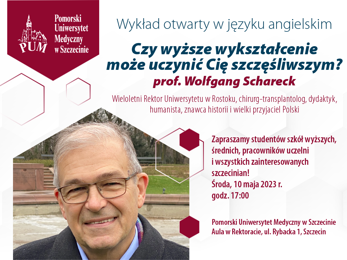 Wykład w języku angielskim poprowadzi prof. Wolfgang Schareck, wieloletni rektor Uniwersytetu w Rostoku, chirurg-transplantolog, dydaktyk, humanista, znawca historii i wielki przyjaciel Polski.
