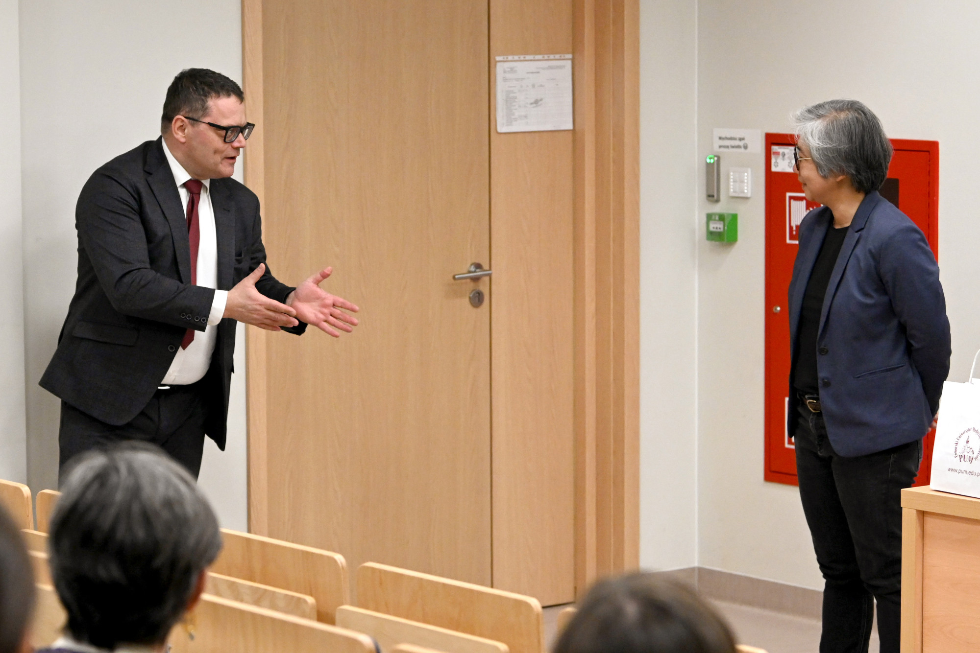 Goście mieli również okazję zwiedzić nowoczesne Centrum Symulacji Medycznej PUM. Wielu z nich podkreślało, że nie dysponują podobnymi rozwiązaniami w swoich jednostkach, co uznali za imponujące osiągnięcie naszej Uczelni oraz niezwykłą wartość dodaną dla studentów.
