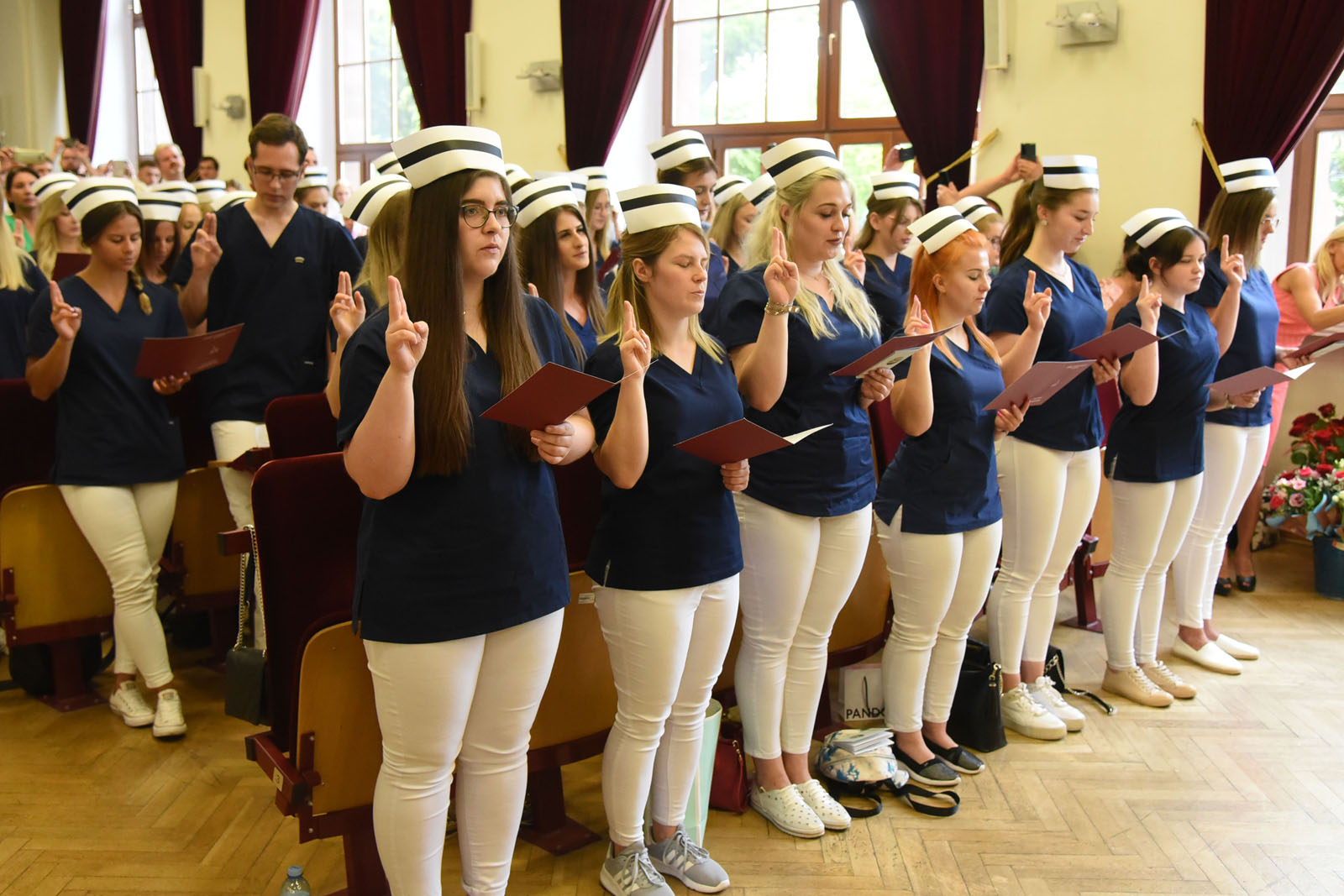 Ważną częścią uroczystości było złożenie przyrzeczenia pielęgniarskiego i odśpiewanie hymnu pielęgniarskiego. Doniosłej oprawy uroczystości nadało uczestnictwo pocztu sztandarowego i pedli PUM, a także wystąpienie chóru PUM, wykonującego hymn narodowy i pieśń „Gaudeamus igitur”.