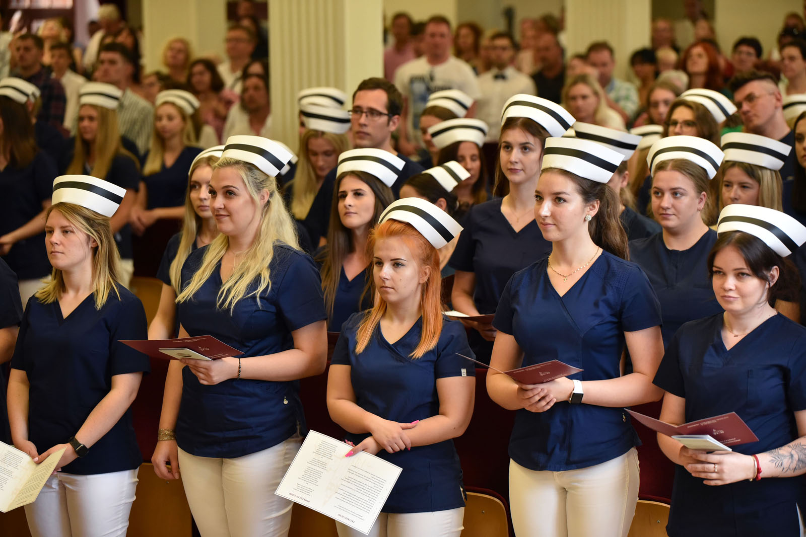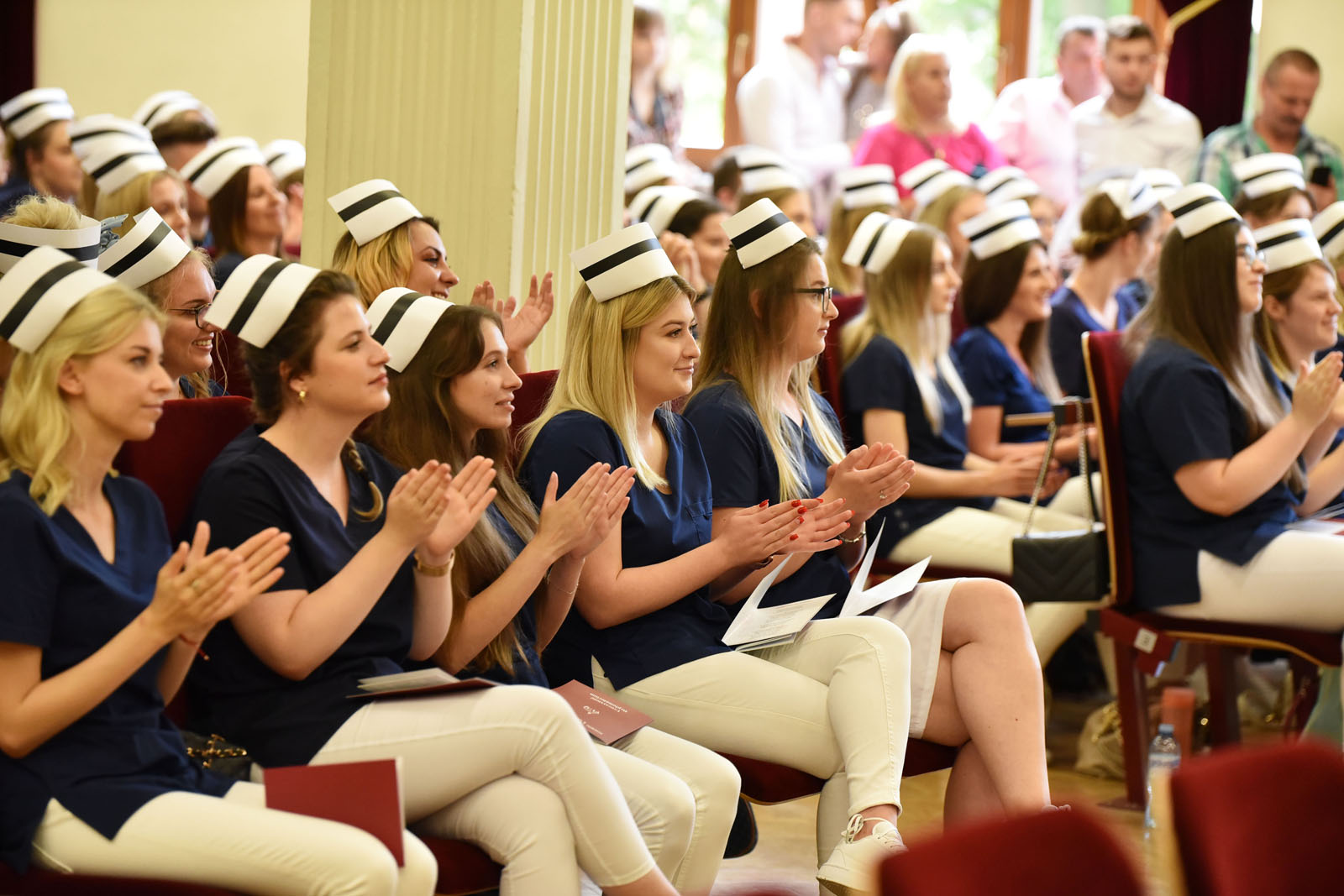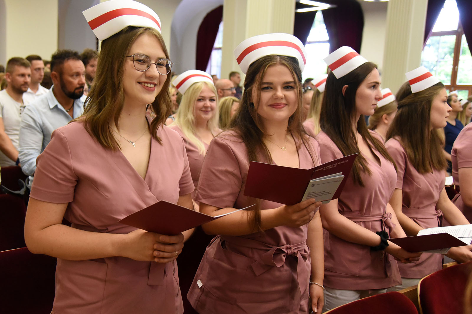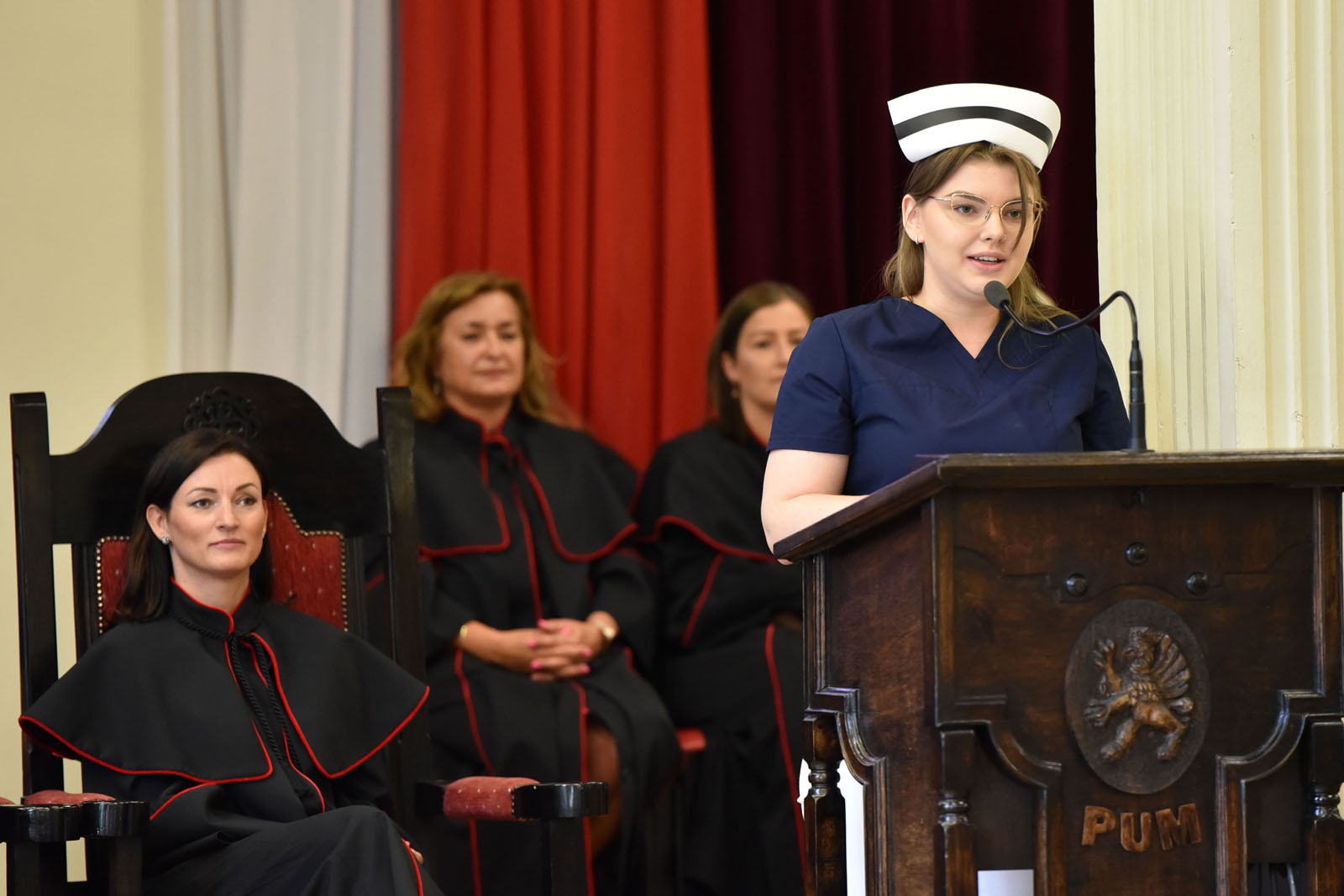 Ceremonię zaszczyciły swoją obecnością: dr hab. n. med. Aneta Cymbaluk-Płoska, prorektor ds. dydaktyki PUM w Szczecinie oraz dr hab. n. med. i n. zdr. Karolina Skonieczna-Żydecka, prodziekan Wydziału Nauk o Zdrowiu PUM w Szczecinie i dr hab. n. med. Aleksandra Gawlikowska-Sroka, prodziekan Wydziału Medycyny i Stomatologii. W uroczystości brali także udział: nauczyciele akademiccy PUM, naczelne pielęgniarki szczecińskich szpitali, mentorzy kształcenia praktycznego, a także absolwenci, ich rodziny i przyjaciele.