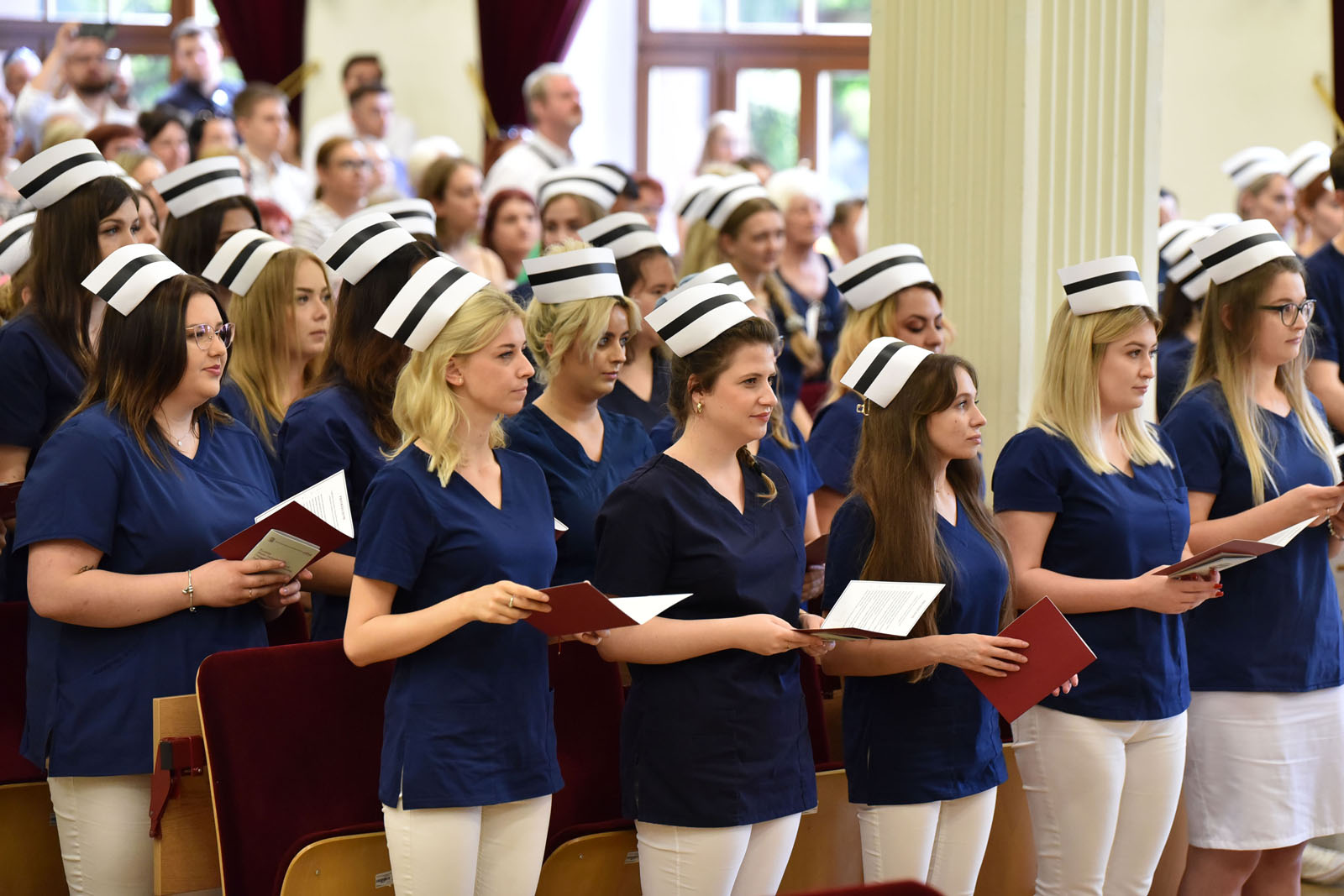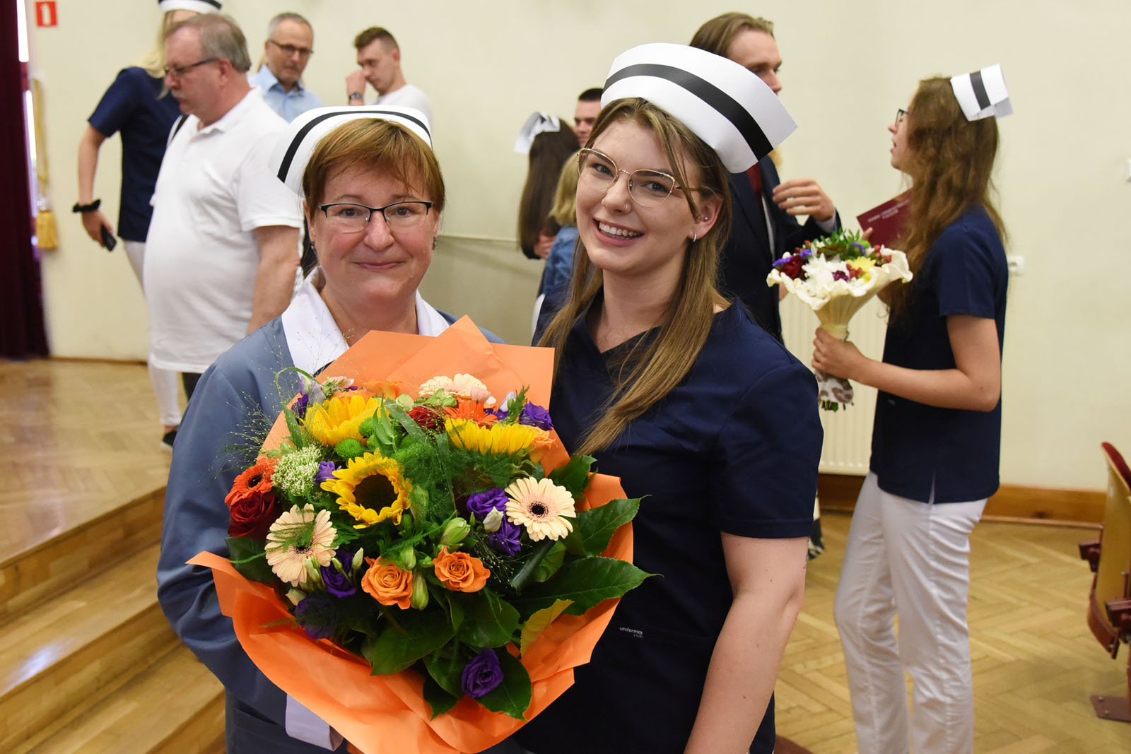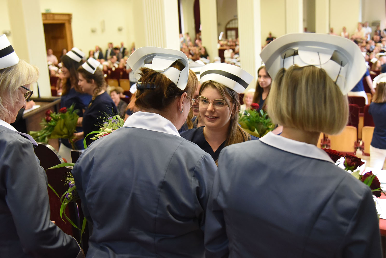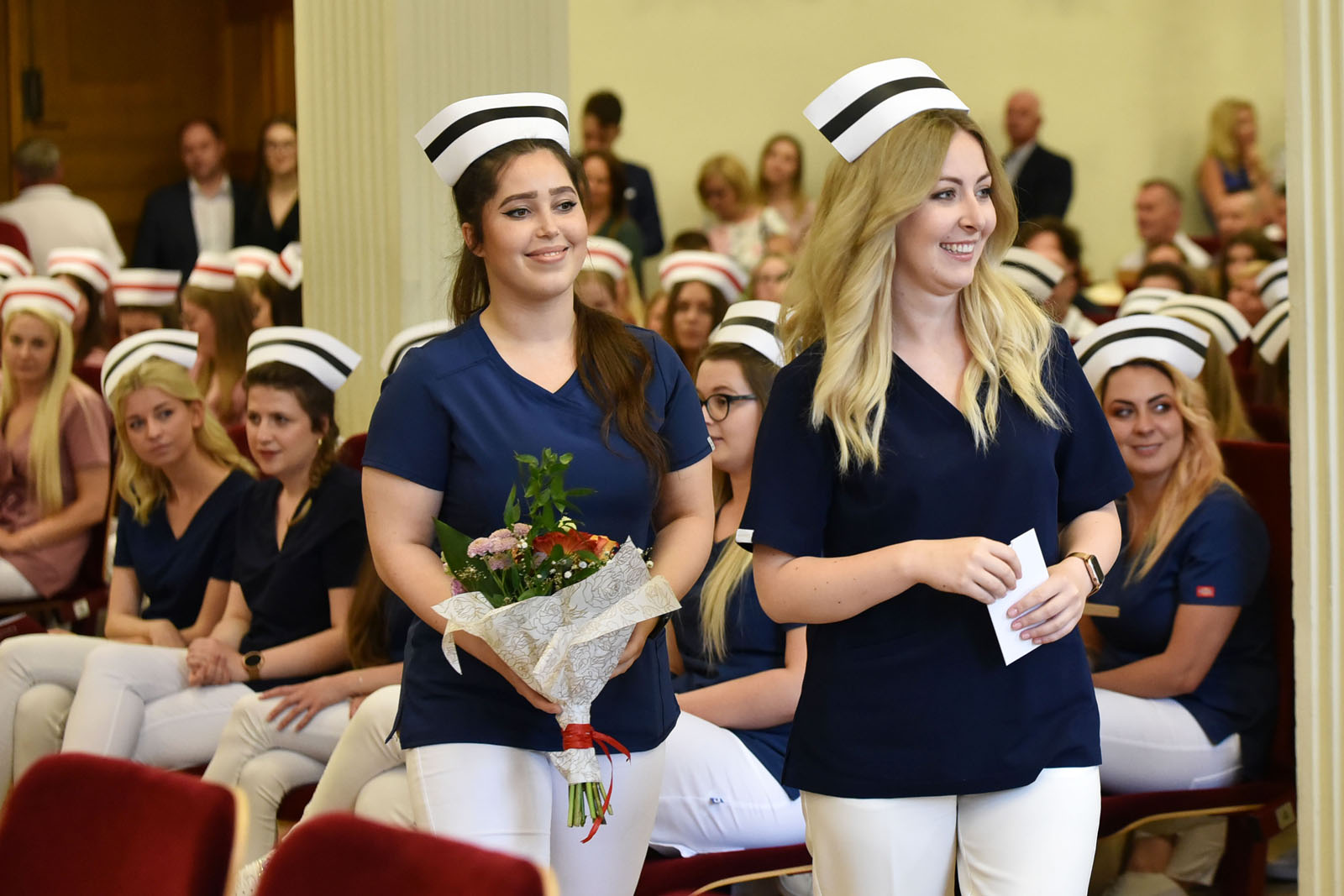 Ceremonię zaszczyciły swoją obecnością: dr hab. n. med. Aneta Cymbaluk-Płoska, prorektor ds. dydaktyki PUM w Szczecinie oraz dr hab. n. med. i n. zdr. Karolina Skonieczna-Żydecka, prodziekan Wydziału Nauk o Zdrowiu PUM w Szczecinie i dr hab. n. med. Aleksandra Gawlikowska-Sroka, prodziekan Wydziału Medycyny i Stomatologii. W uroczystości brali także udział: nauczyciele akademiccy PUM, naczelne pielęgniarki szczecińskich szpitali, mentorzy kształcenia praktycznego, a także absolwenci, ich rodziny i przyjaciele.