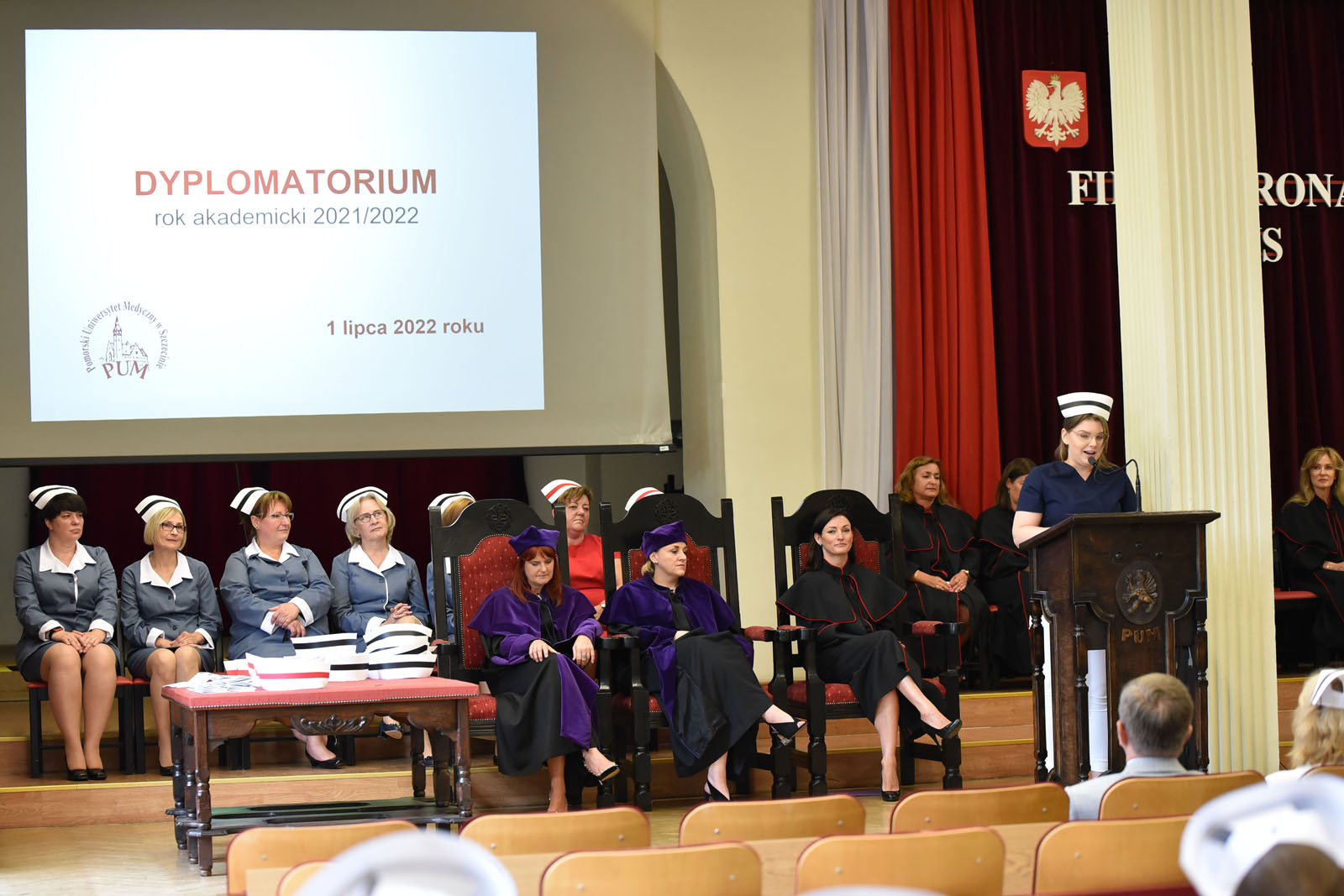 1 lipca 2022 r. w auli Rektoratu PUM w Szczecinie odbyła się uroczystość dyplomatorium absolwentów kierunków Pielęgniarstwo i Położnictwo Wydziału Nauk o Zdrowiu PUM w Szczecinie.