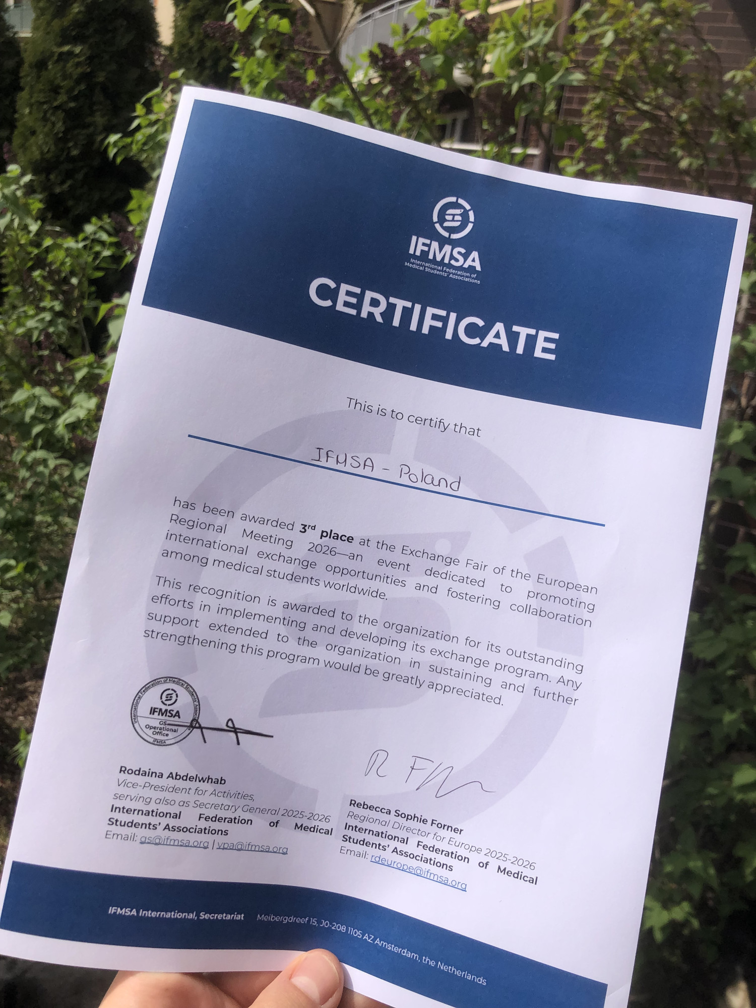 To prestiżowe wyróżnienie potwierdza wysoki poziom i zaangażowanie w rozwój wymian studenckich – zarówno na Pomorskim Uniwersytecie Medycznym, jak i na innych uczelniach medycznych w Polsce.Gratulujemy i dziękujemy za reprezentowanie Polski na arenie międzynarodowej.