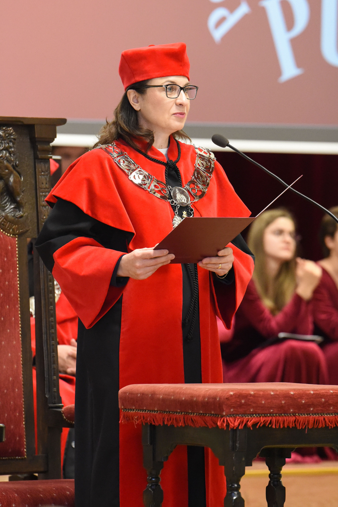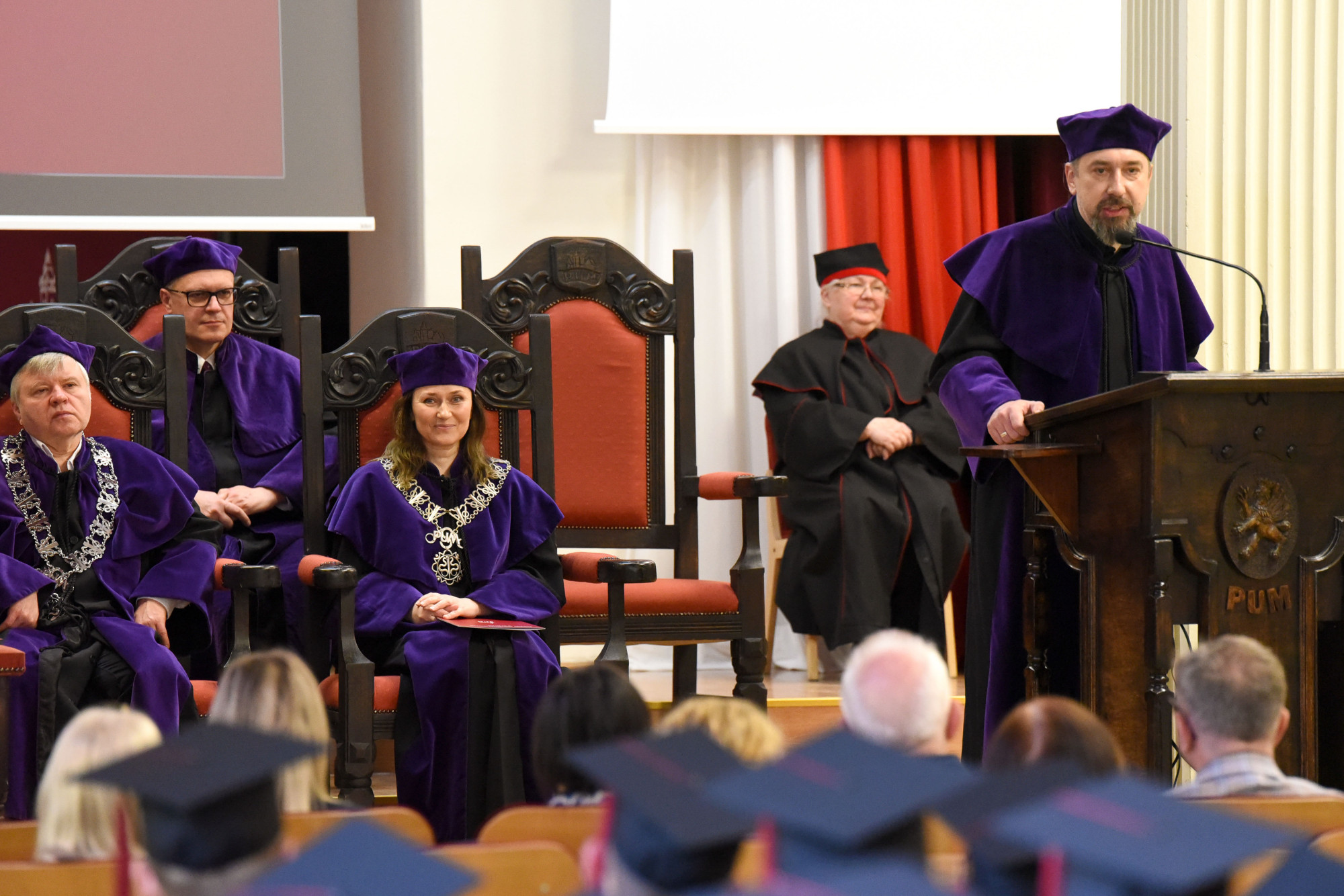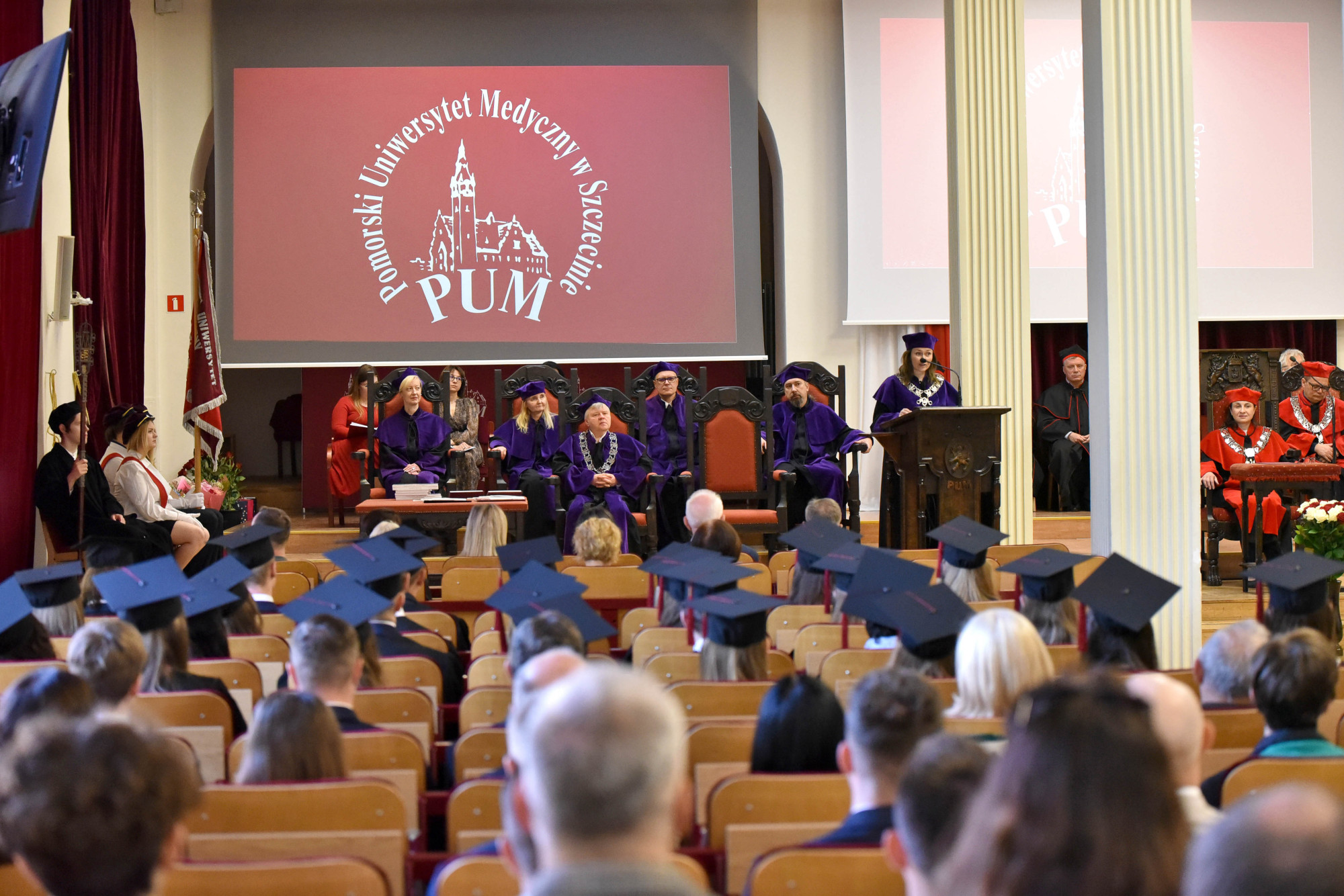 Gospodarzem wydarzenia była Dziekan Wydziału, prof. dr hab. n. zdr. Izabela Gutowska, która powitała władze uczelni, przybyłych gości, absolwentów wraz z bliskimi oraz kadrę dydaktyczną PUM. Magnificencję Rektora Pomorskiego Uniwersytetu Medycznego w Szczecinie, prof. dr hab. n. med. Leszka Domańskiego, reprezentowała Prorektor ds. Dydaktyki, prof. dr hab. n. med. Violetta Dziedziejko, która zabrała głos w jego imieniu.