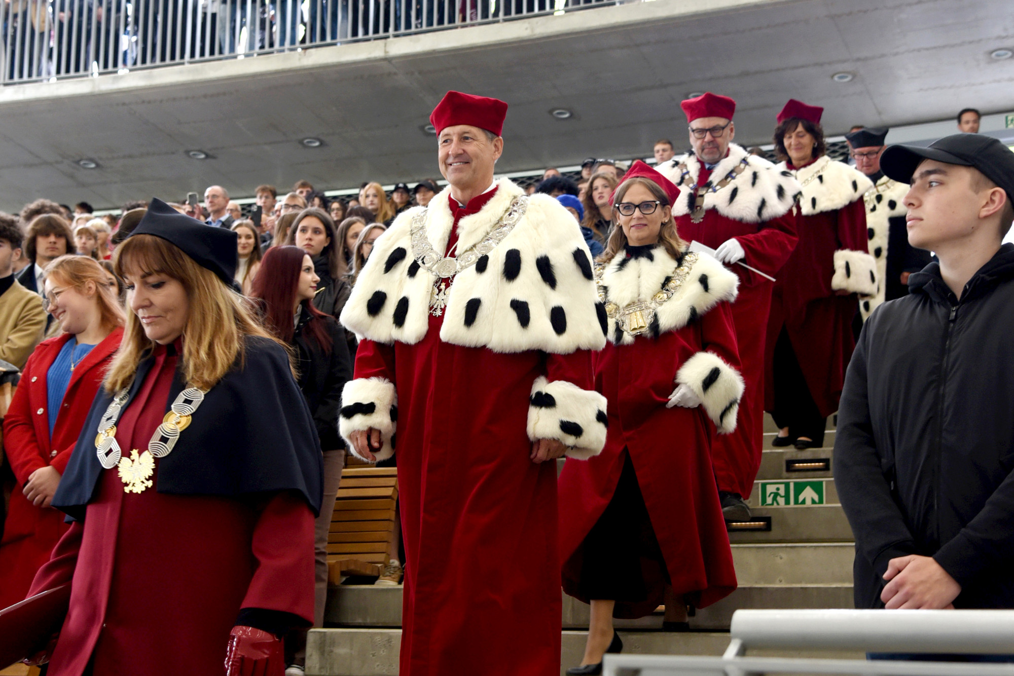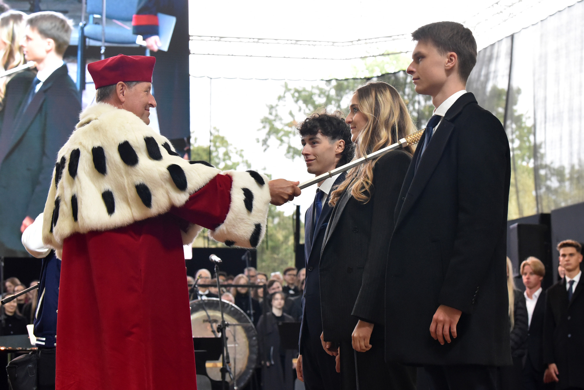 Prof. Terman w sposób szczególny zwrócił się do studentów rozpoczynających naukę, podkreślając, że to właśnie dla nich była to chwila wyjątkowa: