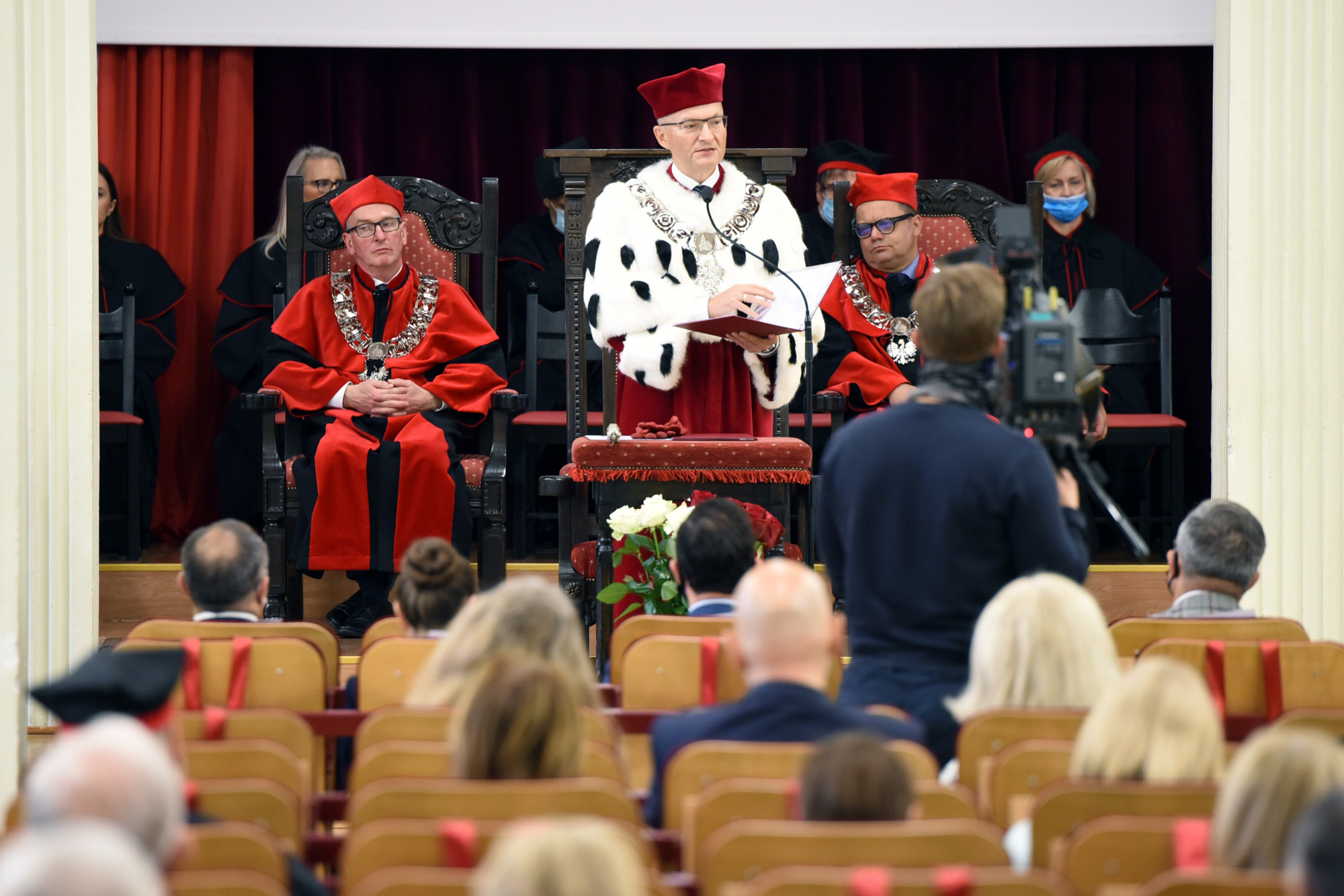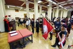 W Auli Rektoratu znajdowały się reprezentacje w ograniczonym składzie, z racji przestrzegania przez PUM zasad bezpieczeństwa epidemicznego. Zainteresowani obejrzeniem Inauguracji mogli jednak nam towarzyszyć dzięki transmisji prowadzonej w kanale YouTube/pomorskiuniwersytetmedyczny, gdzie można również teraz odtworzyć zapis wydarzenia.
