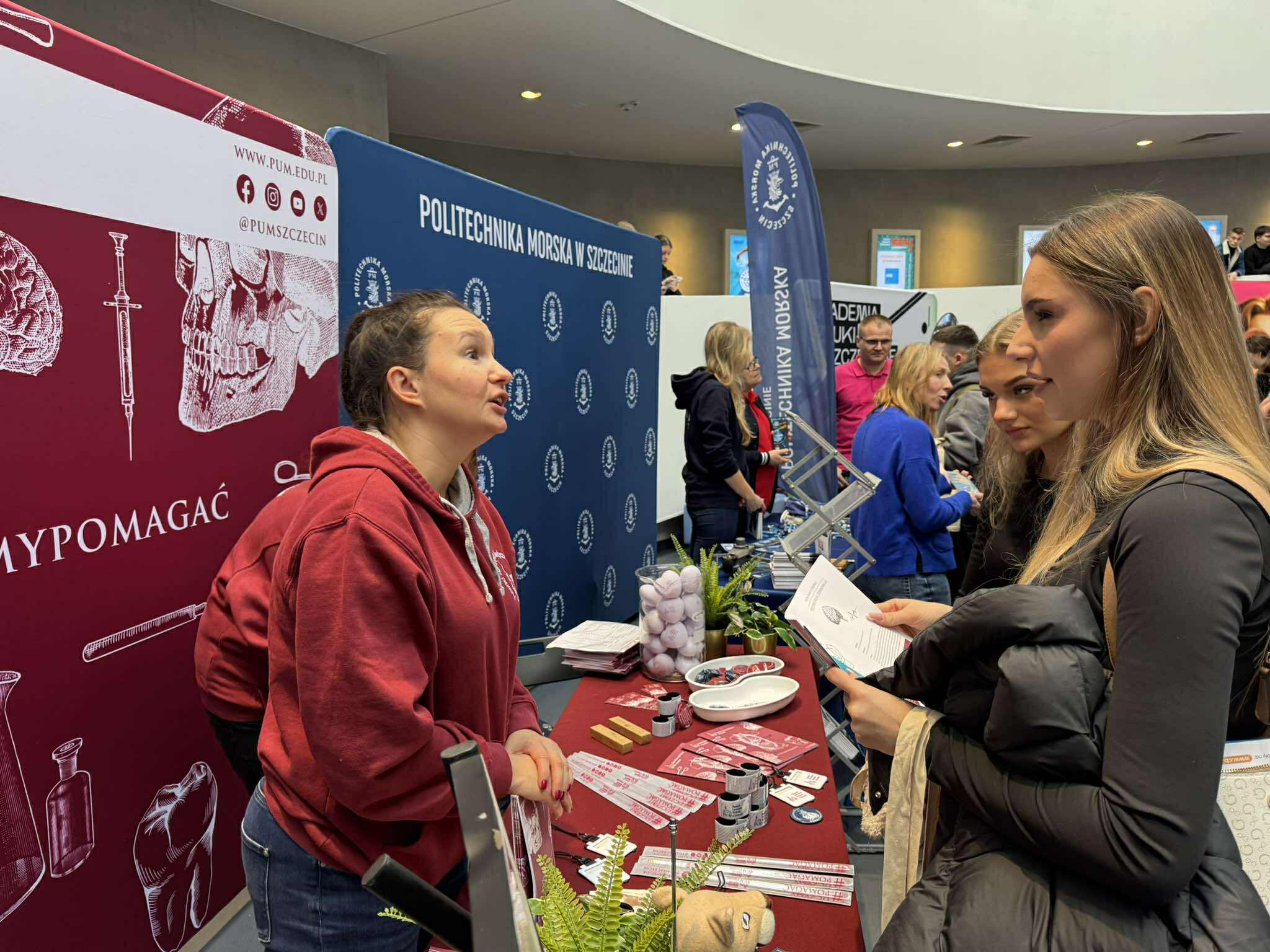 Trwają EDU INSPIRACJE – Targi dla Maturzystów w Edukatorium Fabryki Wody, a Pomorski Uniwersytet Medyczny w Szczecinie jest na miejscu i czeka na odwiedzających! Na naszym stoisku możesz porozmawiać z przedstawicielami uczelni oraz z naszymi studentami, którzy opowiadają o studiach, praktykach, życiu akademickim i swojej drodze na PUM.