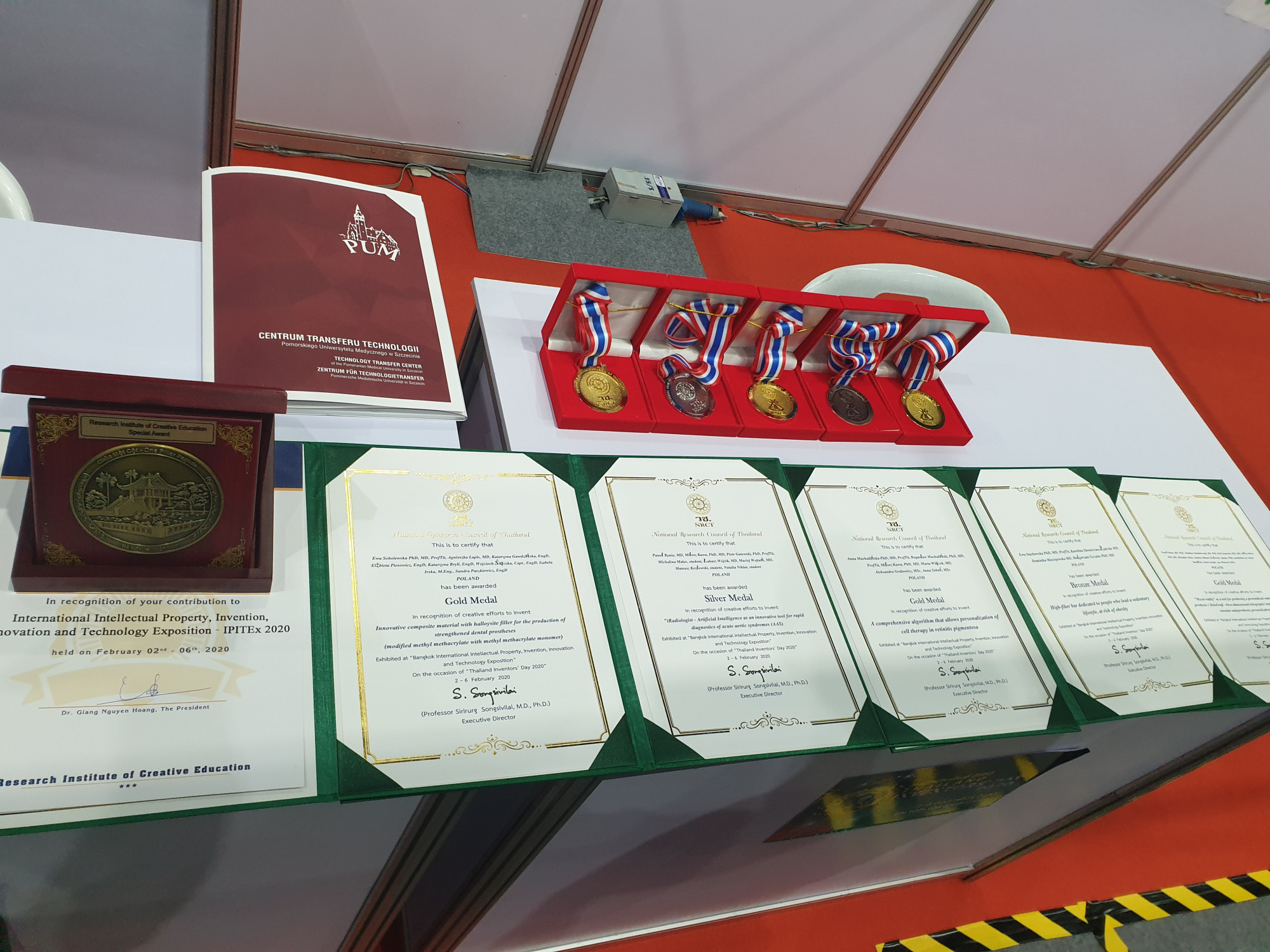 Podczas tegorocznej MIĘDZYNARODOWEJ WYSTAWY WŁASNOŚCI INTELEKTUALNEJ, WYNALAZKÓW I INNOWACJI IPITEX 2020, która odbyła się 2-6 lutego br. w Bangkoku, Centrum Transferu Technologii Pomorskiego Uniwersytetu Medycznego zaprezentowało 5 projektów naukowych uczelni.