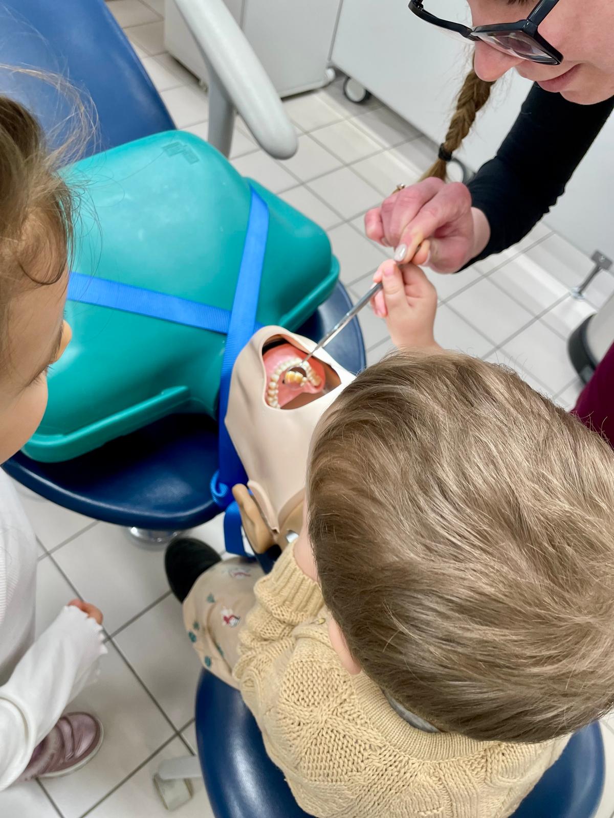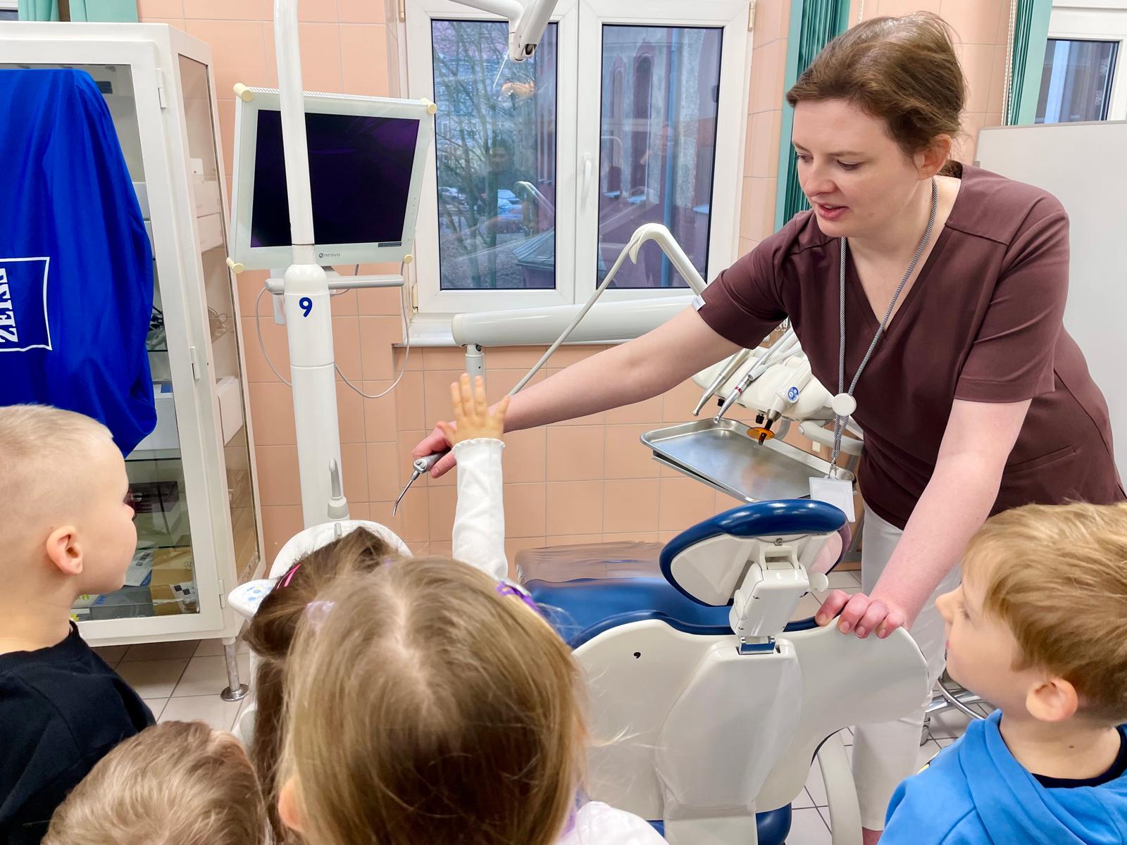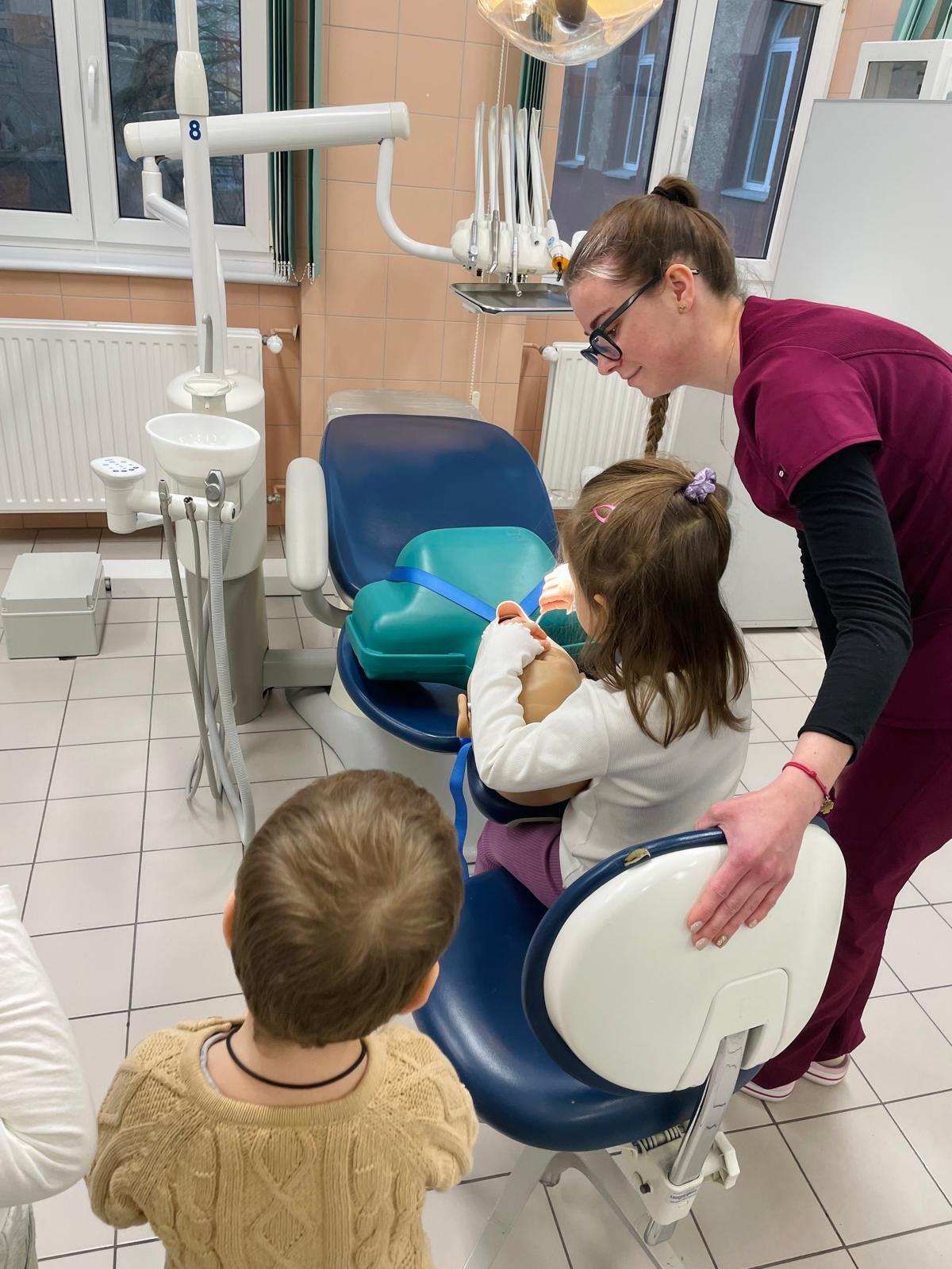 Podczas wizyty przedszkolaki aktywnie uczestniczyły w zajęciach edukacyjnych, w trakcie których uczyły się prawidłowej techniki szczotkowania zębów. Dużym zainteresowaniem cieszyła się możliwość obejrzenia i dotknięcia sprzętu stomatologicznego, a także samodzielnego zbadania „pacjenta” w ramach wspólnej zabawy edukacyjnej.