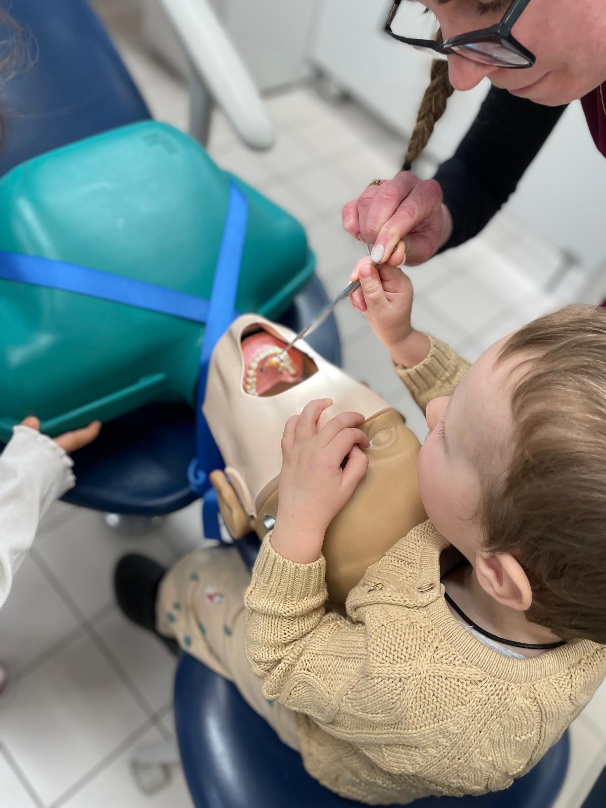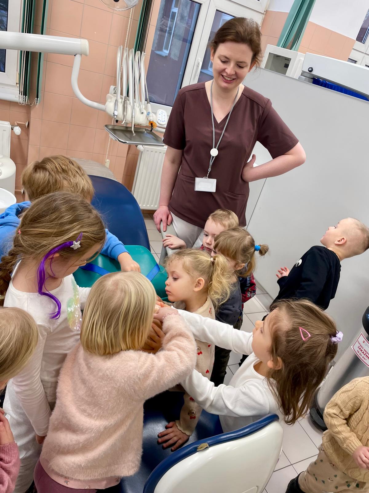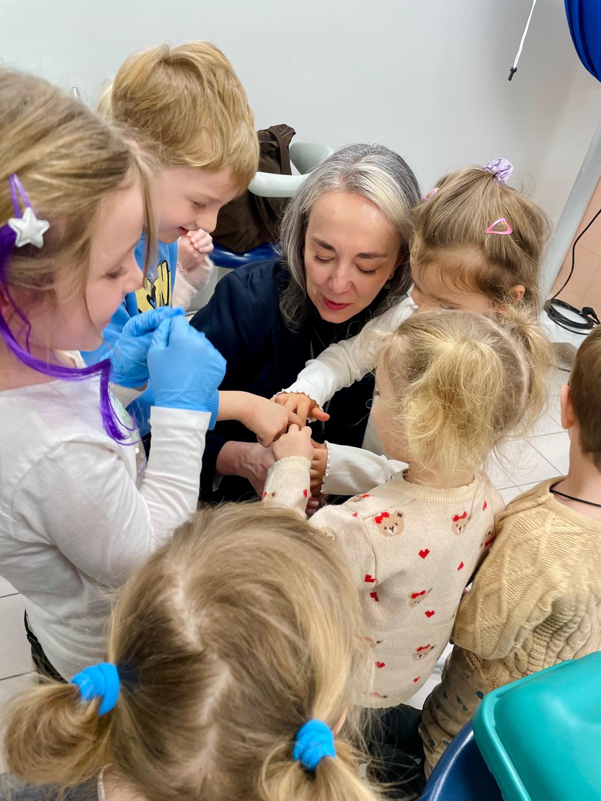 Podczas wizyty przedszkolaki aktywnie uczestniczyły w zajęciach edukacyjnych, w trakcie których uczyły się prawidłowej techniki szczotkowania zębów. Dużym zainteresowaniem cieszyła się możliwość obejrzenia i dotknięcia sprzętu stomatologicznego, a także samodzielnego zbadania „pacjenta” w ramach wspólnej zabawy edukacyjnej.