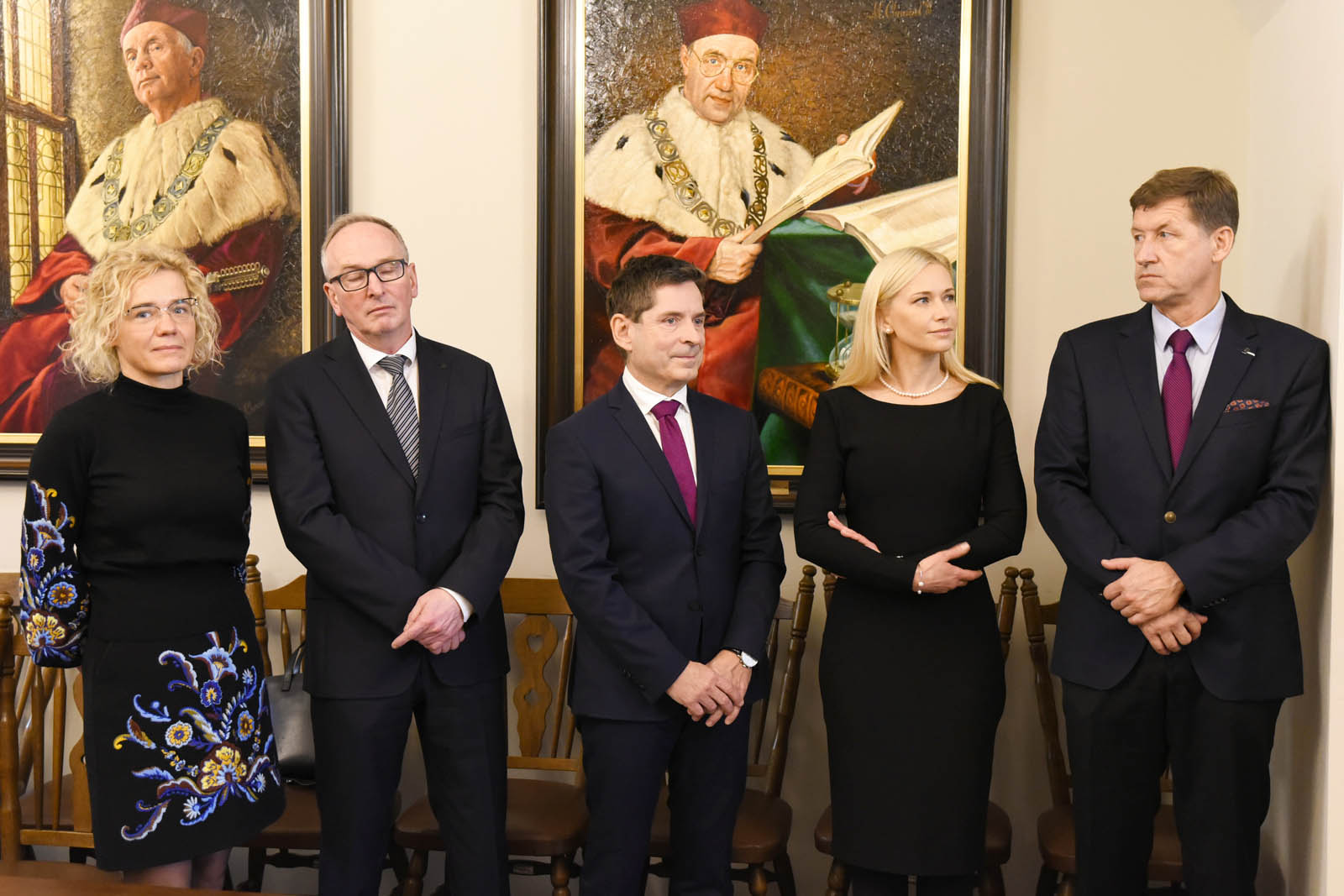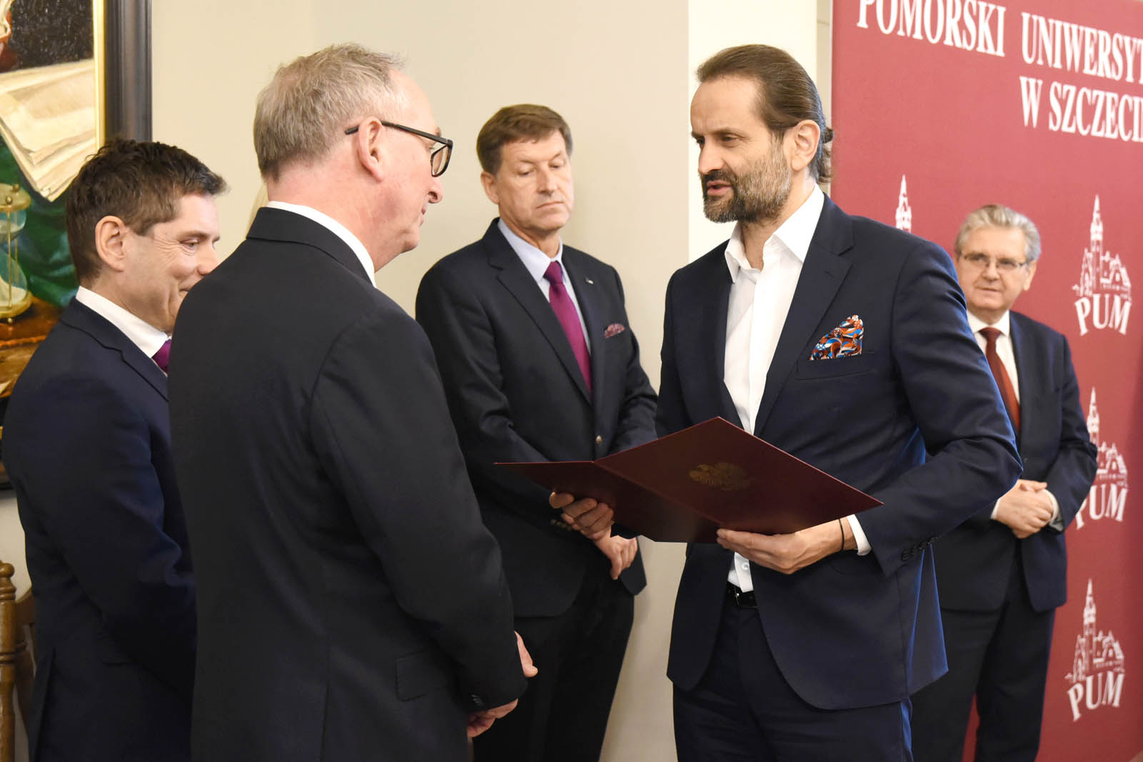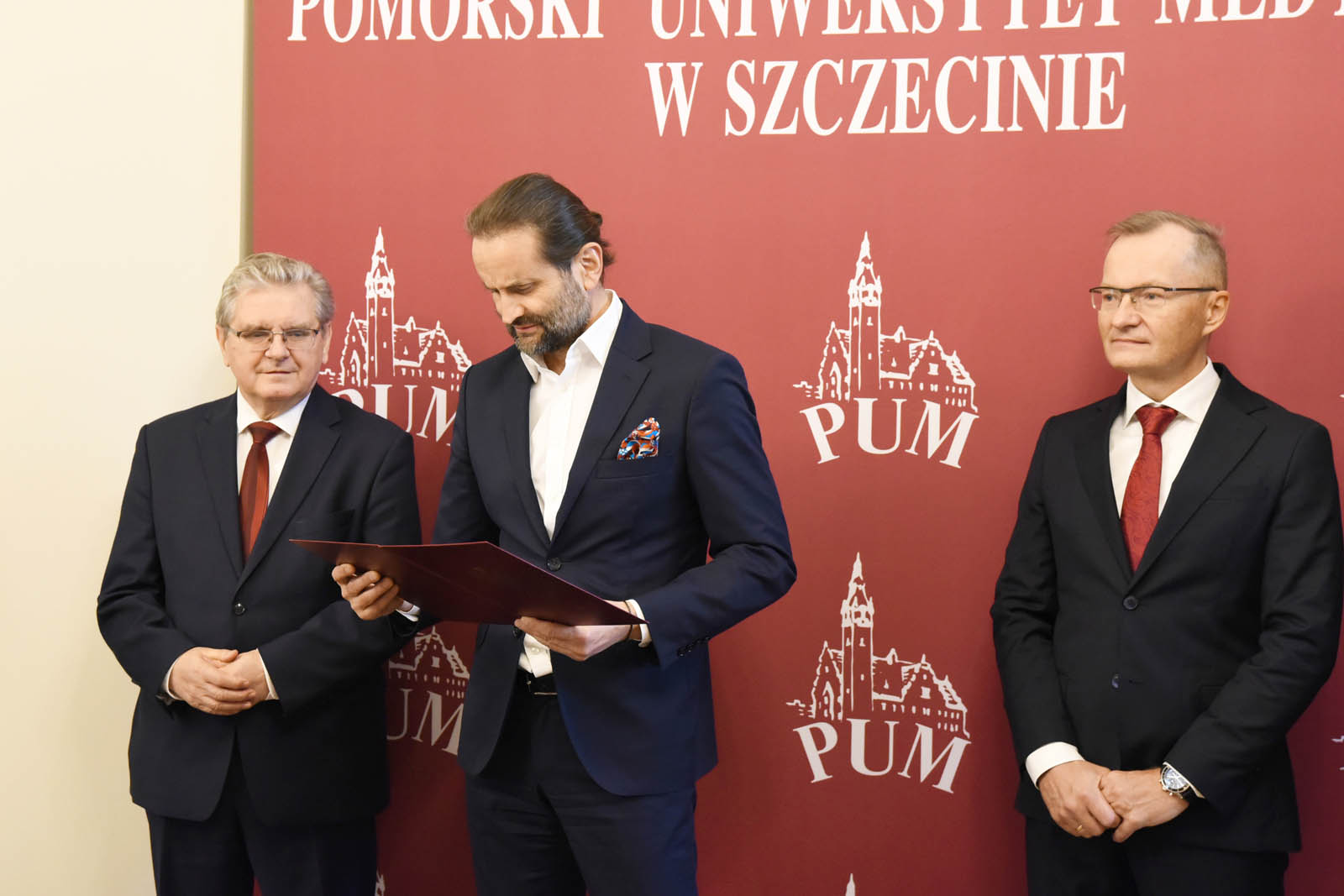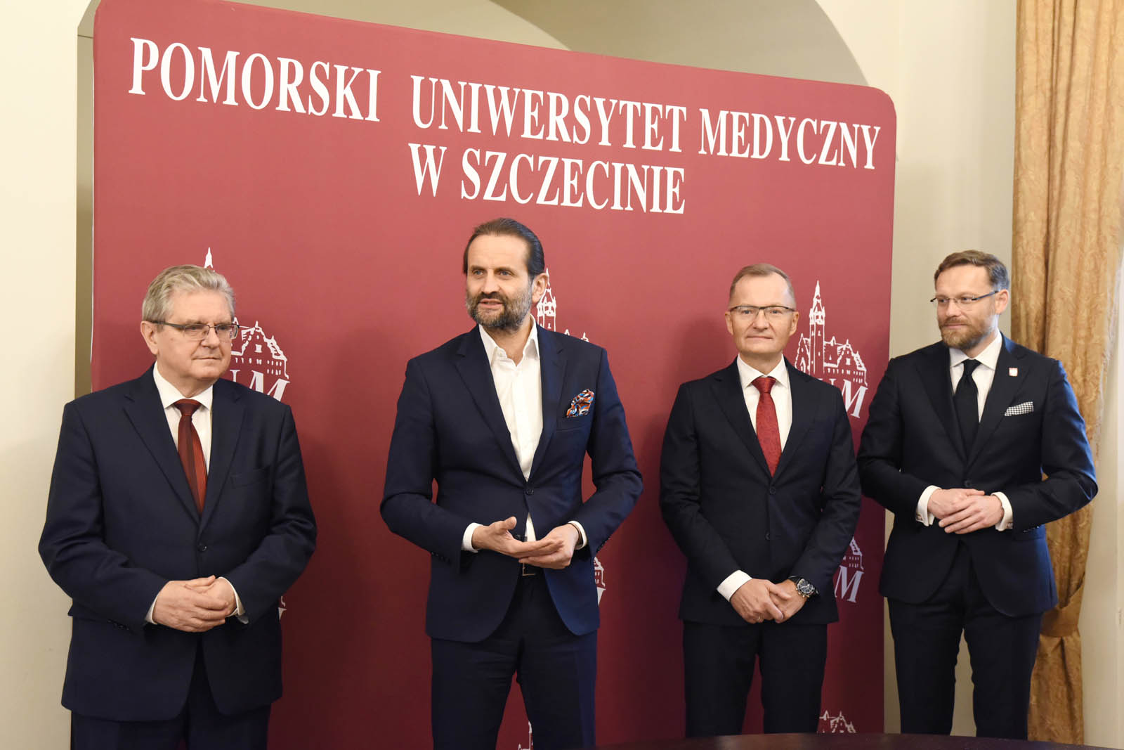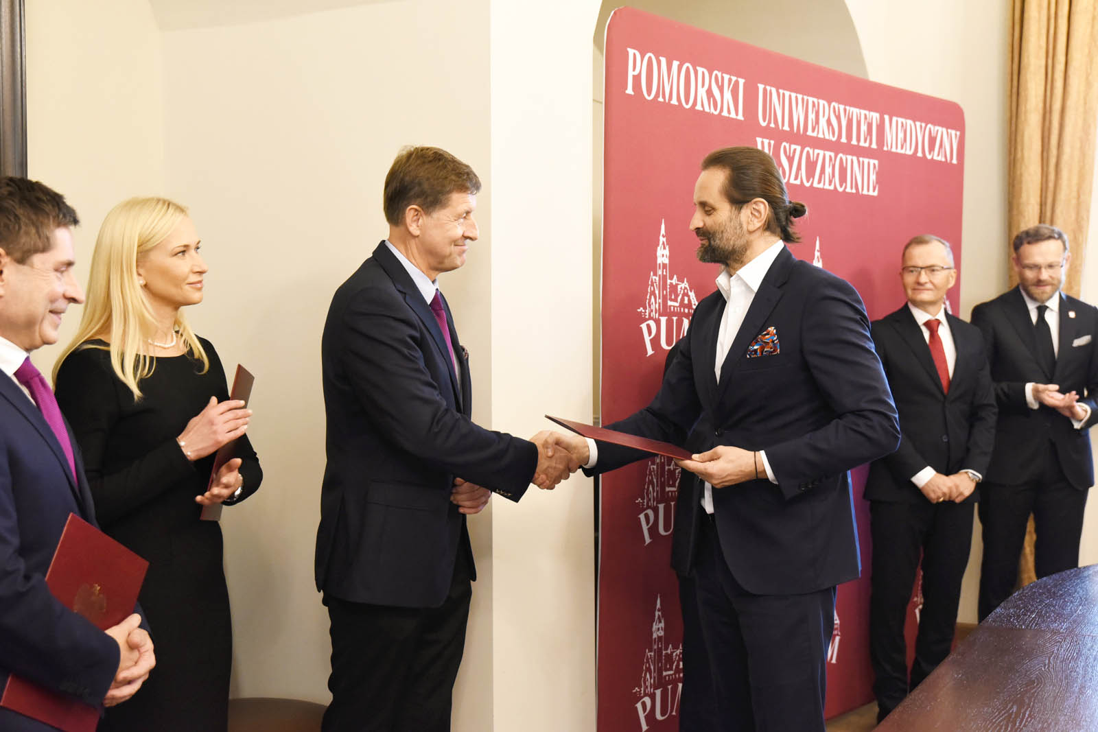 Piotr Bromber Podsekretarz Stanu w Ministerstwie Zdrowia wyraził uznanie dla osiągnięć i podziękował wybitnym Profesorom PUM za osiągnięcia na polu naukowym oraz cennego wpływu na podnoszenie standardów nauczania w naszym kraju.