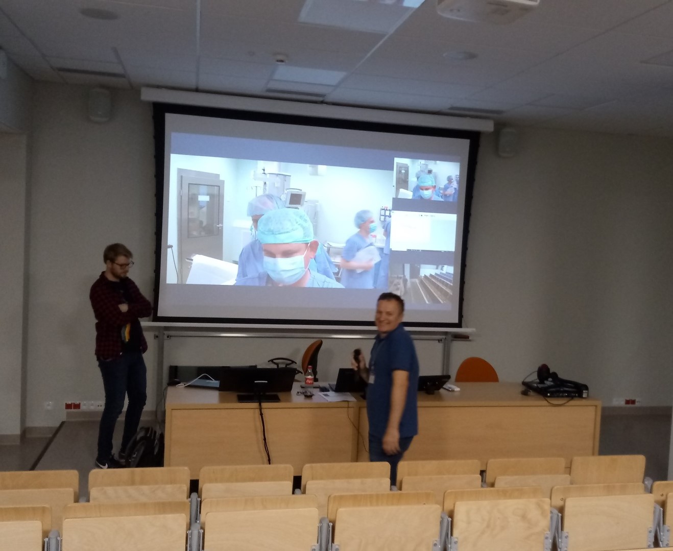 Przeprowadzono udane próby transmisji obrazu oraz dźwięku z wybranych sal operacyjnych zlokalizowanych na terenie SPSK 1, do sali dydaktycznej umiejscowionej na terenie Centrum Symulacji Medycznej. Na chwilę obecną obraz można transmitować z sali wybranych klinik: ortopedii, ginekologii, chirurgii. Docelowo planuje się objąć połączeniem inne sale w miarę posiadanych możliwości technicznych. Zakupiony system umożliwia streaming zarówno w wersji online, jak również zakłada odtworzenie nagranych zabiegów chirurgicznych w dowolnym czasie.