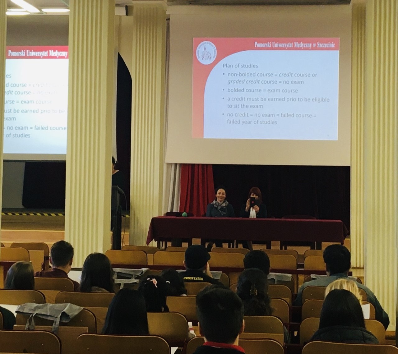 Podczas spotkania powitano młodych ludzi z 20 krajów, a następnie zaprezentowano najważniejsze informacje niezbędne każdemu studentowi pierwszego roku: podział na grupy, harmonogramy, kalendarz roku akademickiego itd. Po krótkim ćwiczeniu integracyjnym przyszedł czas na pierwsze ważne decyzje - wybór starostów grup, a potem na spotkanie ze starszymi kolegami, którzy odpowiadali na bardziej szczegółowe pytanie, na przykład: jak zorganizować sobie życie w Szczecinie. Dzień zakończył interaktywny wykład on-line prowadzony przez dr. Joannę Nieznanowską „Jak studiować medycynę”.