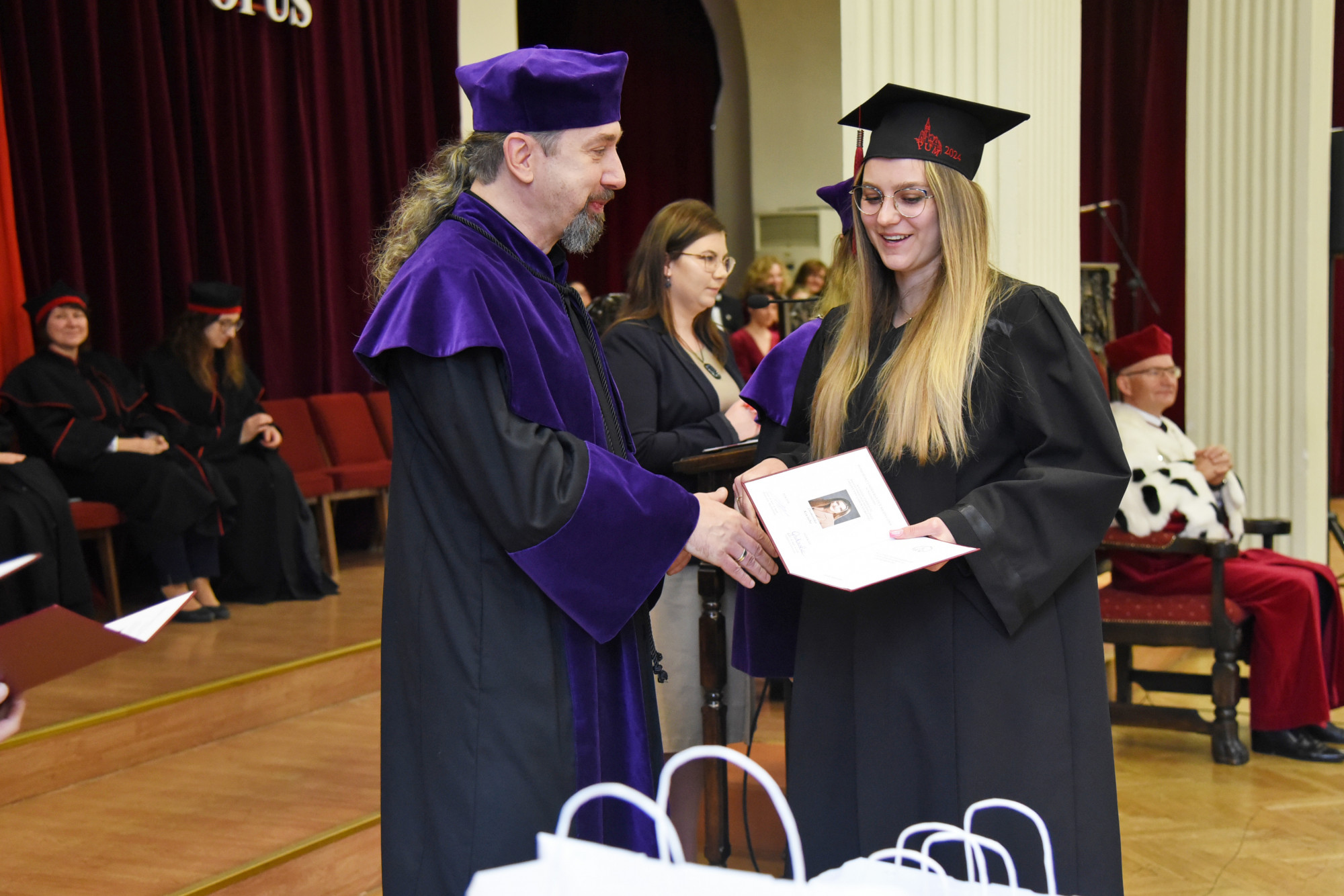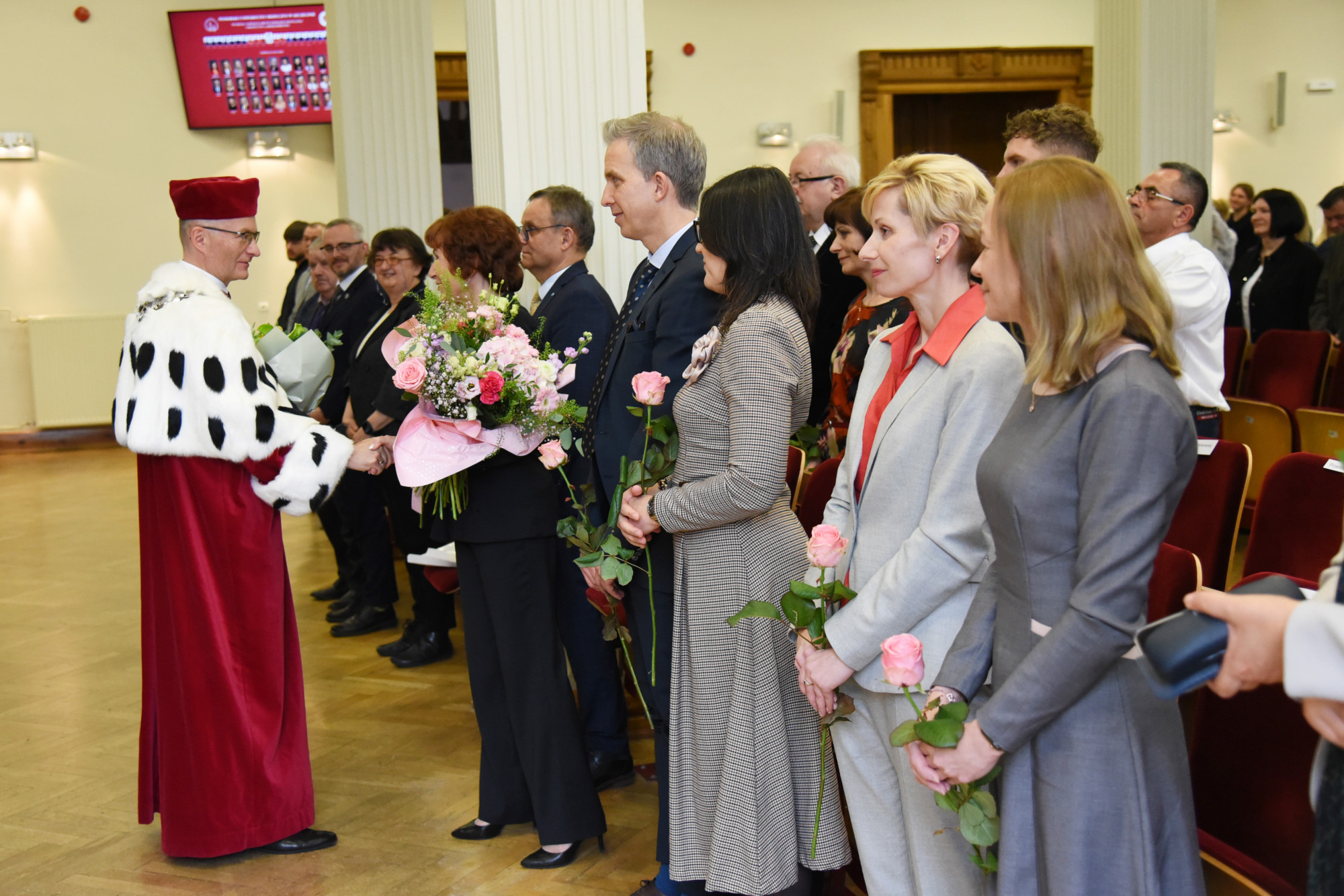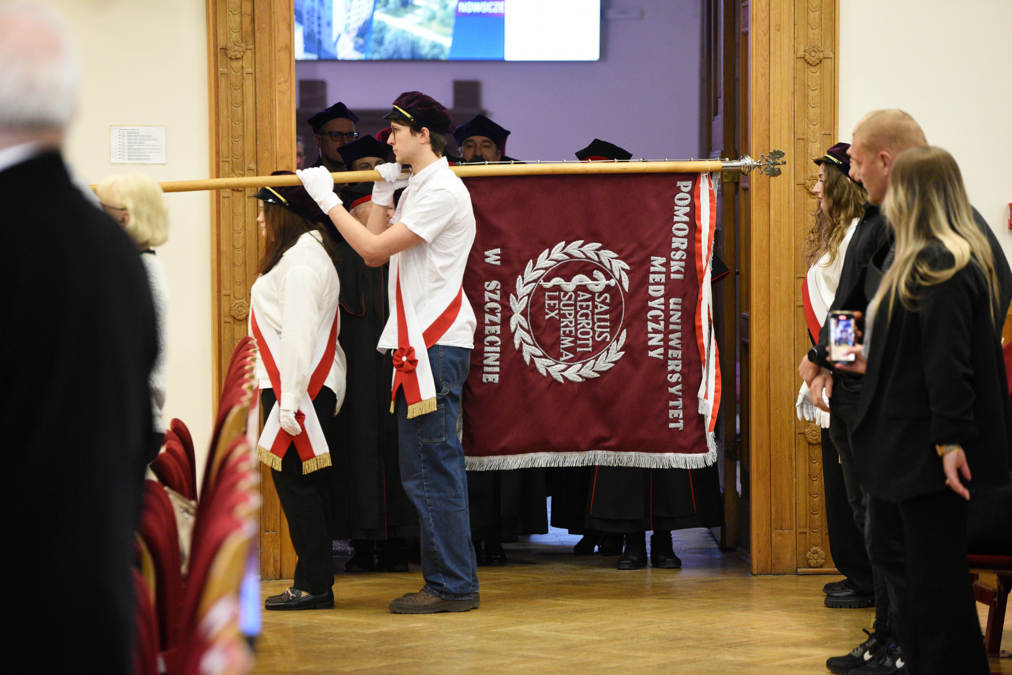 Ceremonię poprowadziła Dziekan Wydziału Farmacji, Biotechnologii Medycznej i Medycyny Laboratoryjnej PUM prof. dr hab. n. zdr. Izabela Gutowska, przywitała Władze Uczelni, przybyłych gości, Absolwentów i ich bliskich oraz kadrę dydaktyczną.