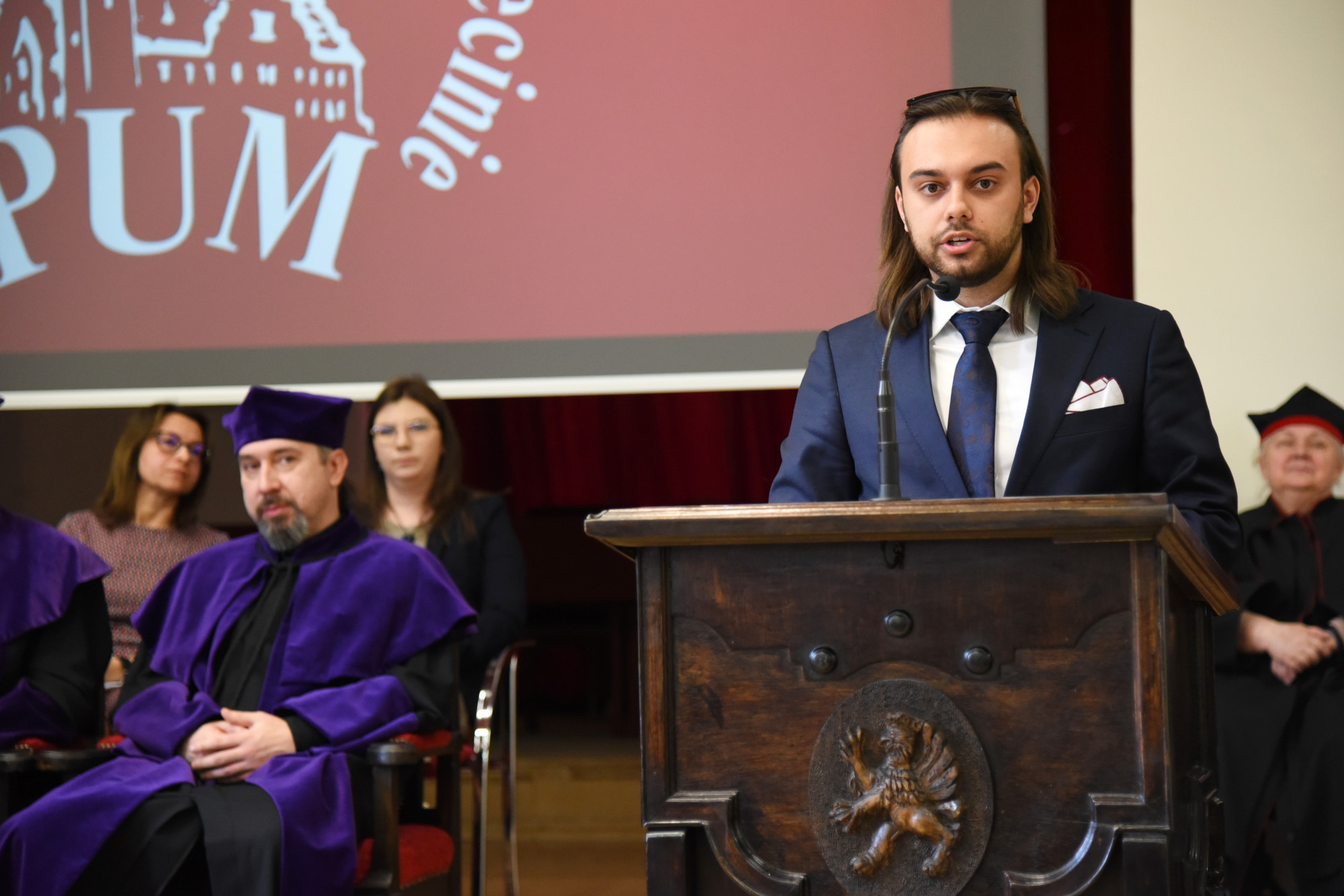 Podczas ceremonii były również przemówienia przedstawicieli społeczności akademickiej - p. Artura Czajkowskiego, przedstawiciela Parlamentu Studentów,