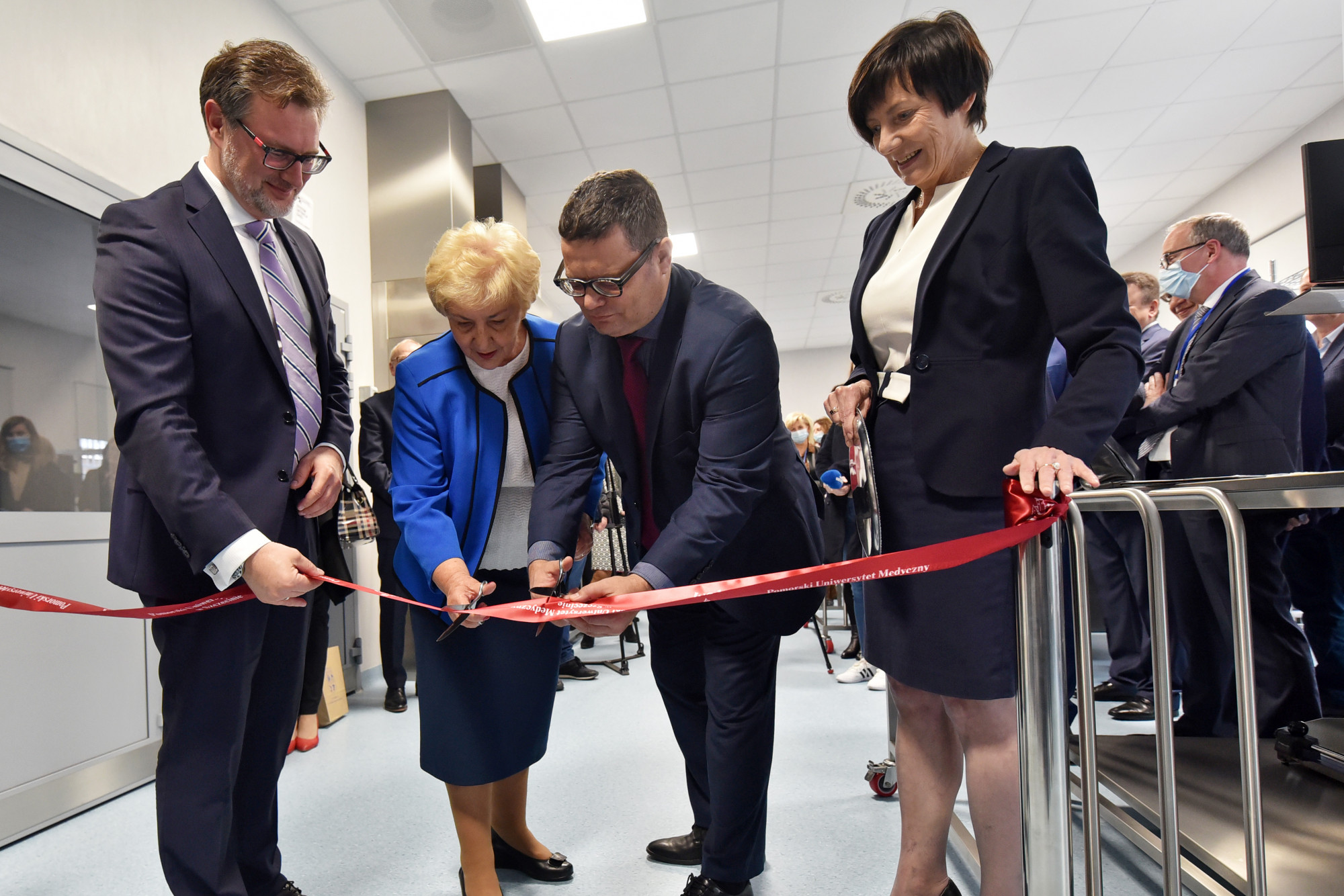 Gospodarzami uroczystości byli prorektorzy PUM prof. Jerzy Samochowiec i prof. Jarosław Peregud-Pogorzelski oraz dyrektor szpitala dr Konrad Jarosz. Wstęgę symbolizującą uruchomienie pracy steryzlizatorni przecięła z prorektorem Samochowcem i dyrektorem Jaroszem przewodnicząca Sejmiku Zachodniopomorskiego pani Maria Ilnicka-Mądry, jeden z honorowych gości biorących udział w uroczystości.