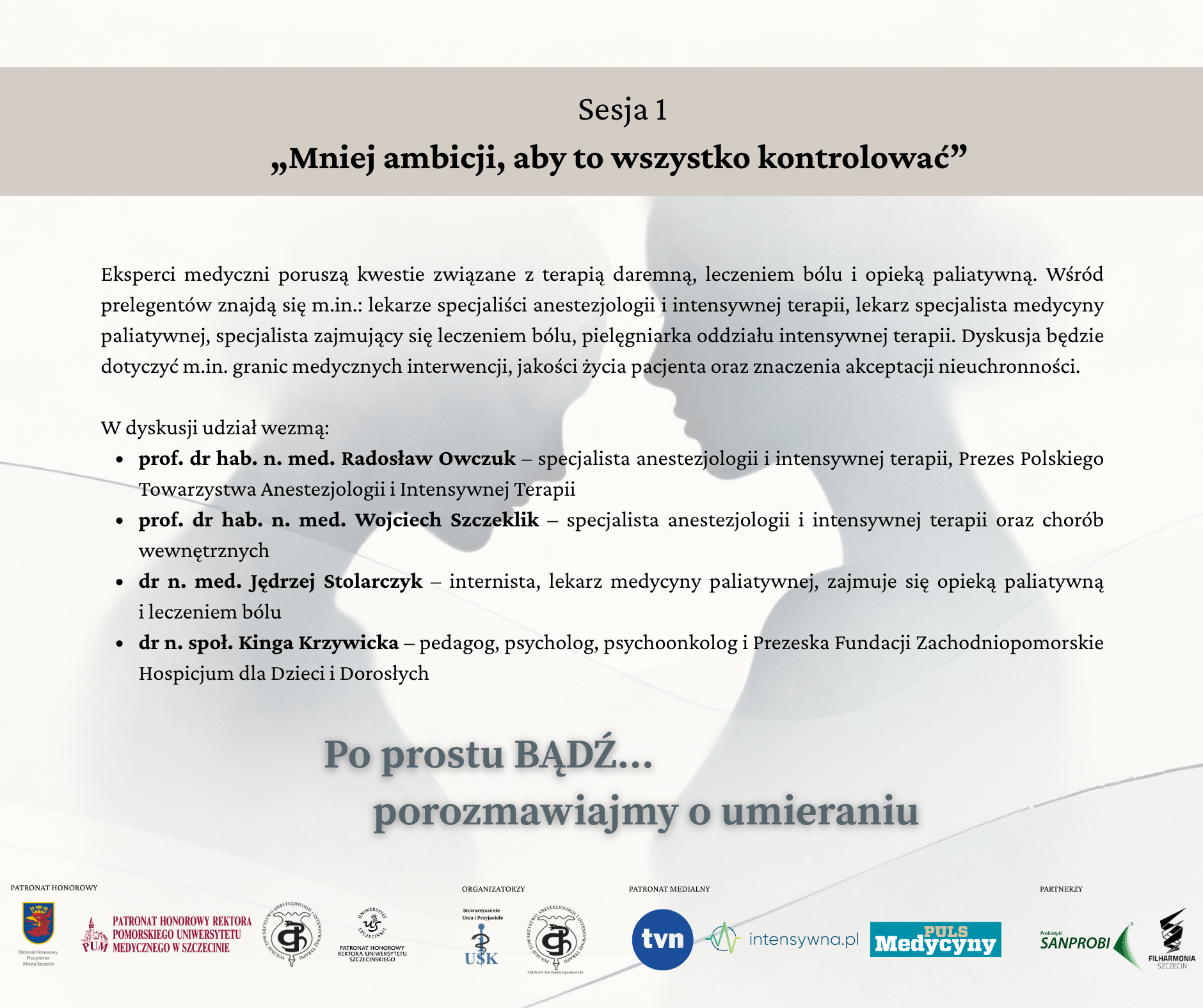 Wydarzenie stworzy przestrzeń do otwartej rozmowy o życiu, śmierci i towarzyszeniu osobom u kresu życia. Spotkanie połączy wiedzę medyczną, refleksję etyczną i religijną oraz osobiste doświadczenia prelegentów i uczestników.