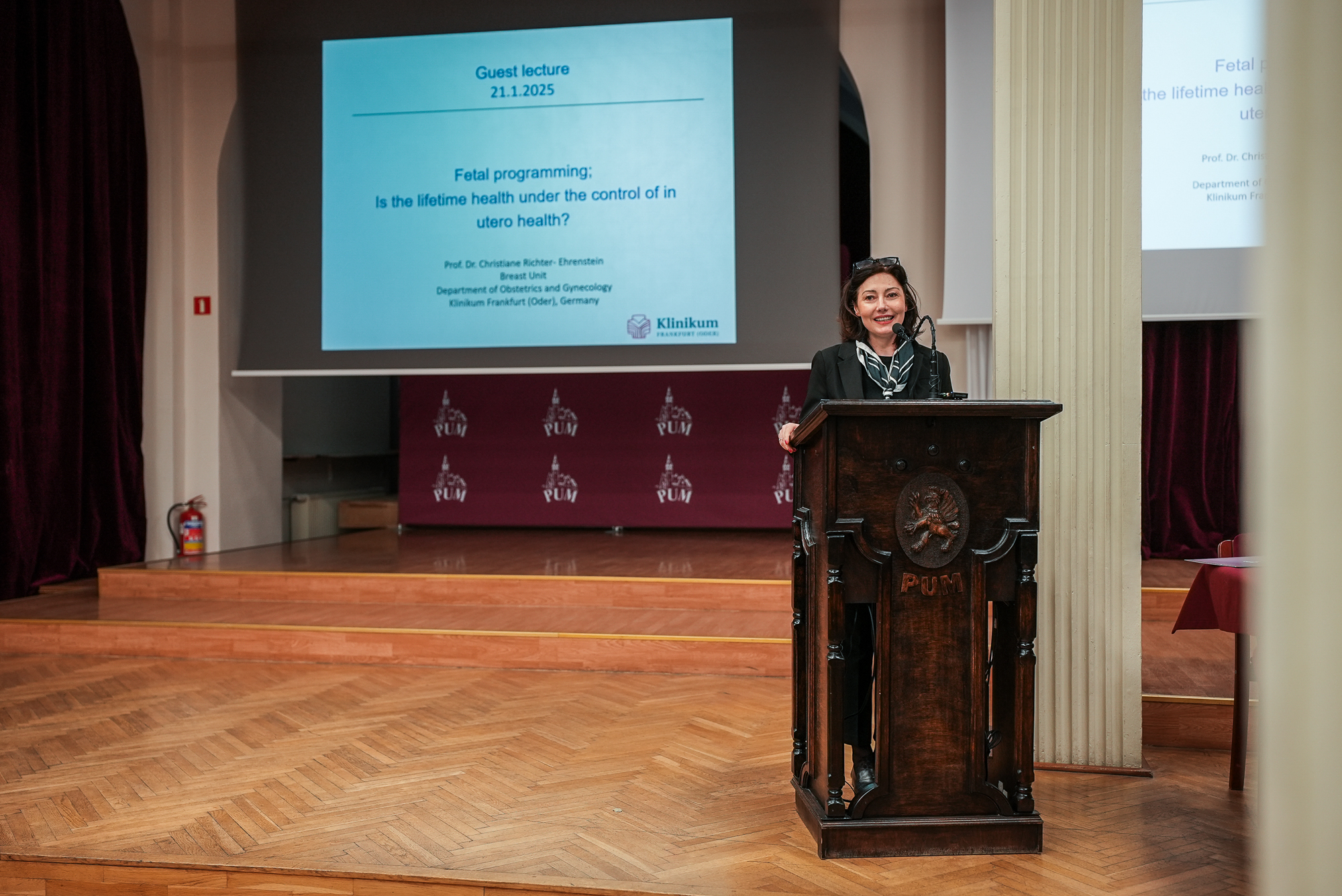 Wykład poprowadziła wybitna specjalistka, Profesor Christiane Richter-Ehrenstein z Kliniki Ginekologii i Położnictwa Klinikum Frankfurt/Oder. Profesor Richter-Ehrenstein poruszyła niezwykle interesujący temat „Programowanie płodu – Czy nasze zdrowie jest pod kontrolą w życiu prenatalnym?”. W trakcie wykładu omówiła wpływ środowiska prenatalnego na rozwój człowieka oraz możliwe konsekwencje tego okresu dla zdrowia w dorosłym życiu.