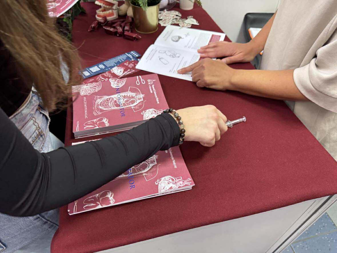 Nasze bordowe stoisko cieszyło się ogromnym zainteresowaniem – odwiedziły je setki maturzystów, którzy chętnie pytali o kierunki dostępne w ofercie PUM, zasady rekrutacji oraz życie studenckie.