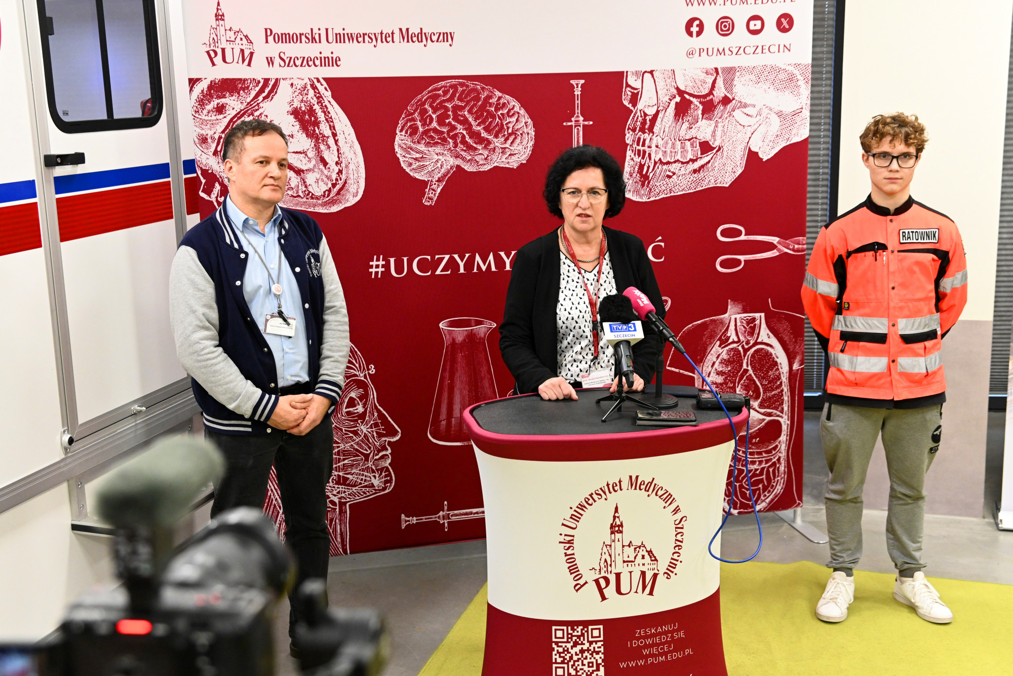 6 grudnia 2024 roku odbyła się konferencja prasowa, podczas której prof. Beata Karakiewicz, dziekan Wydziału Nauk o Zdrowiu PUM zaprezentowała szczegóły nowego kierunku studiów. W wydarzeniu uczestniczyli przedstawiciele mediów, którzy mieli okazję poznać cele i założenia programu, a także zadać pytania dotyczące procesu rekrutacyjnego oraz przyszłości edukacji w zakresie ratownictwa medycznego.