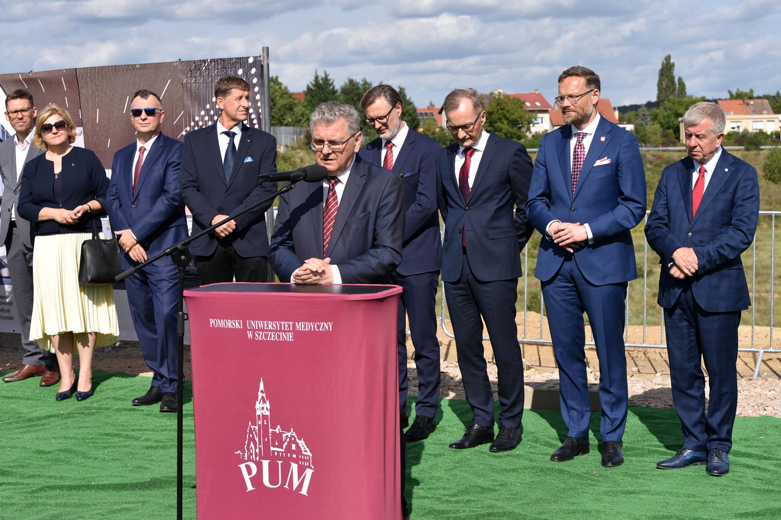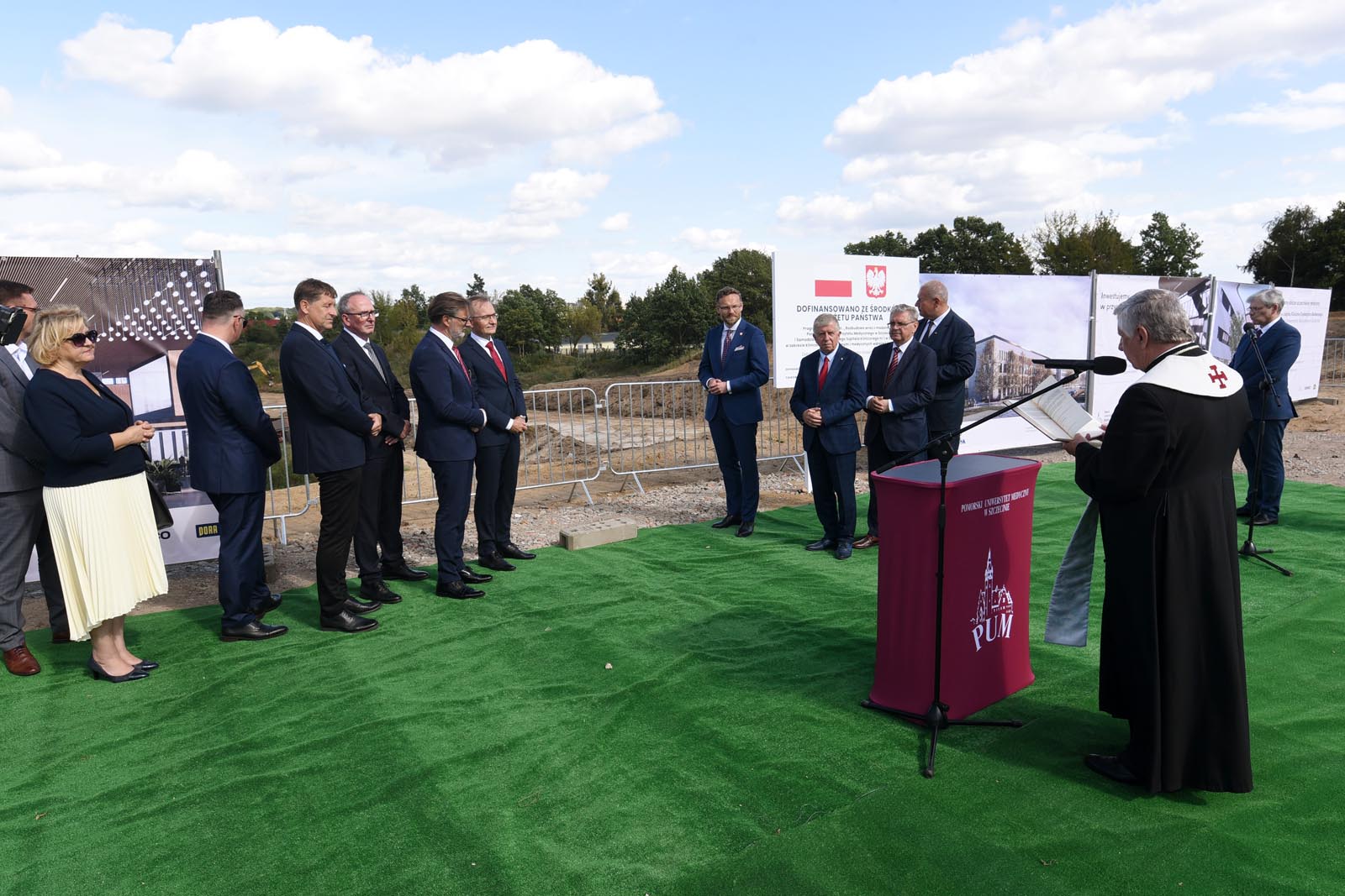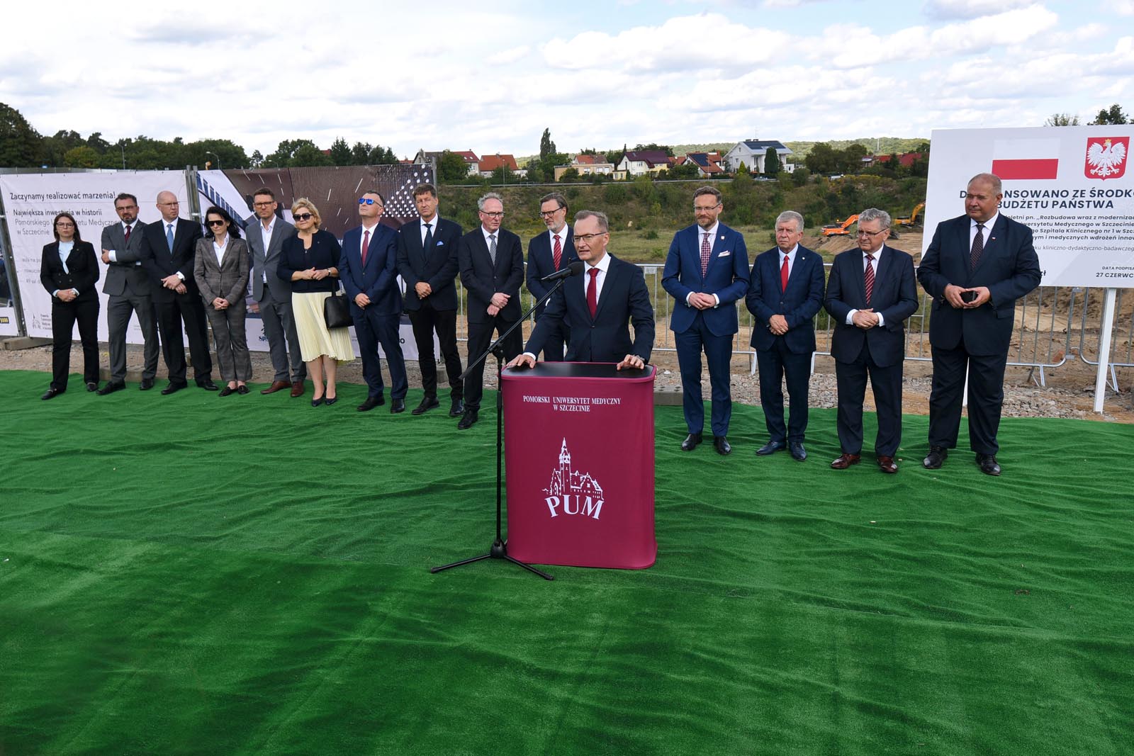 W uroczystości symbolicznego przekazania placu budowy uczestniczyli Inwestor – władze uczelni i klinicznego szpitala, reprezentowane przez rektora PUM prof. Bogusława Machalińskiego i dyrektora SPSK-1 PUM dr Konrada Jarosza oraz Generalny Wykonawca – konsorcjum KB DORACO (lider) i PORR (partner). W rozpoczęciu tego przełomowego dla PUM przedsięwzięcia uczestniczyli Wojewoda Zachodniopomorski Zbigniew Bogucki. Towarzyszyli mu także Posłowie na Sejm RP na czele z Wiceprzewodniczącym Komisji Zdrowia Czesławem Hocem. Nie zabrakło przedstawicieli Gminy Miasto Szczecin, którą reprezentowali Przewodnicząca Rady Miasta Szczecin Renata Łażewska, Wiceprezydent Szczecina Michał Przepiera i sekretarz miasta Ryszard Słoka.