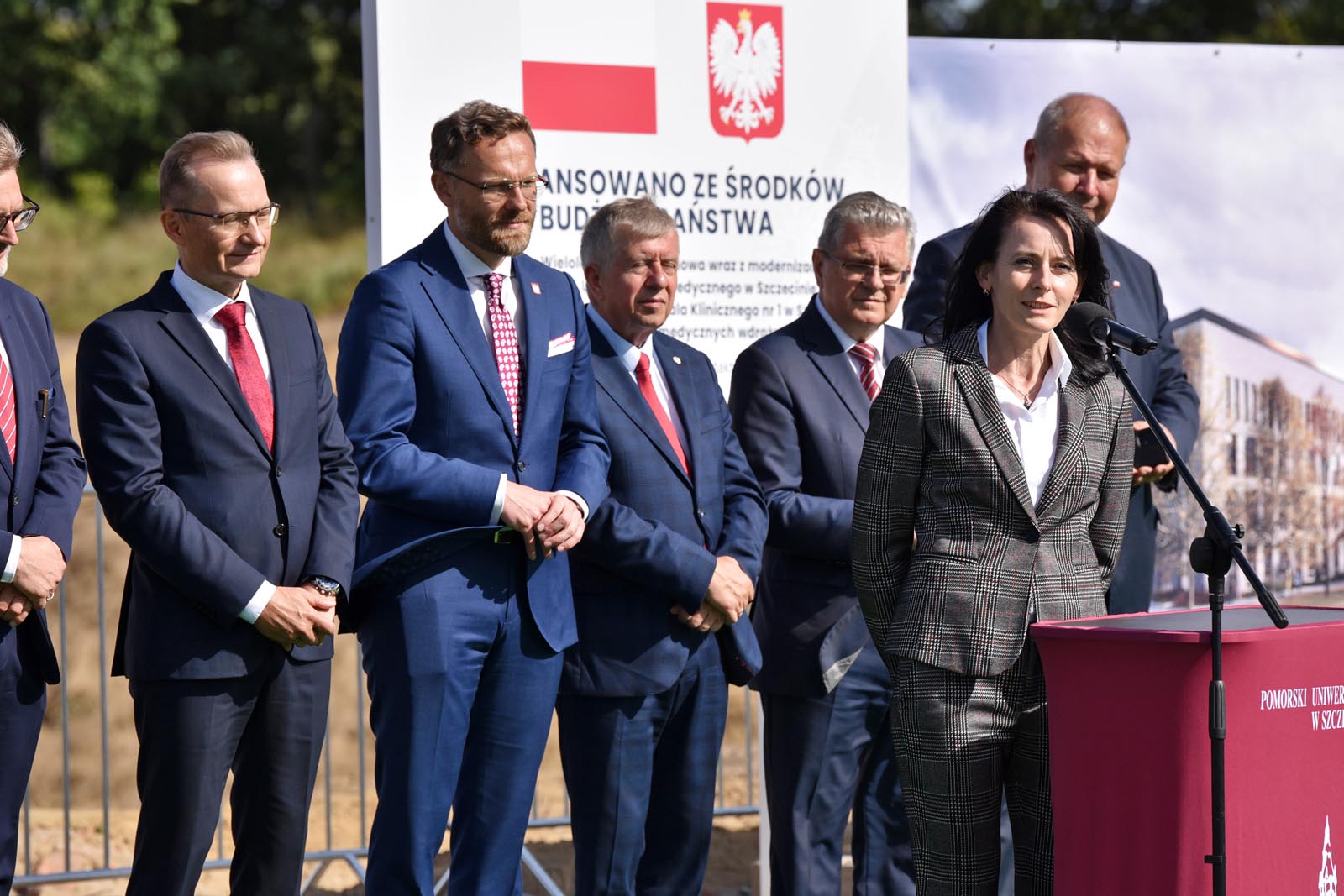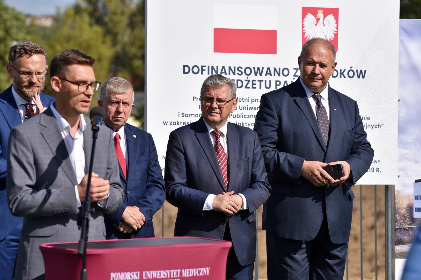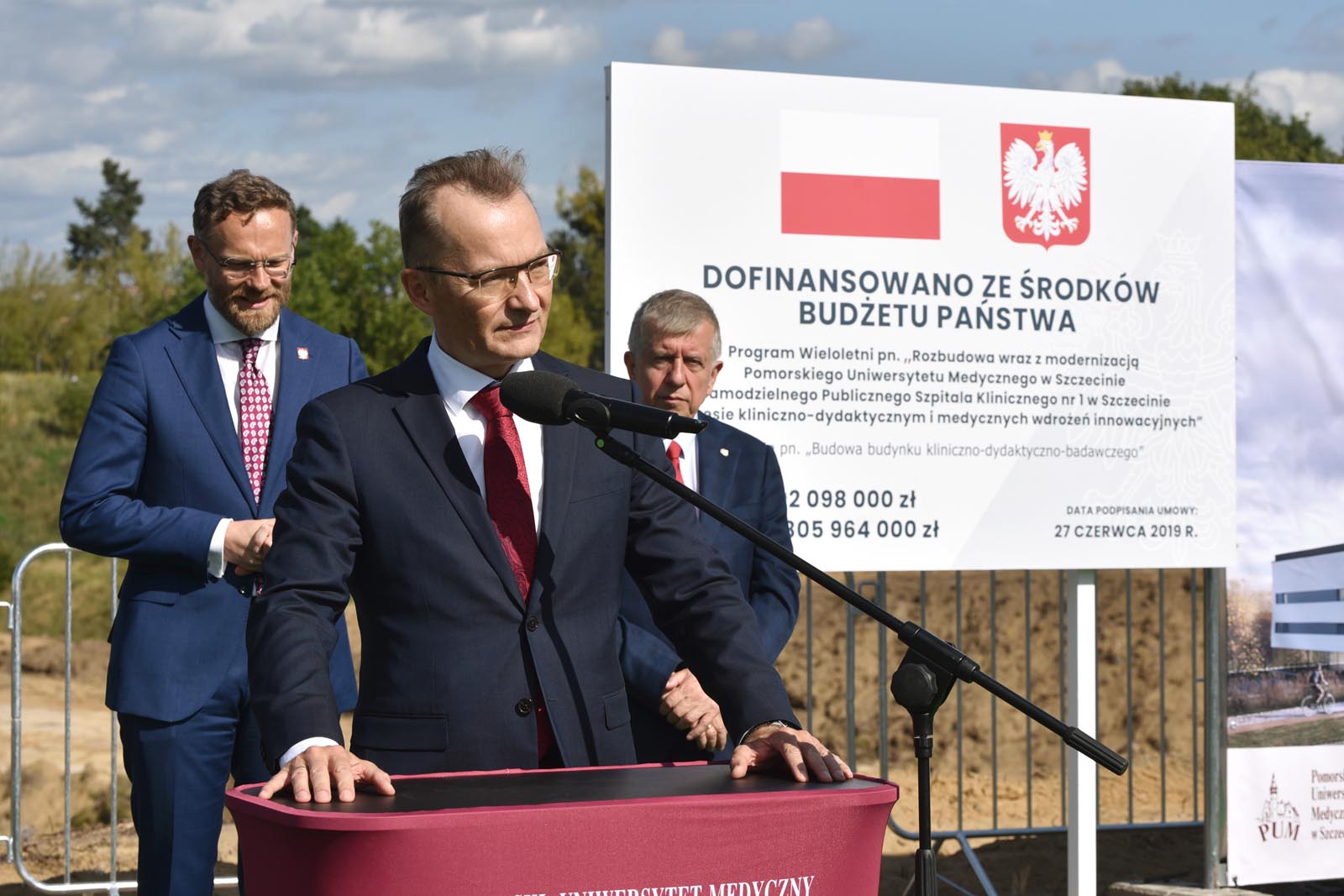 W uroczystości symbolicznego przekazania placu budowy uczestniczyli Inwestor – władze uczelni i klinicznego szpitala, reprezentowane przez rektora PUM prof. Bogusława Machalińskiego i dyrektora SPSK-1 PUM dr Konrada Jarosza oraz Generalny Wykonawca – konsorcjum KB DORACO (lider) i PORR (partner). W rozpoczęciu tego przełomowego dla PUM przedsięwzięcia uczestniczyli Wojewoda Zachodniopomorski Zbigniew Bogucki. Towarzyszyli mu także Posłowie na Sejm RP na czele z Wiceprzewodniczącym Komisji Zdrowia Czesławem Hocem. Nie zabrakło przedstawicieli Gminy Miasto Szczecin, którą reprezentowali Przewodnicząca Rady Miasta Szczecin Renata Łażewska, Wiceprezydent Szczecina Michał Przepiera i sekretarz miasta Ryszard Słoka.