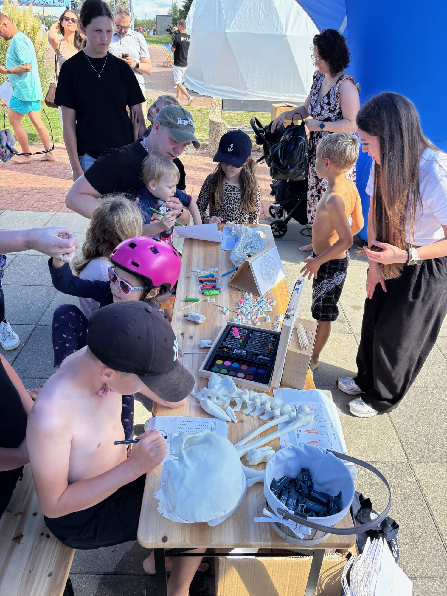 Specjalnie przygotowane stoisko naukowe cieszyło się ogromnym zainteresowaniem odwiedzających. Uczestnicy mieli okazję nie tylko zobaczyć realistyczne, trójwymiarowe modele anatomiczne, lecz także doświadczyć działania zaawansowanych technologii, takich jak precyzyjny skaner 3D, dzięki któremu mogli zeskanować własną twarz i zobaczyć ją w cyfrowym odwzorowaniu. Dużym powodzeniem cieszyły się również prezentacje ciekawostek z zakresu genetyki sądowej – dziedziny, która dla wielu osób okazała się zupełnie nowym i fascynującym obszarem nauki.